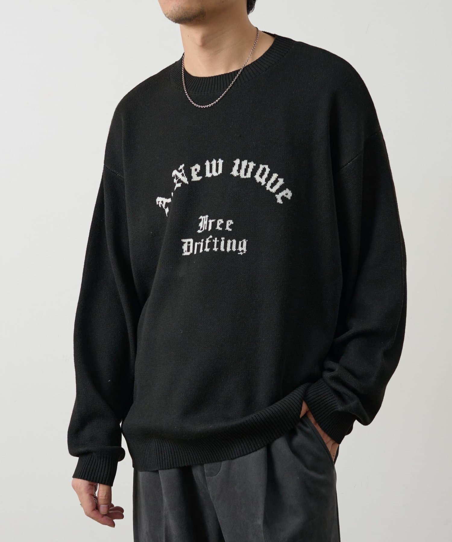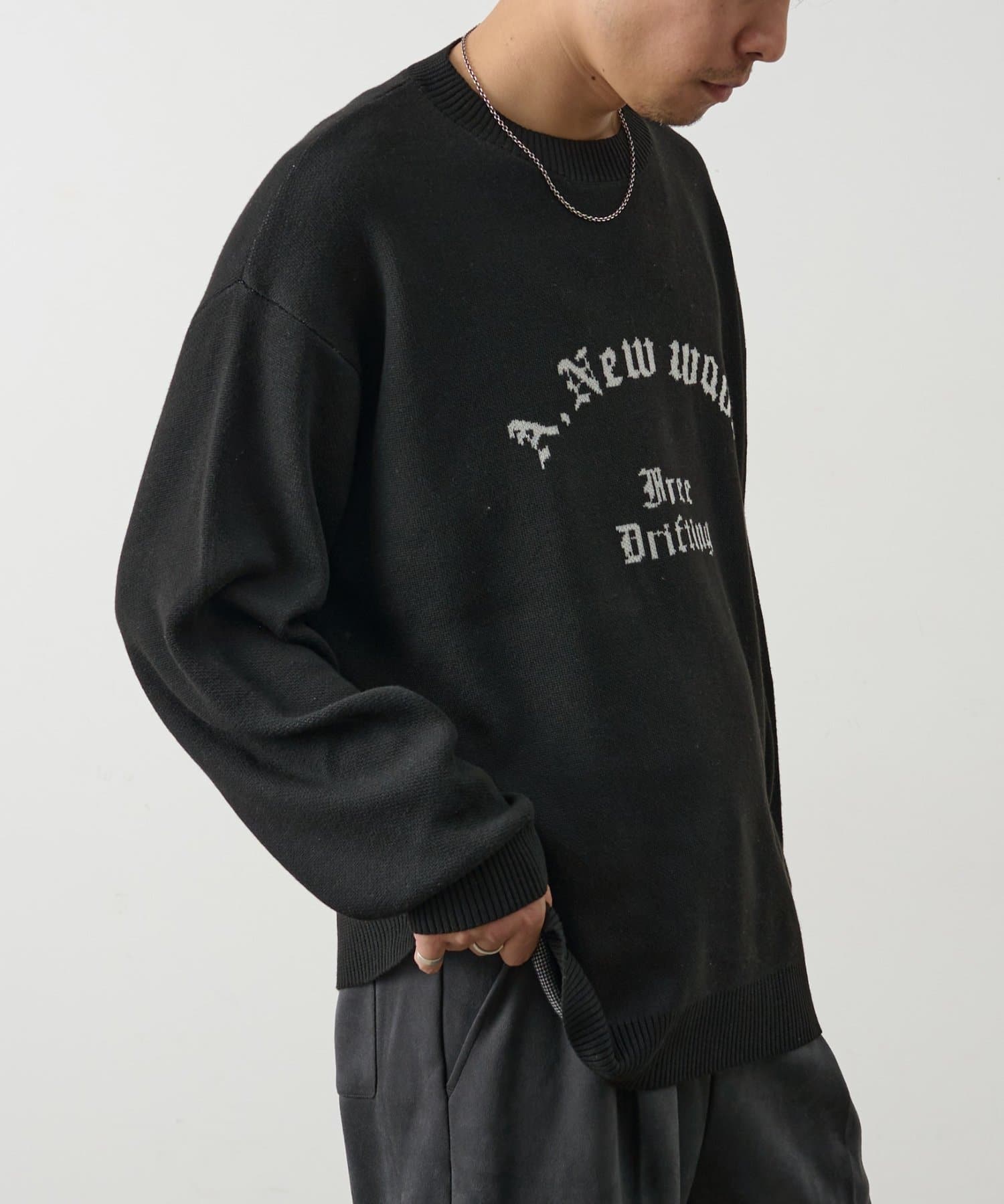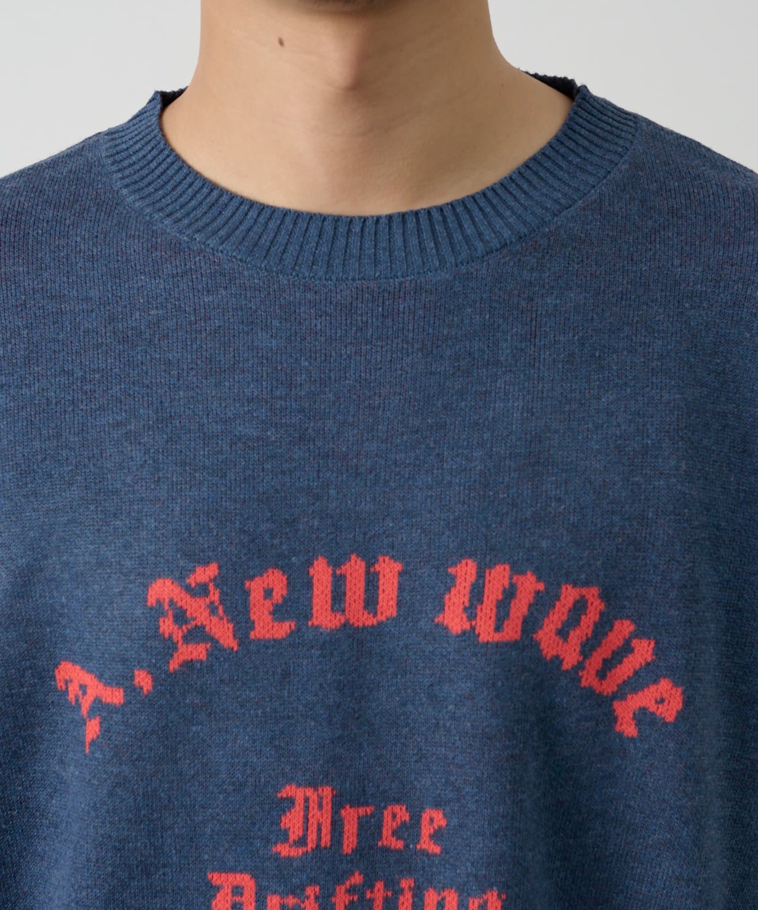 フロントに大きく配置したアーチロゴが目を引く、存在感のあるジャガードニットです。