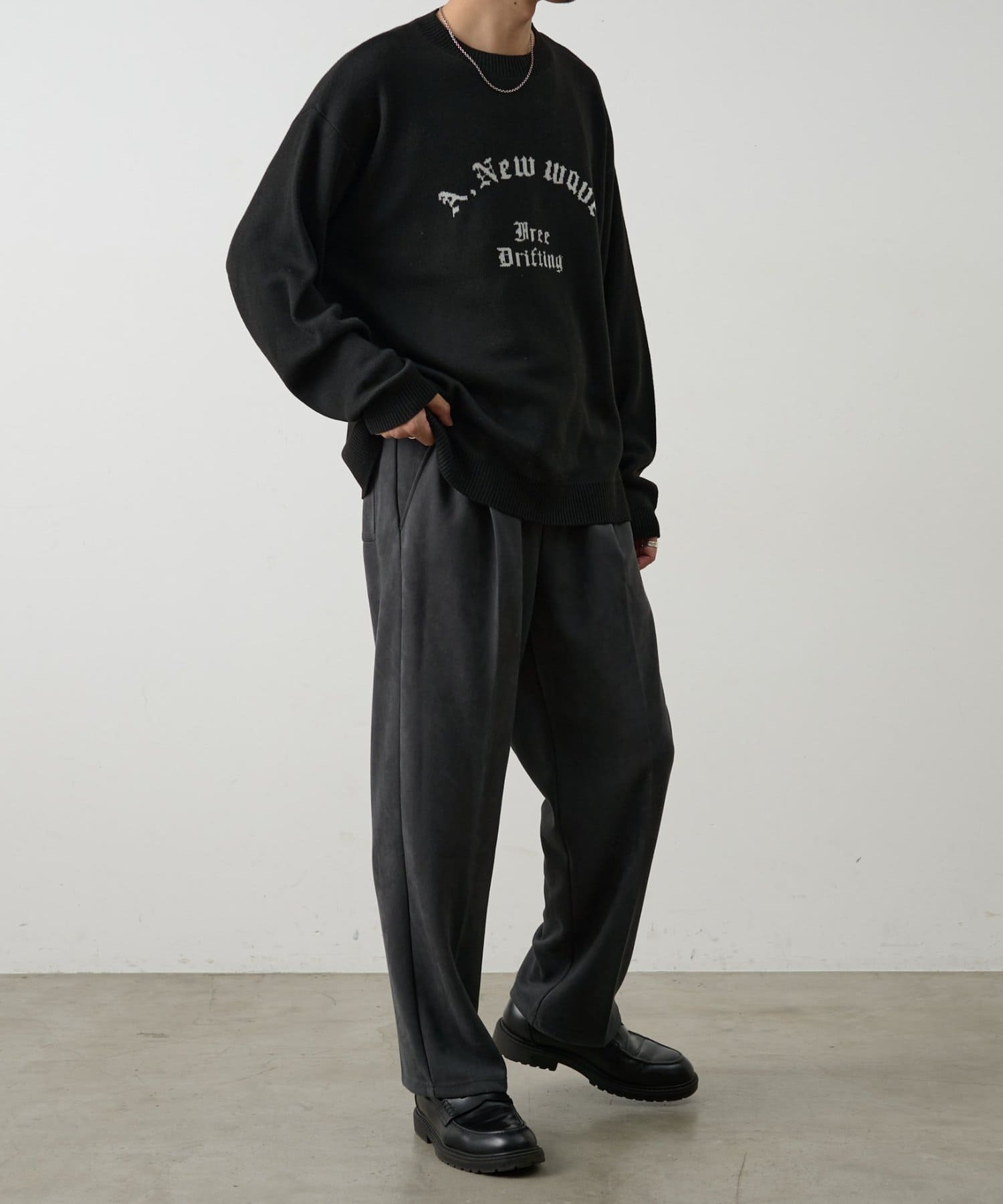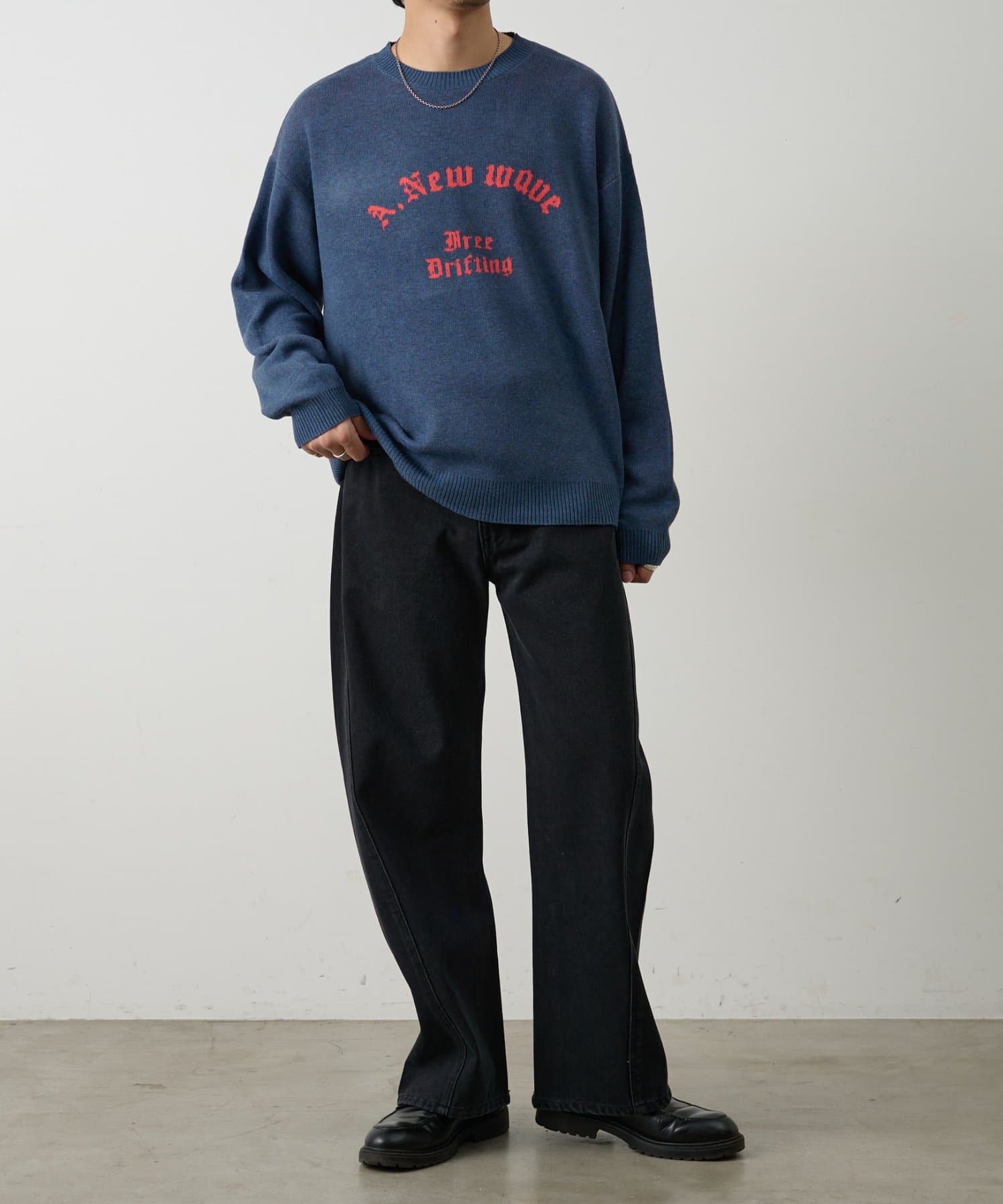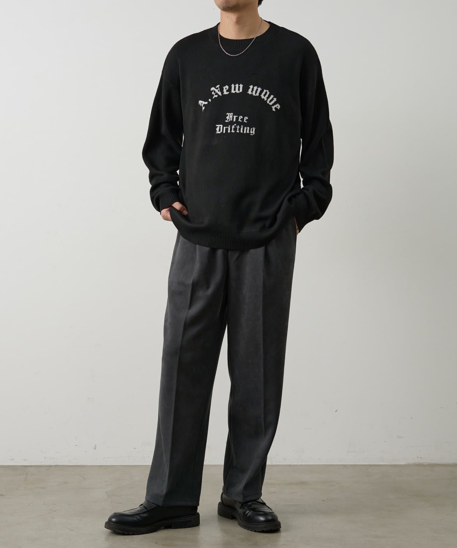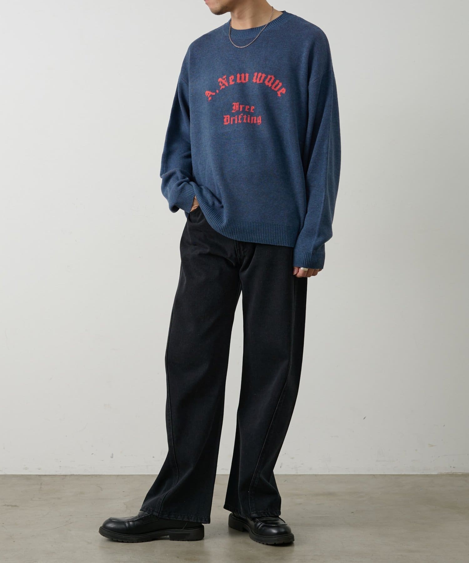 フロントに大きく配置したアーチロゴが目を引く、存在感のあるジャガードニットです。