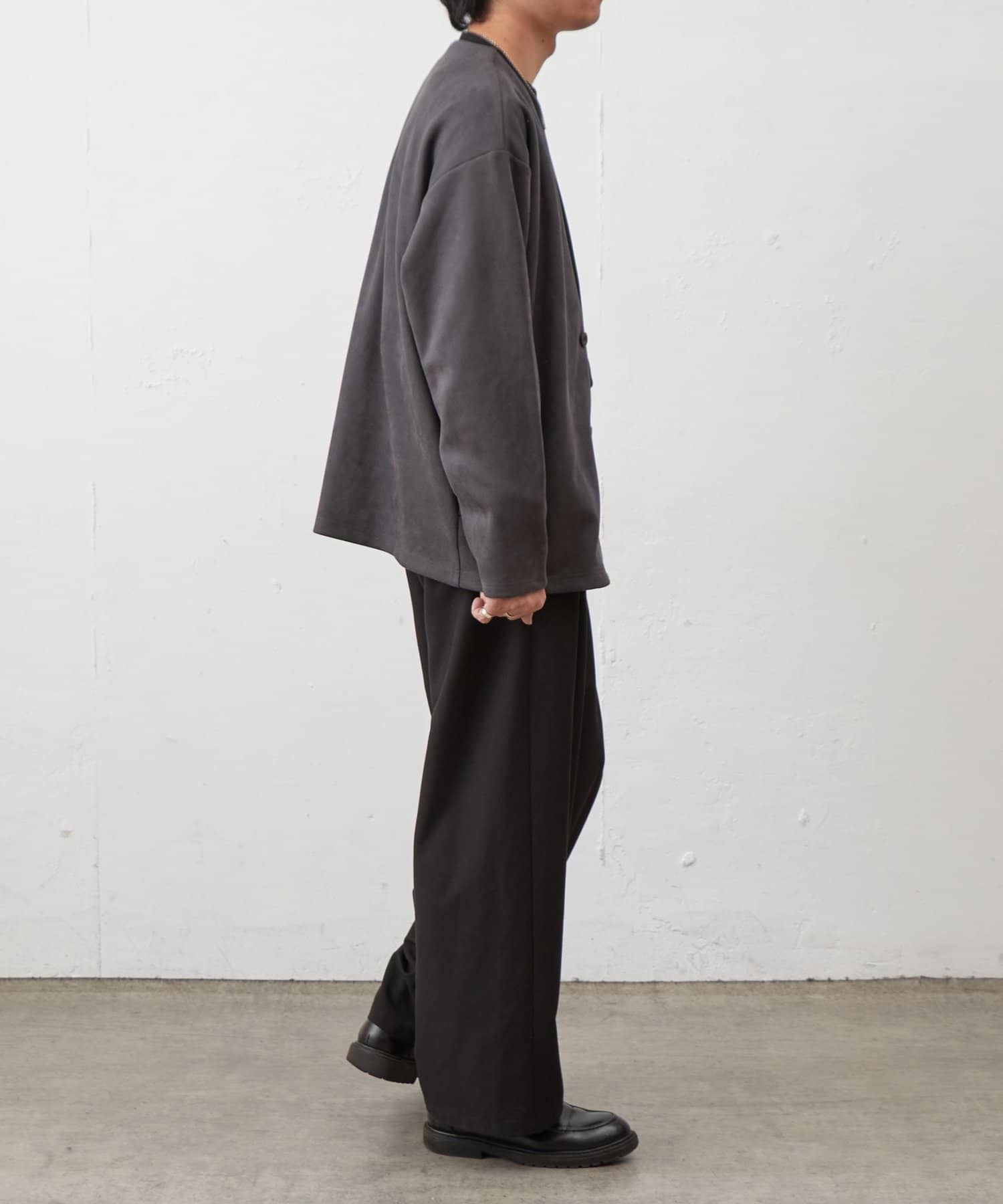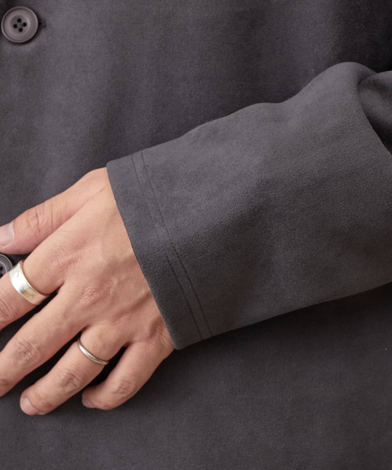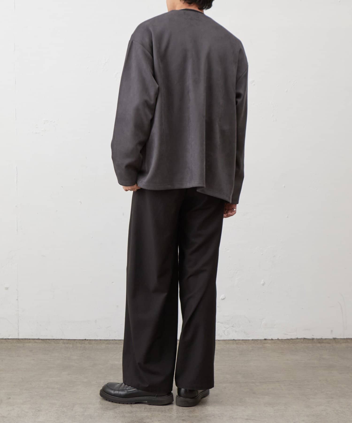 スエード調の柔らかな表情がカジュアルな装いにも自然な高級感をプラスします。