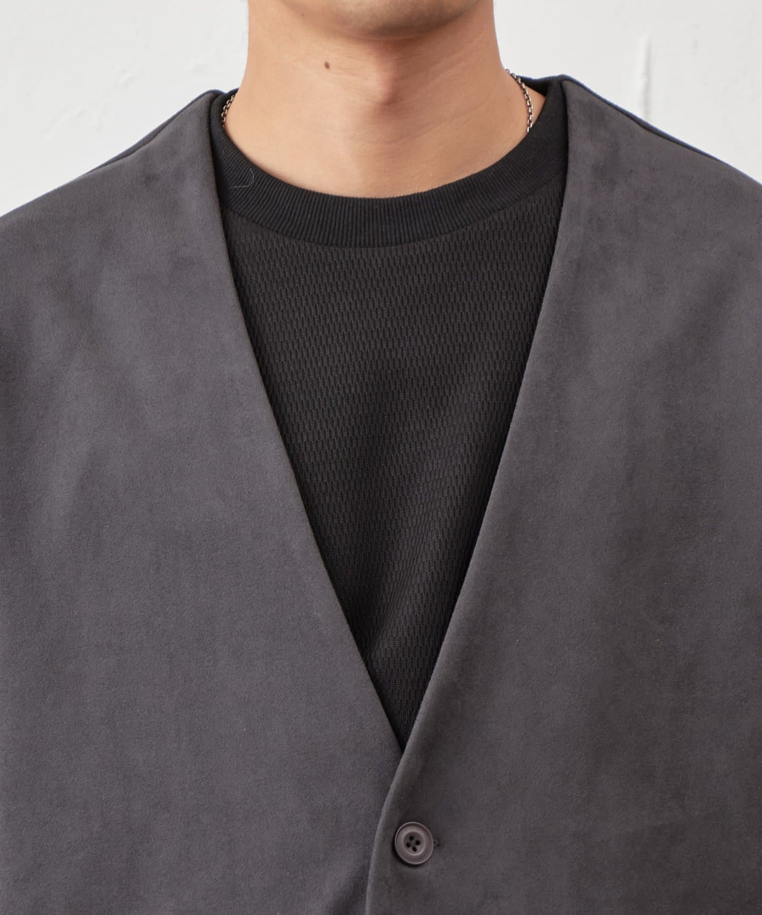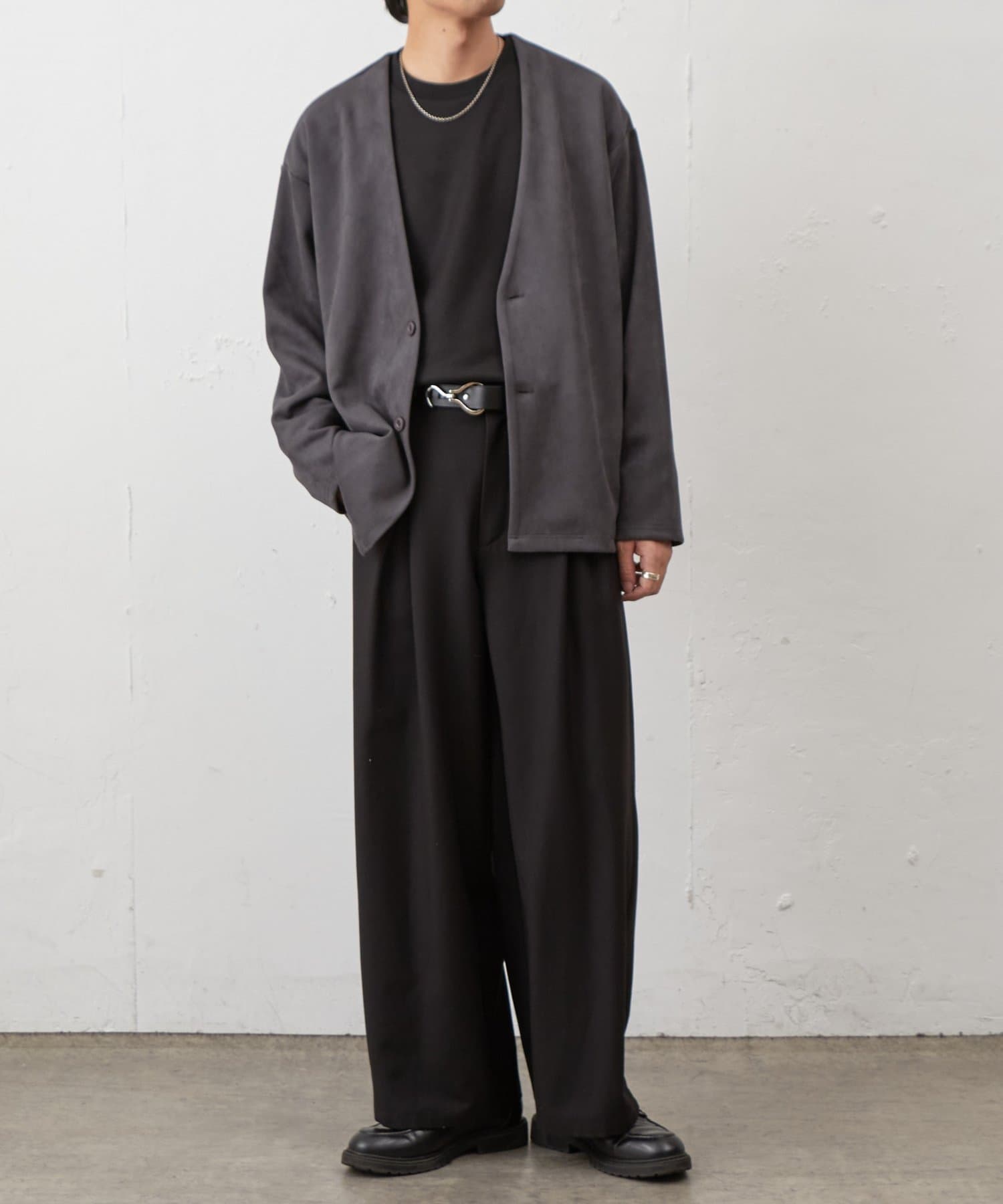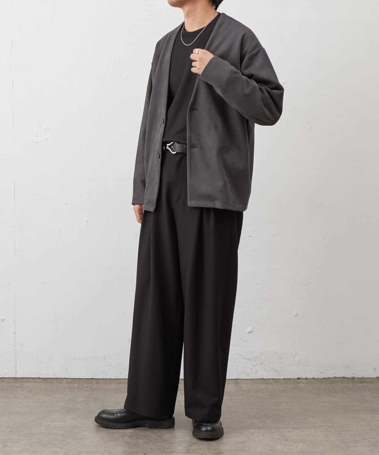 スエード調の柔らかな表情がカジュアルな装いにも自然な高級感をプラスします。