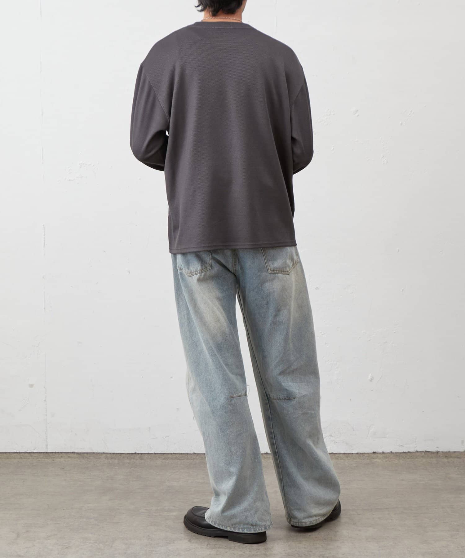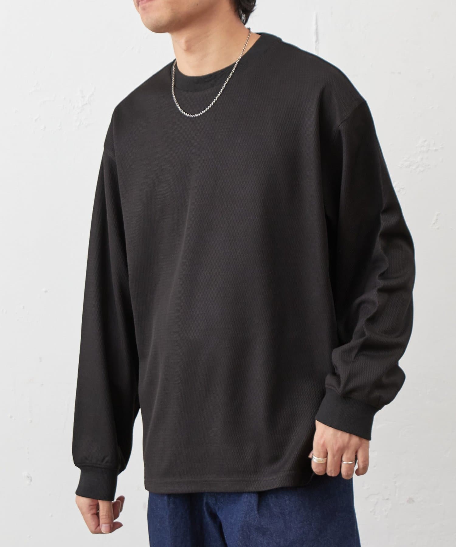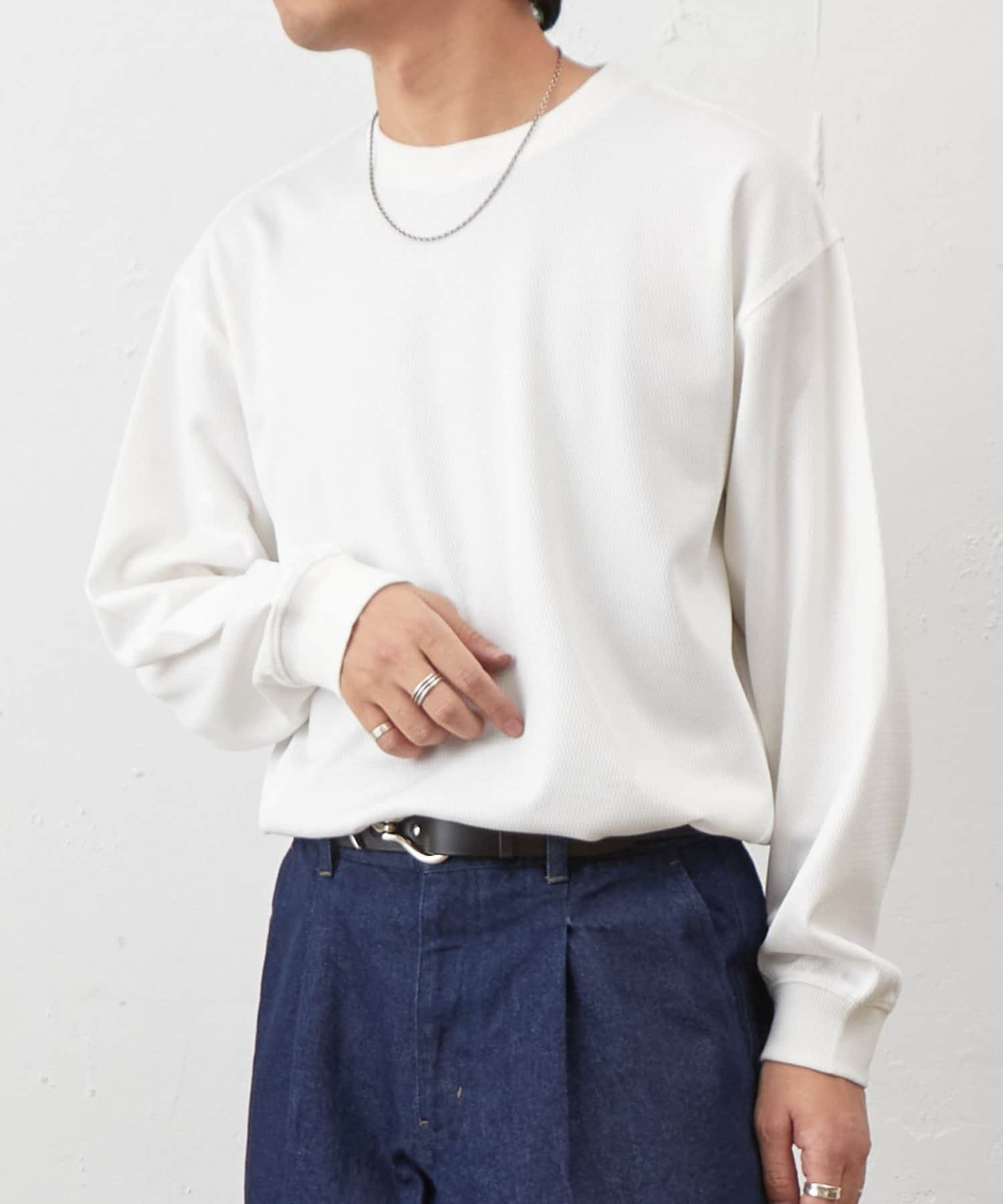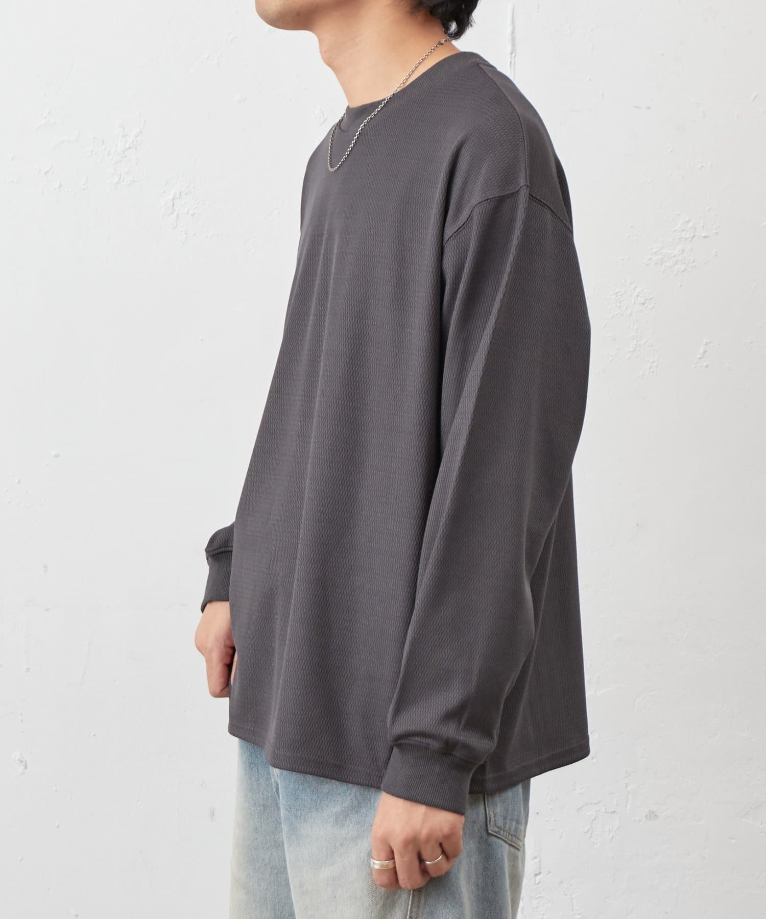 凹凸感のあるハニカム編みがシンプルながらも表情のある着こなしを叶えるクルーネックプルオーバー。
