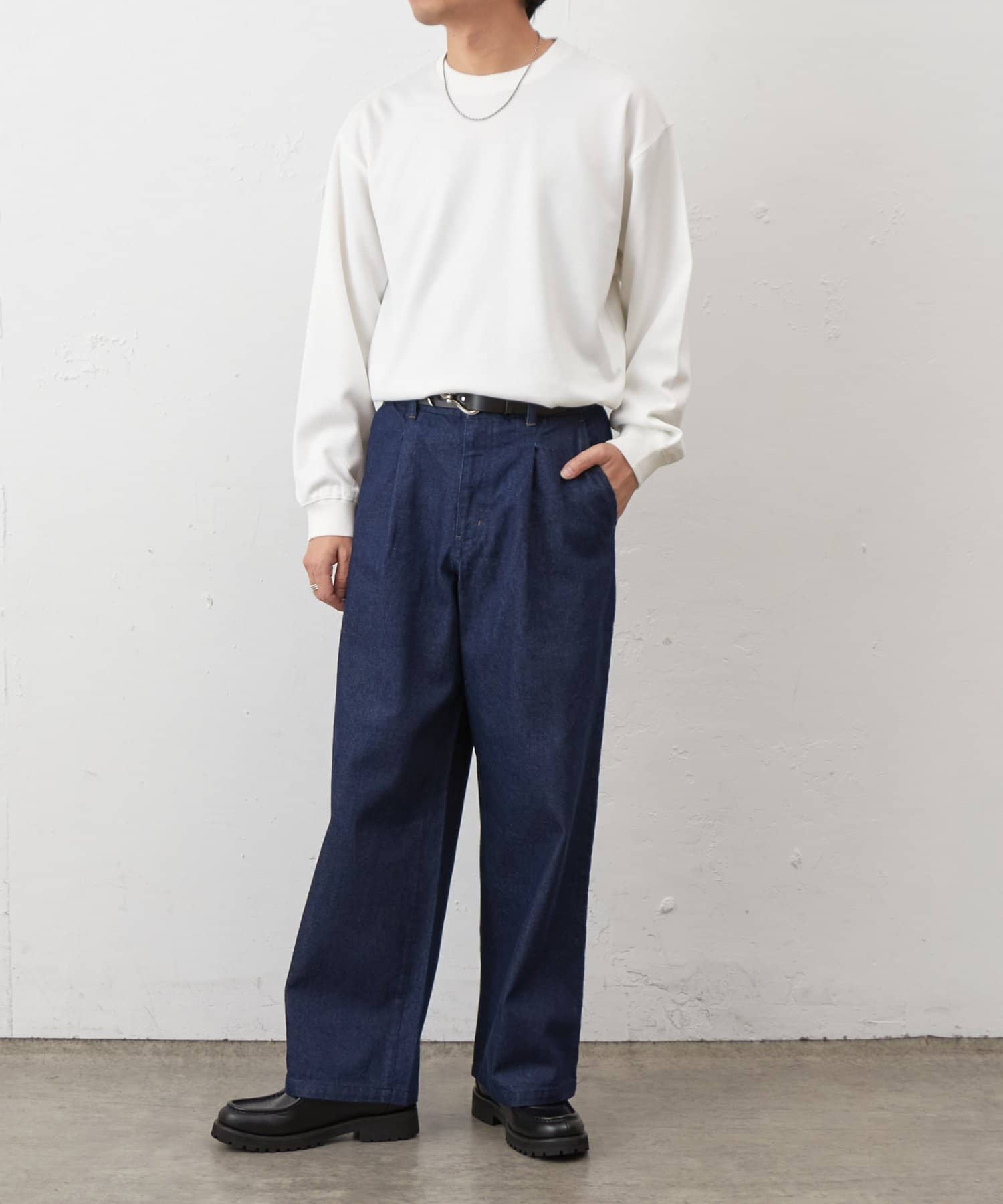 デニムやチノはもちろん、スラックス合わせで品よくまとめるのもおすすめです◎