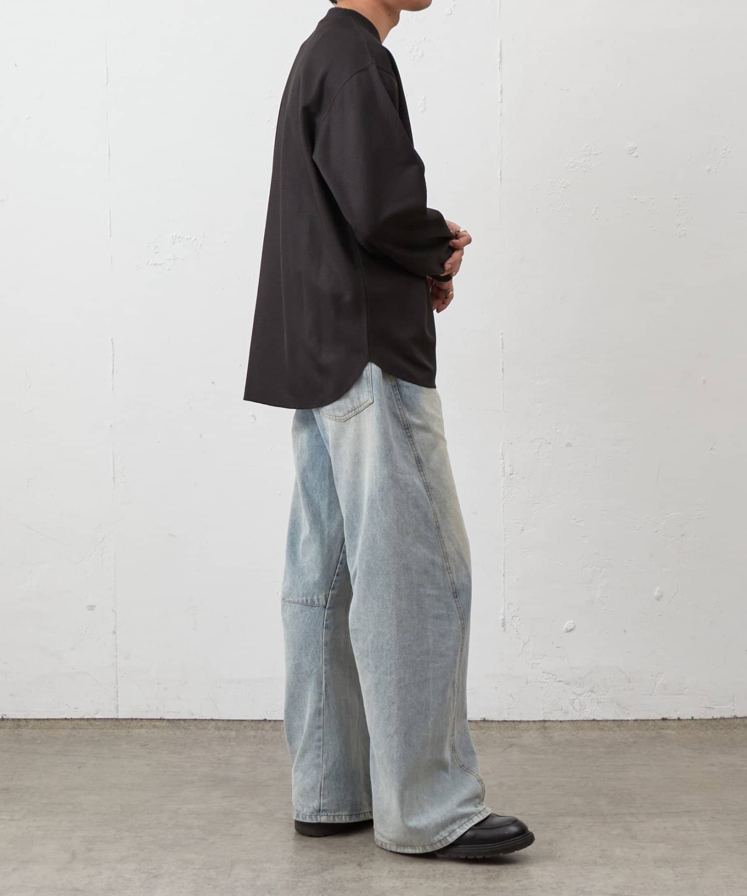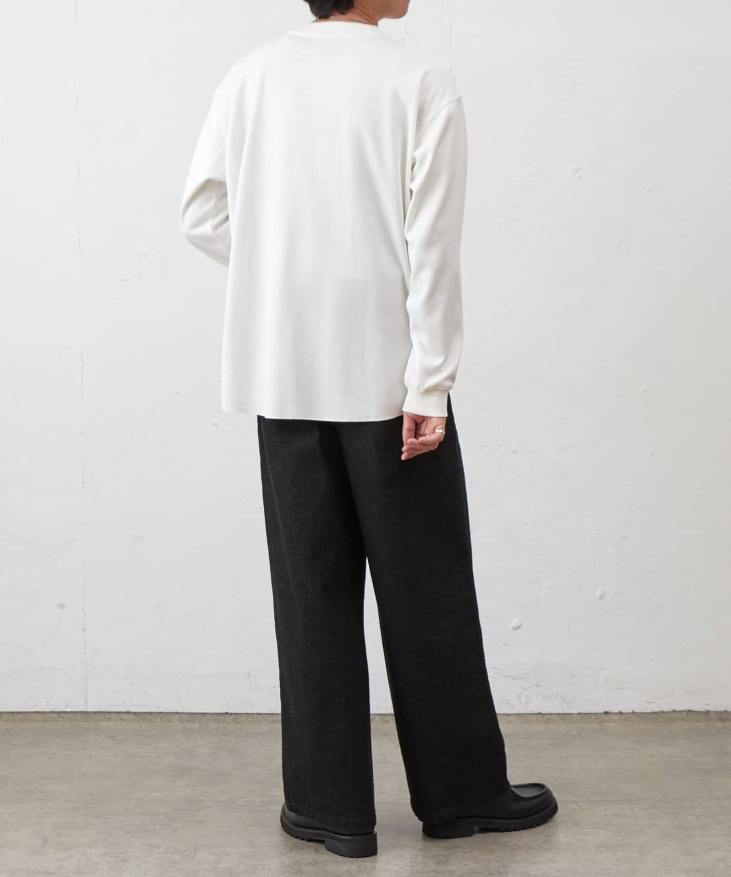 デニムでラフに、スラックスで品よく、様々なボトムスとも相性がいいトップスです。