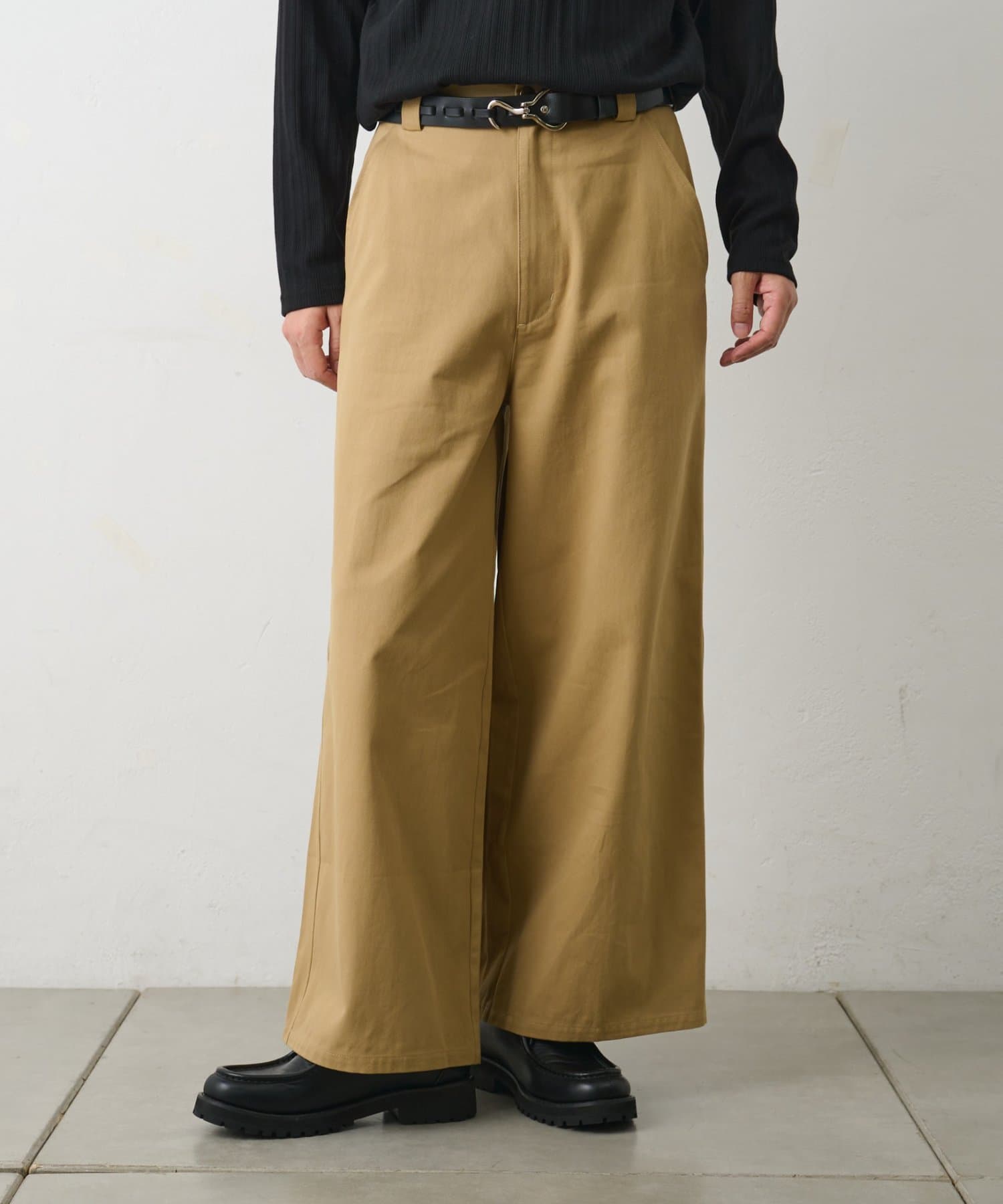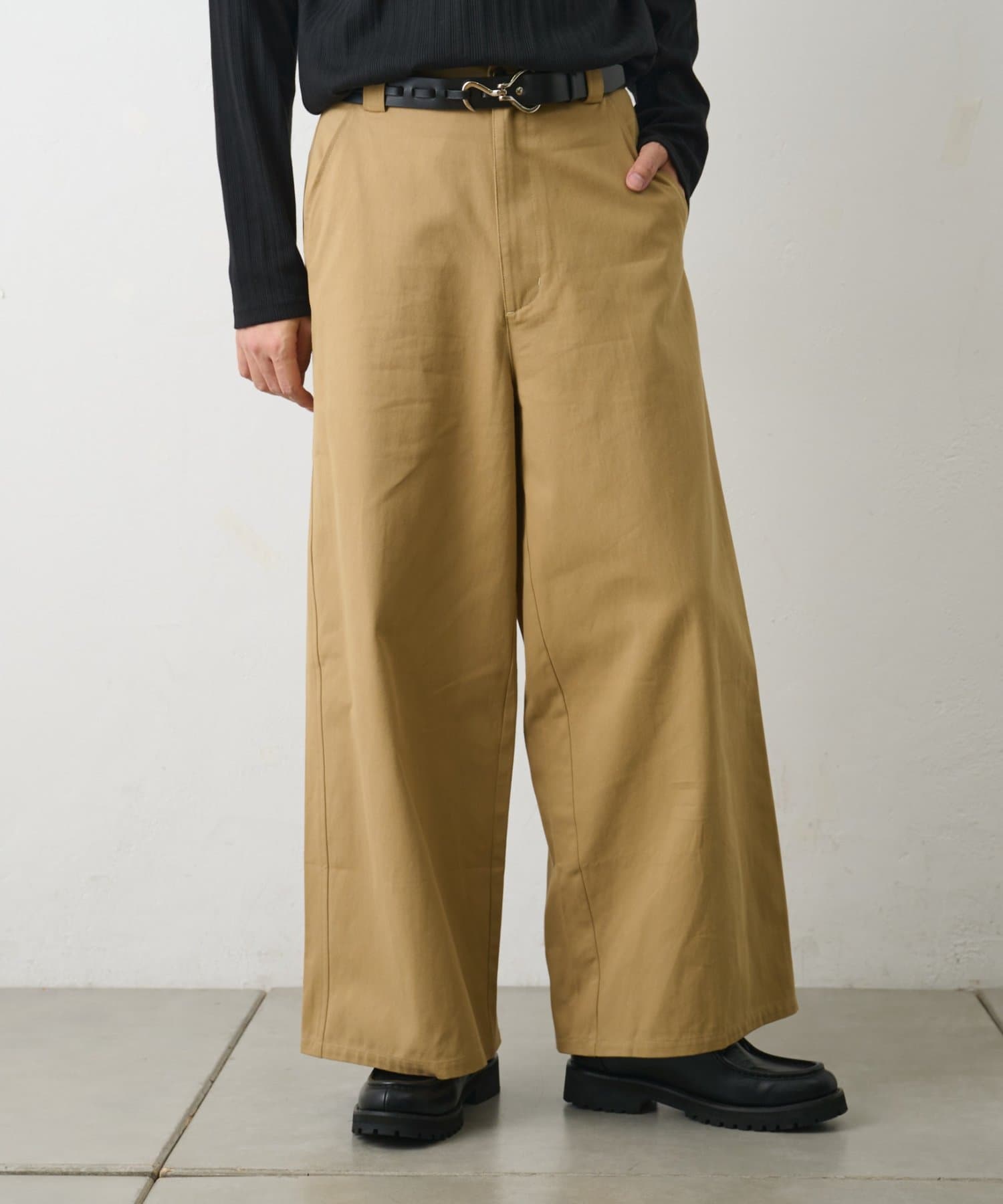 お尻から裾にかけてゆったりとしたワイドシルエットでコーデにトレンド感を取り入れられるアイテムです。