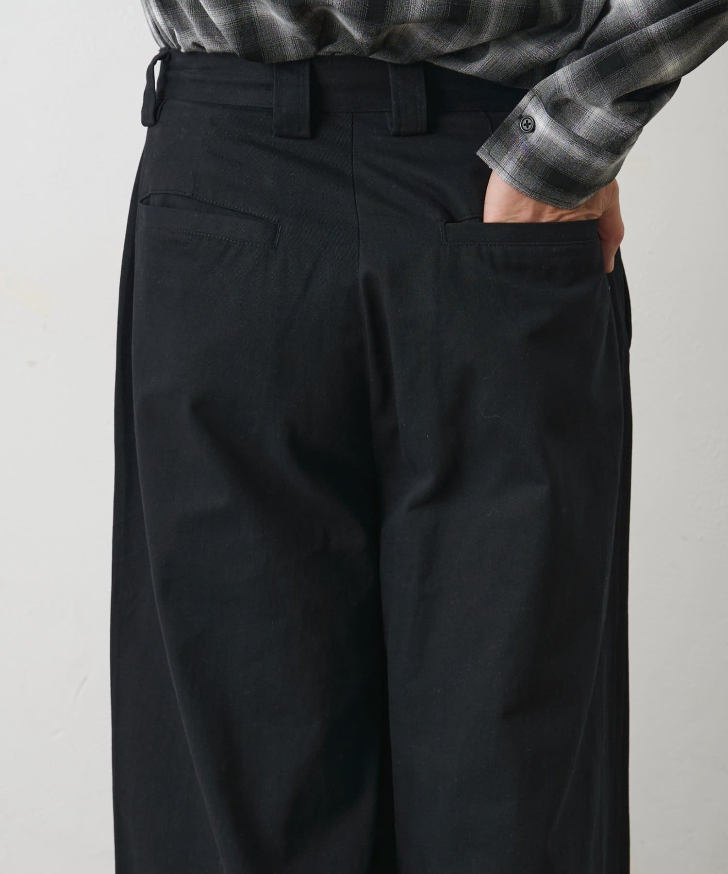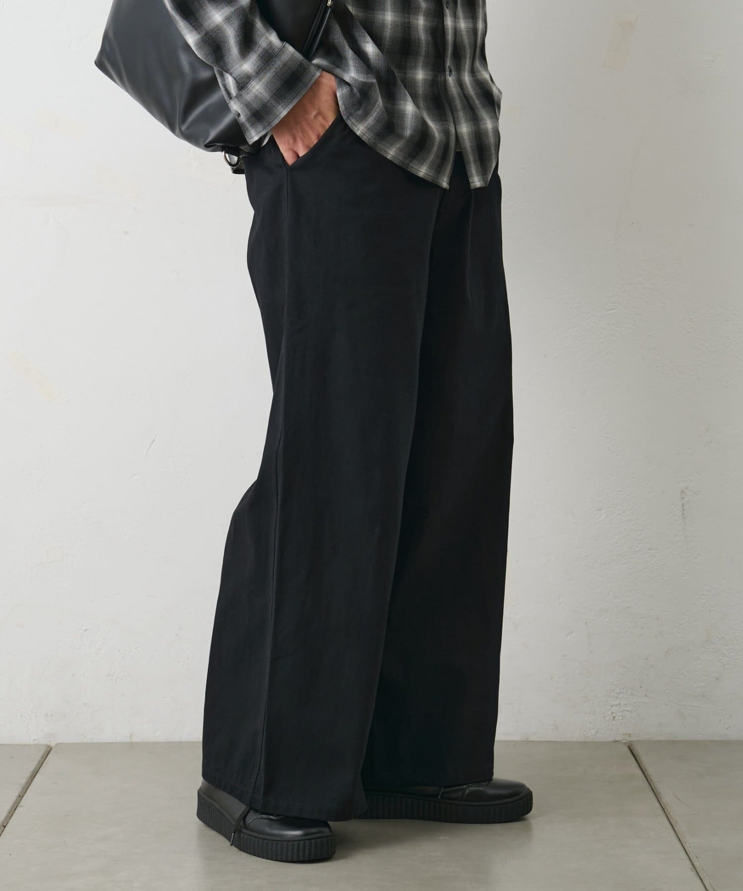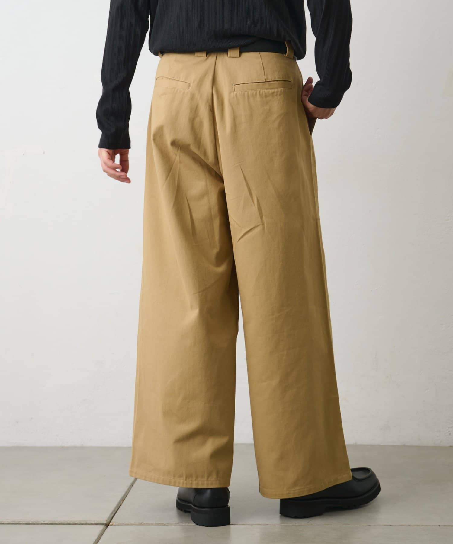 しっかりとしたハリ感のあるコットンツイル素材を使用したバギーパンツです。