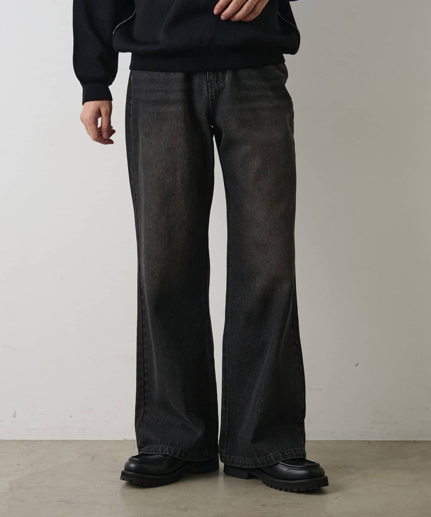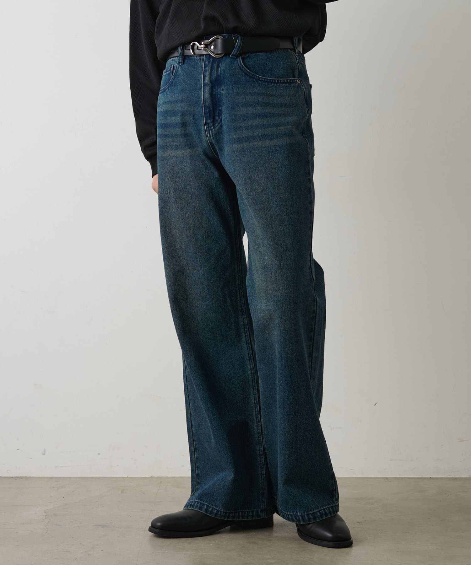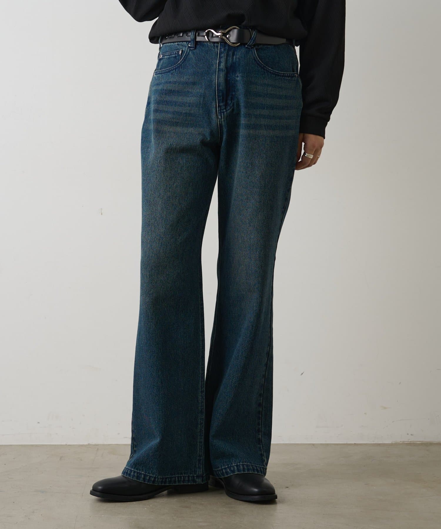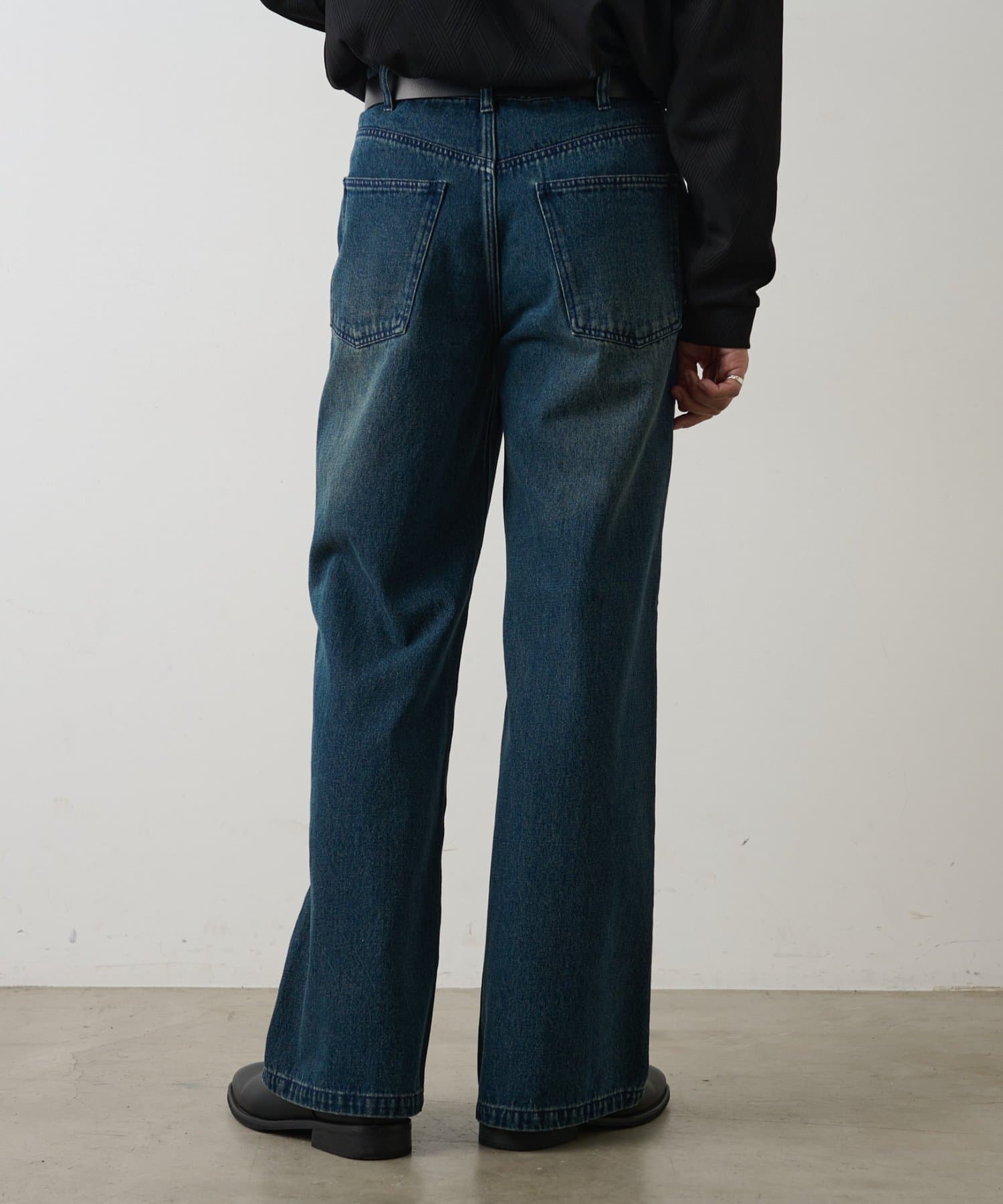 【セットアップ対応】セミフレアウォッシュドデニムパンツ