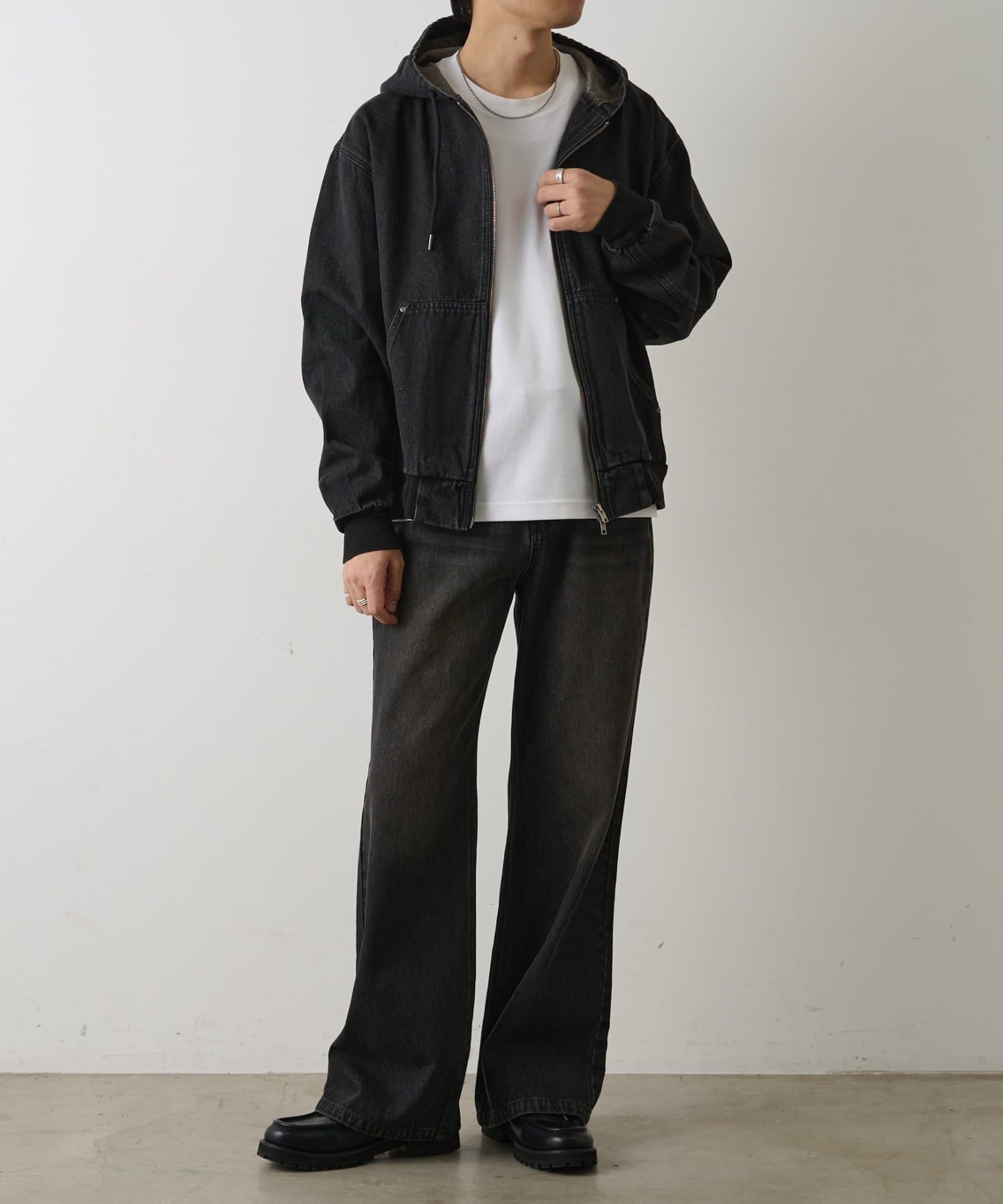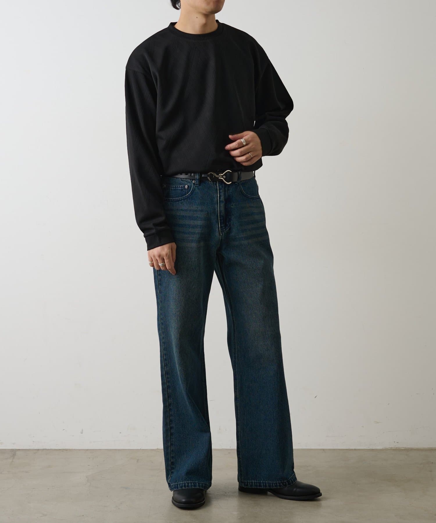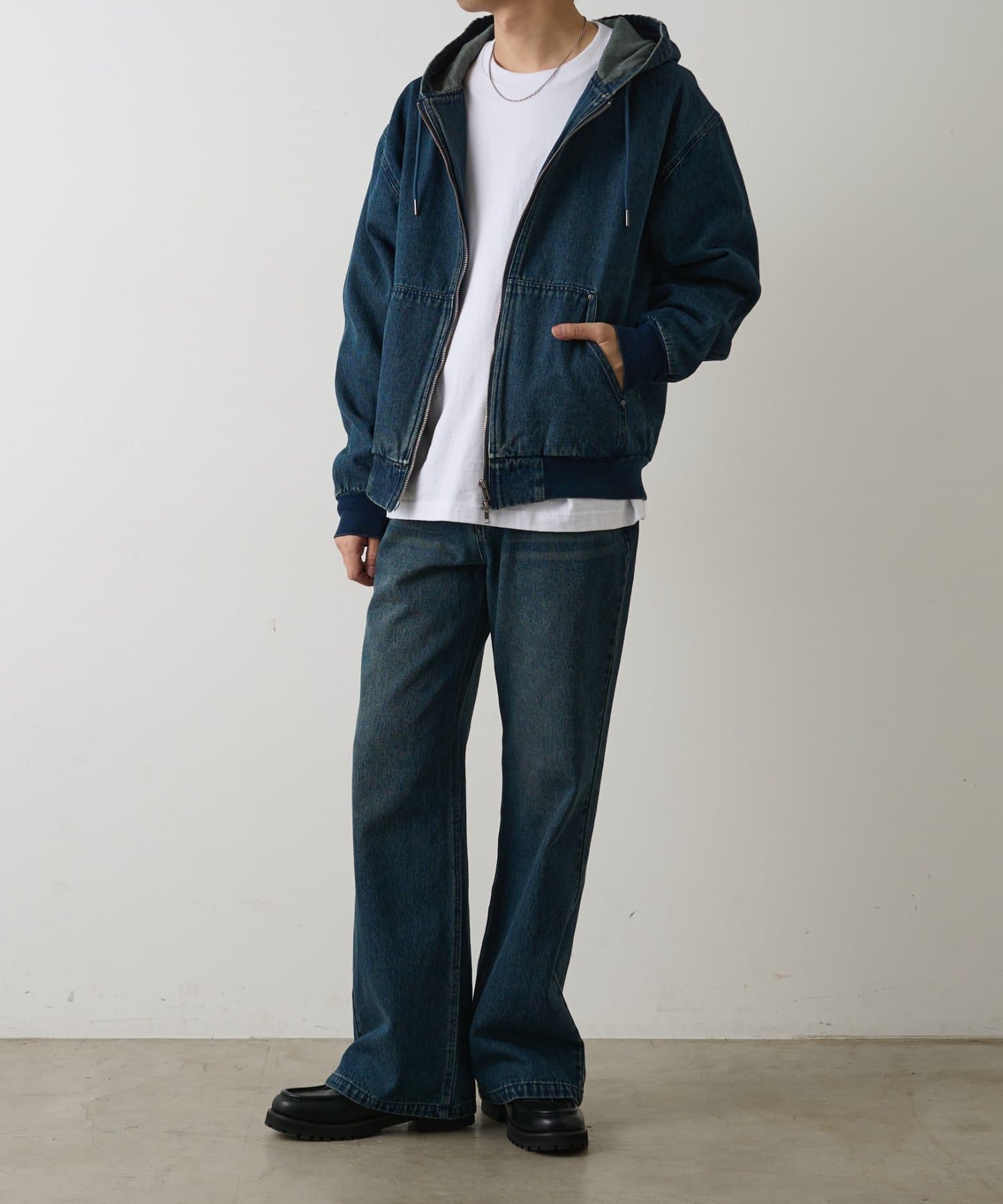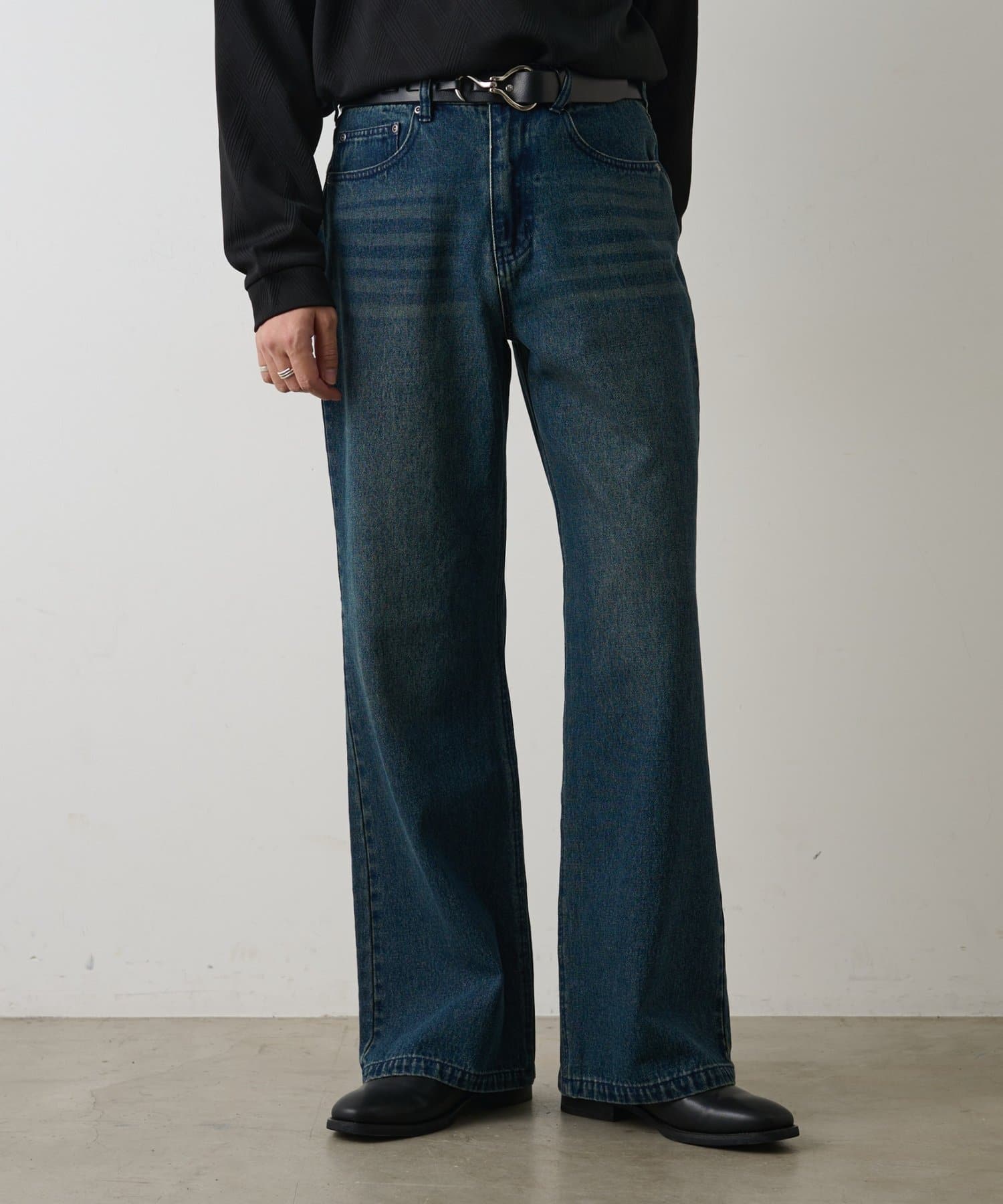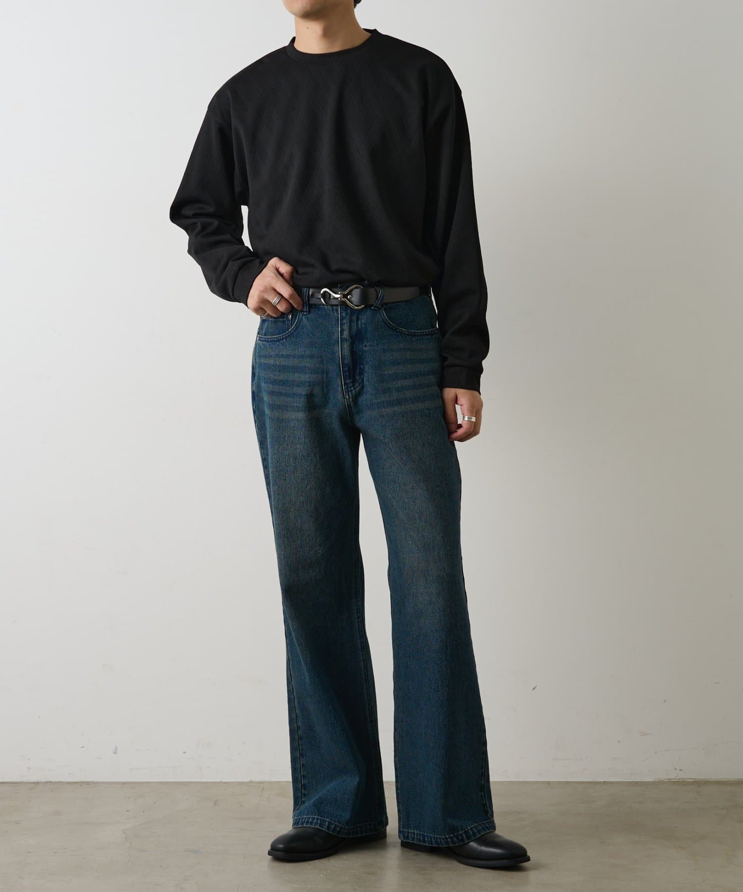 【セットアップ対応】セミフレアウォッシュドデニムパンツ