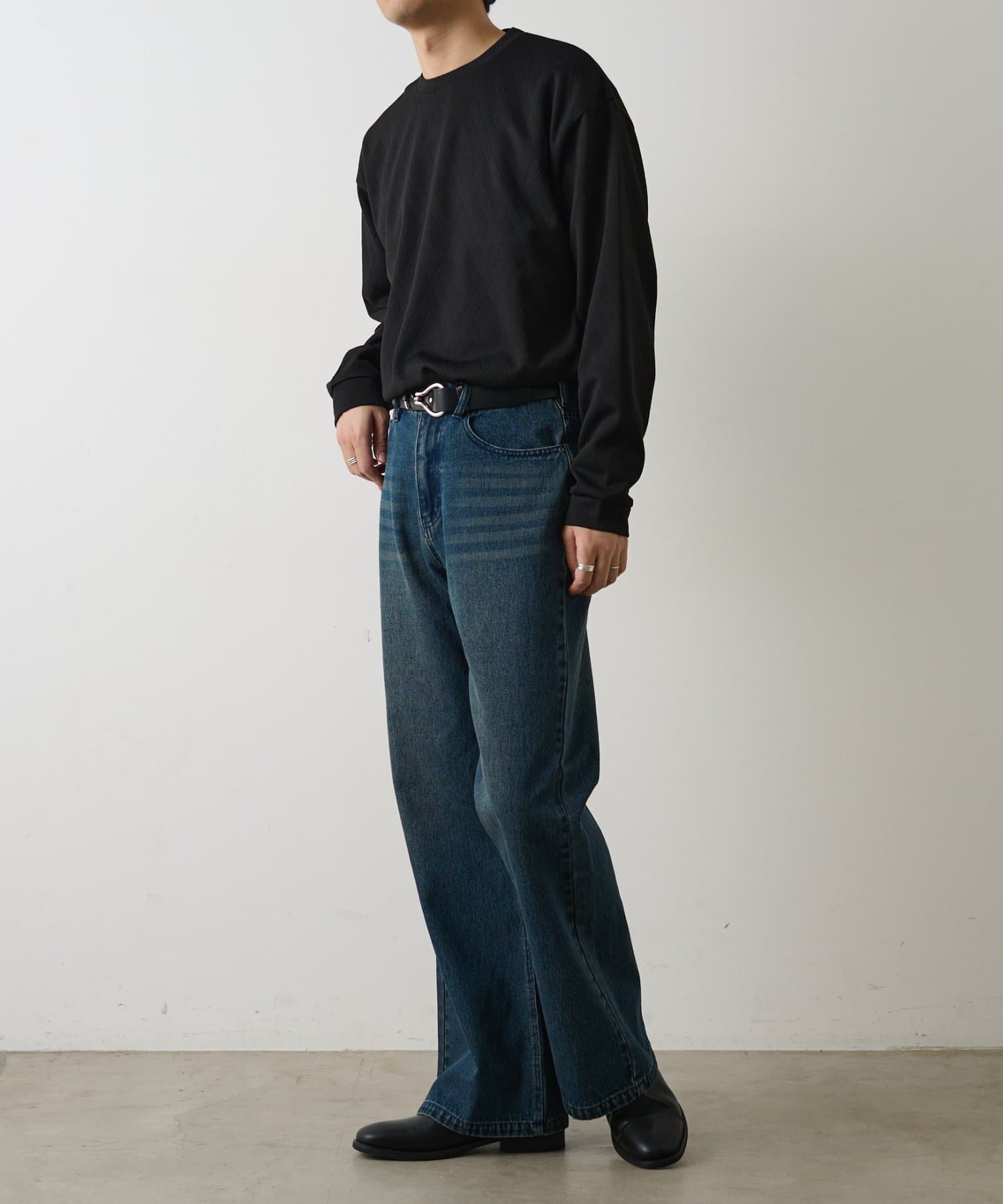 普段デニムをよく穿く方の雰囲気チェンジはもちろん、あまり穿かない方の挑戦のデニムとしても手に取りやすいセミフレアデニムです。