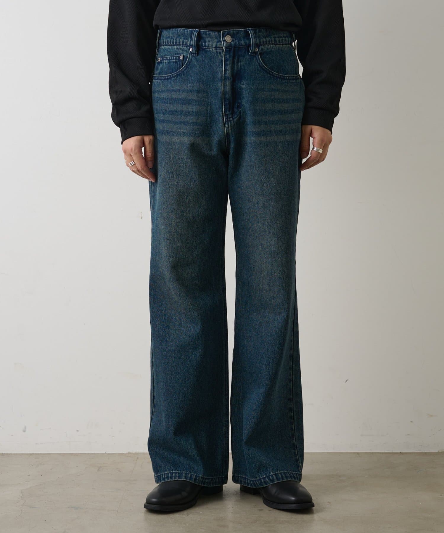 程よい色落ち加工を施したウォッシュドデニムのセミフレアパンツデニムです。