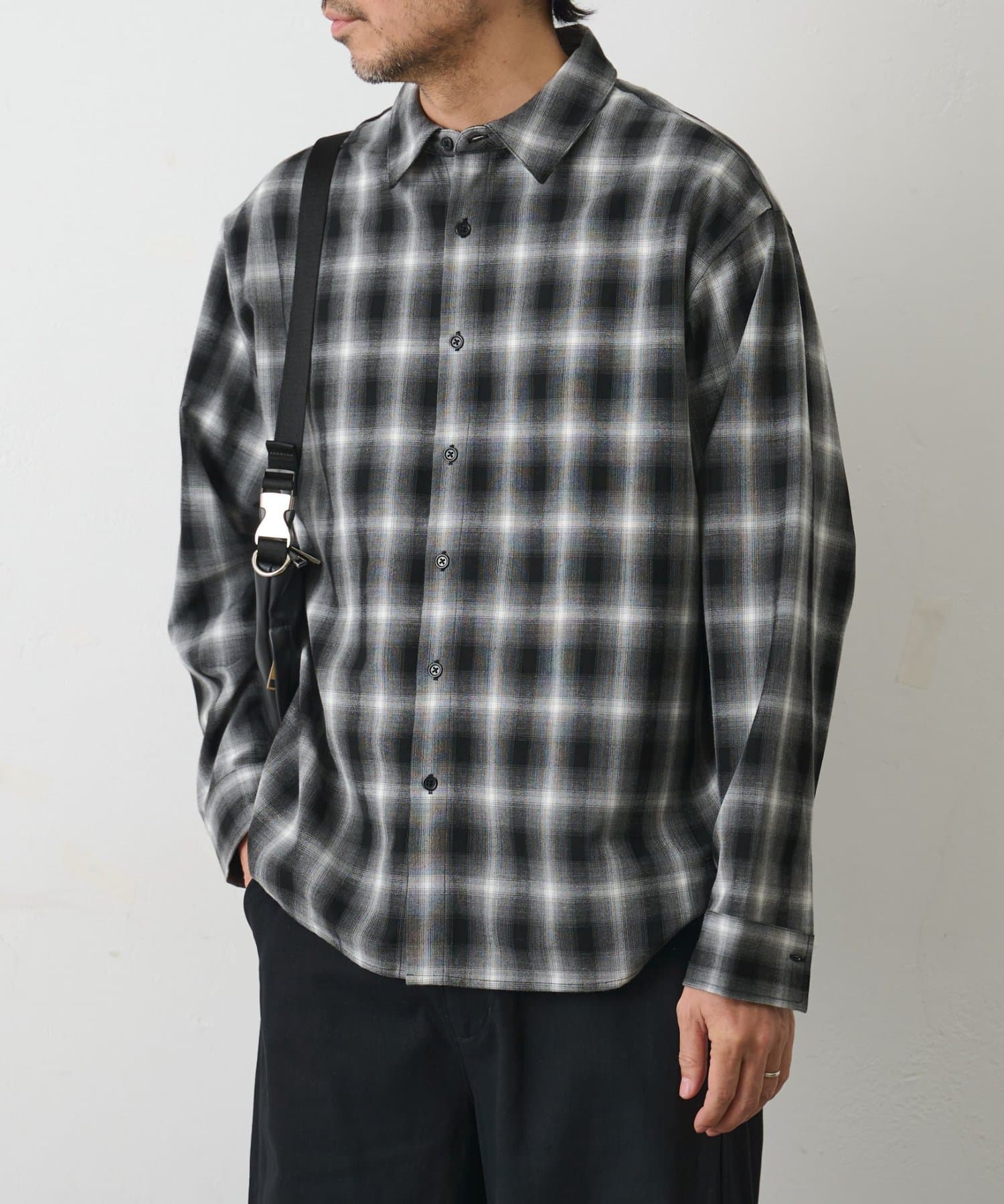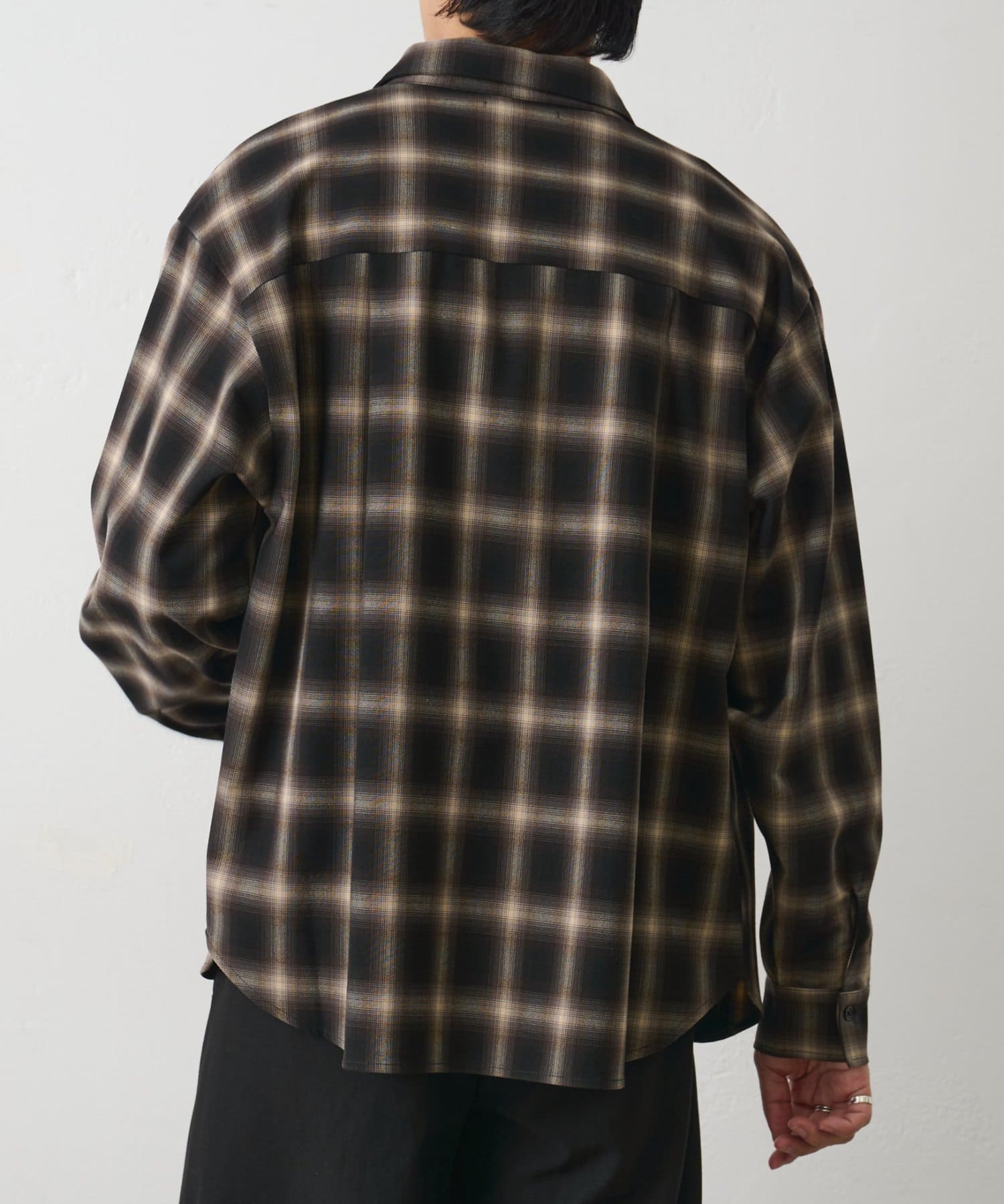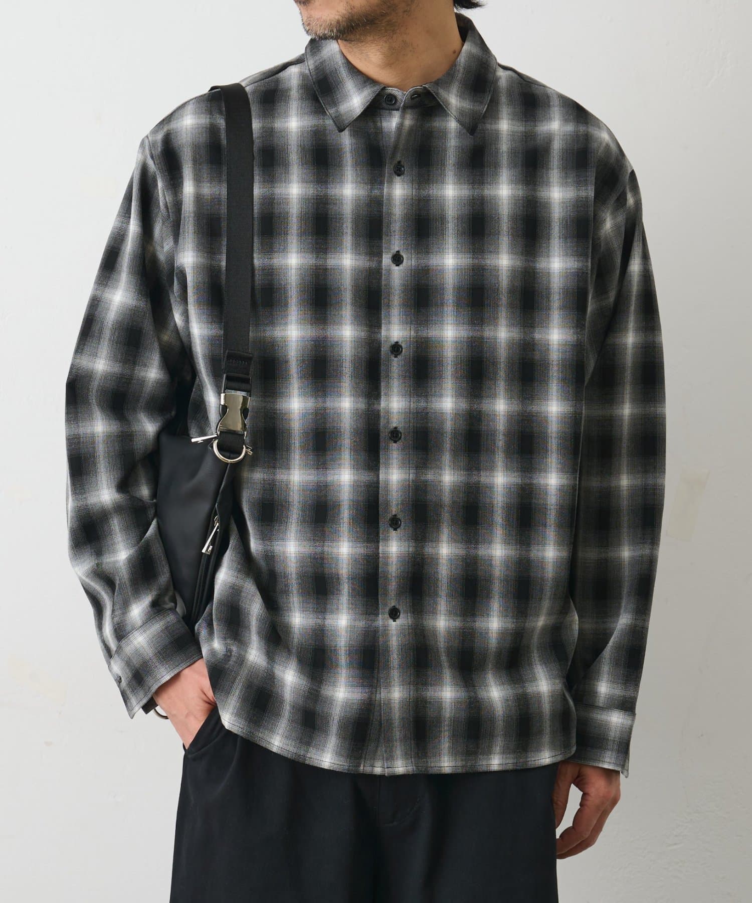 滑らかな肌触りが魅力のシルキー素材を使用したオンブレチェック柄の長袖シャツです。
