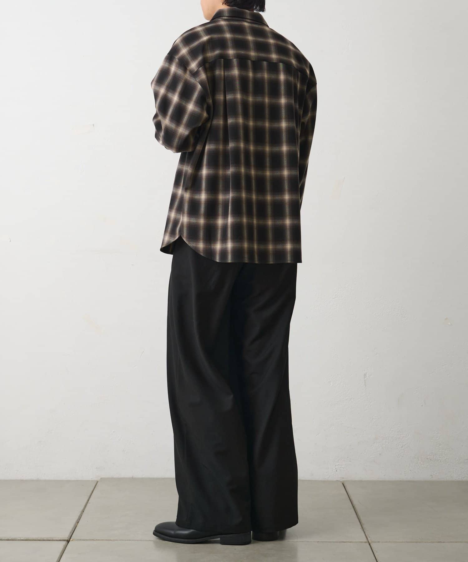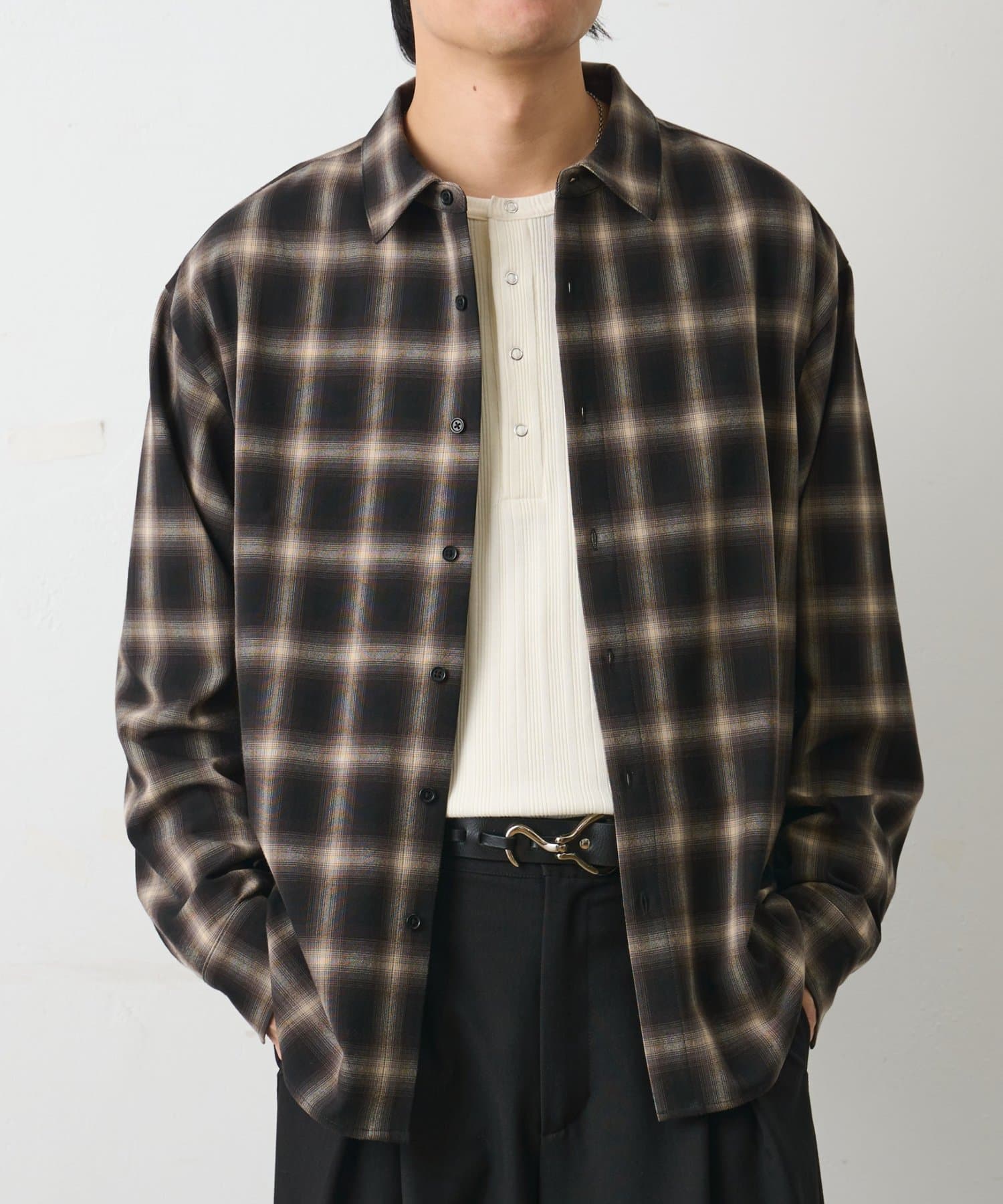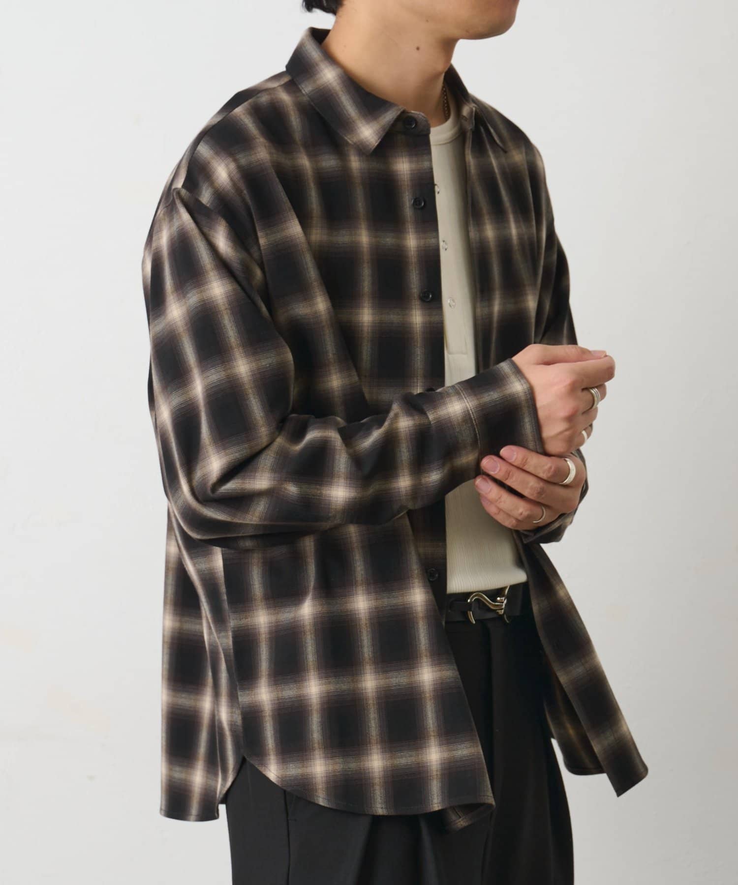滑らかな肌触りが魅力のシルキー素材を使用したオンブレチェック柄の長袖シャツです。