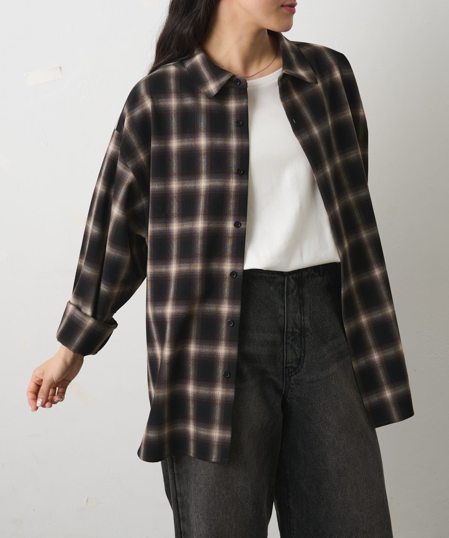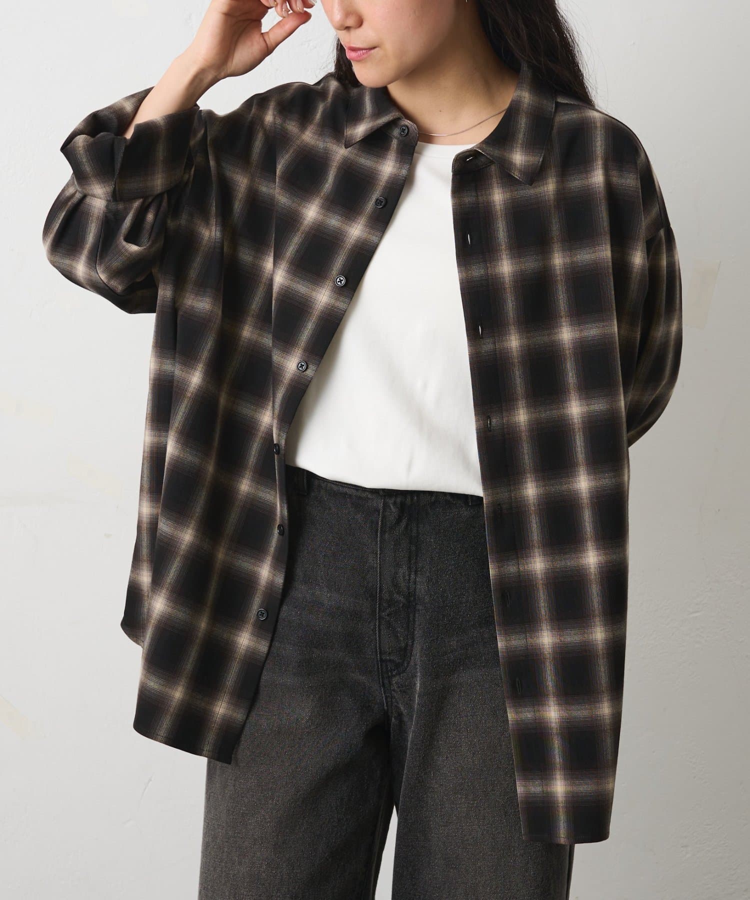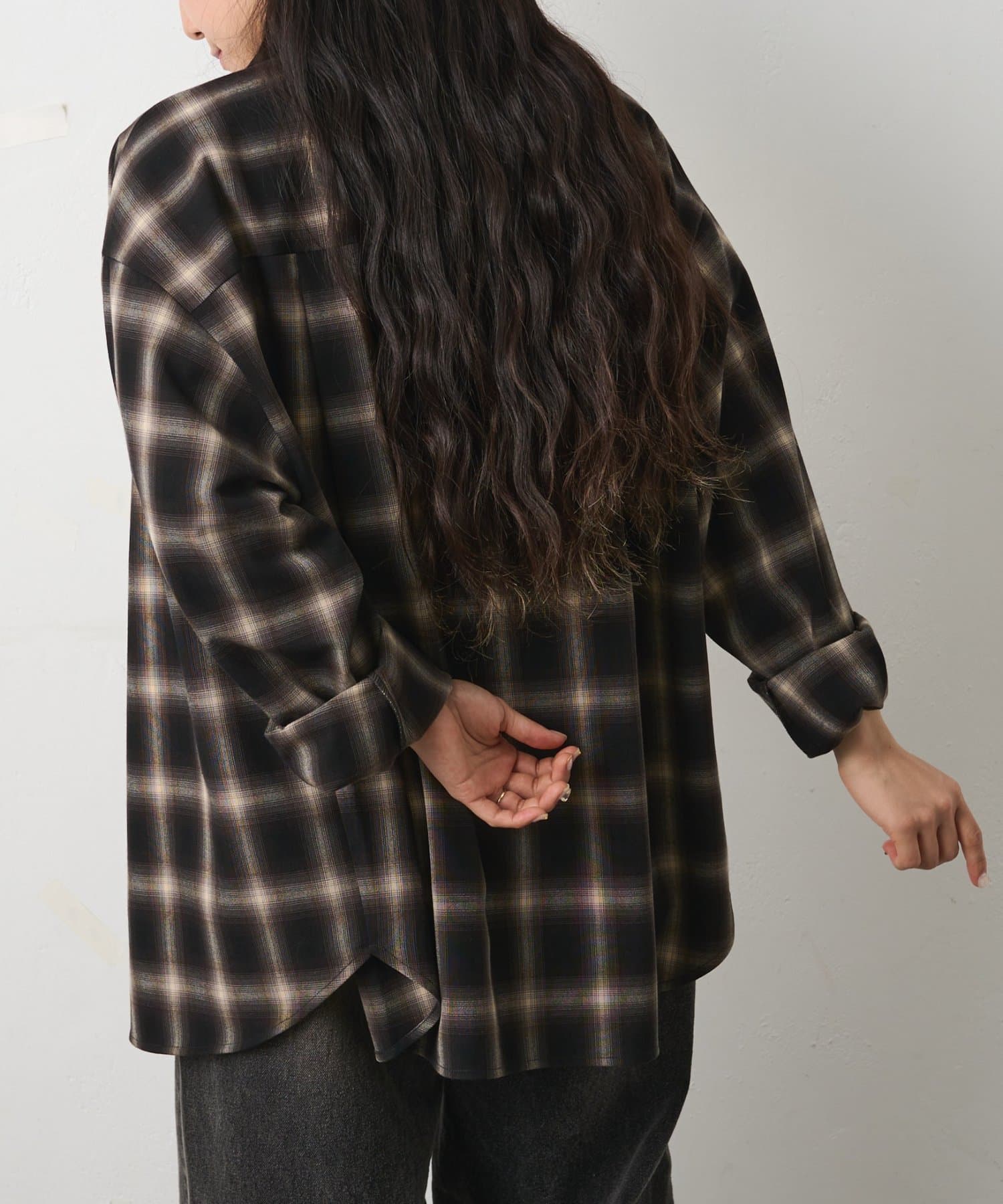 シルキーオンブレチェック長袖シャツ