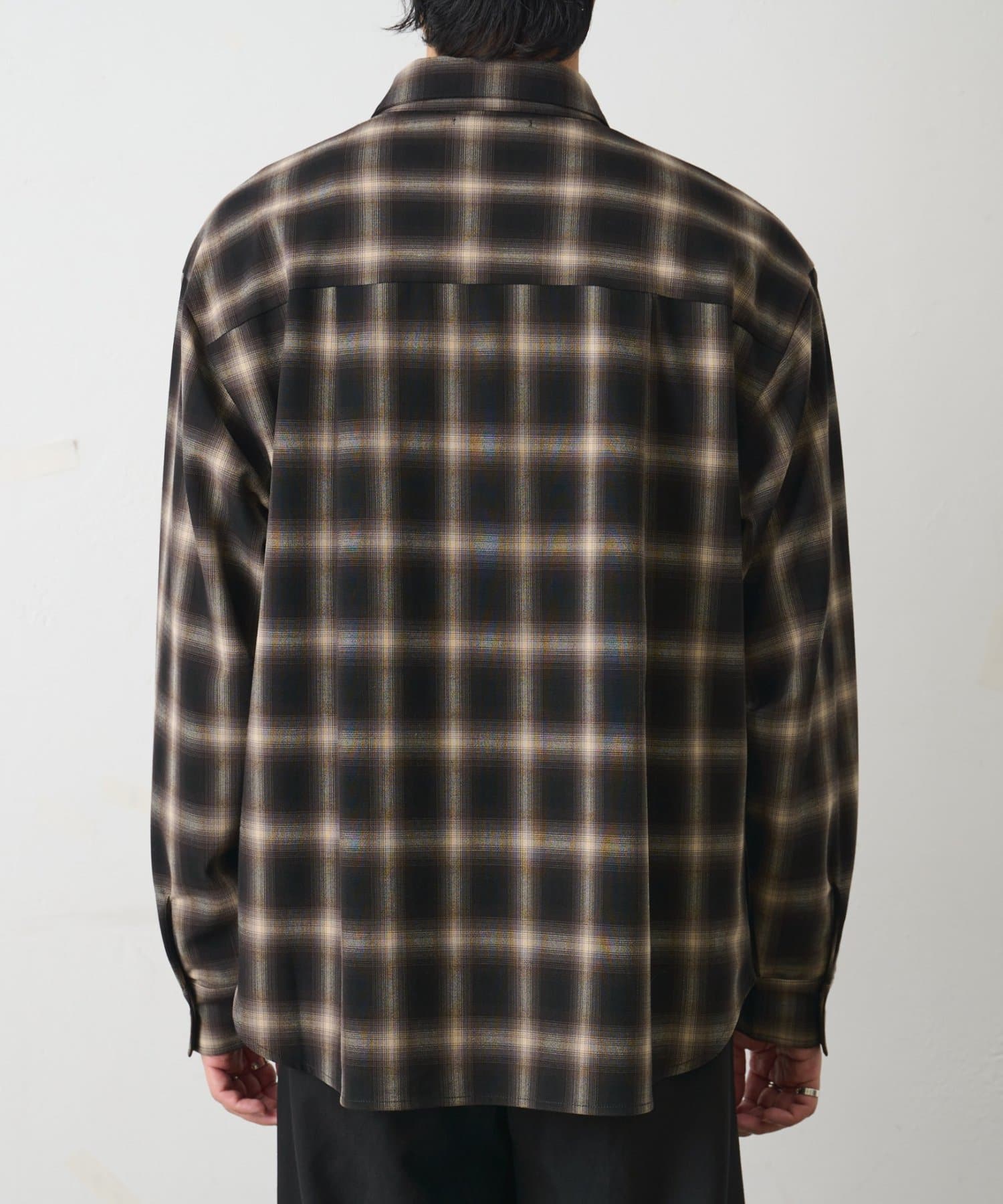 滑らかな肌触りが魅力のシルキー素材を使用したオンブレチェック柄の長袖シャツです。
