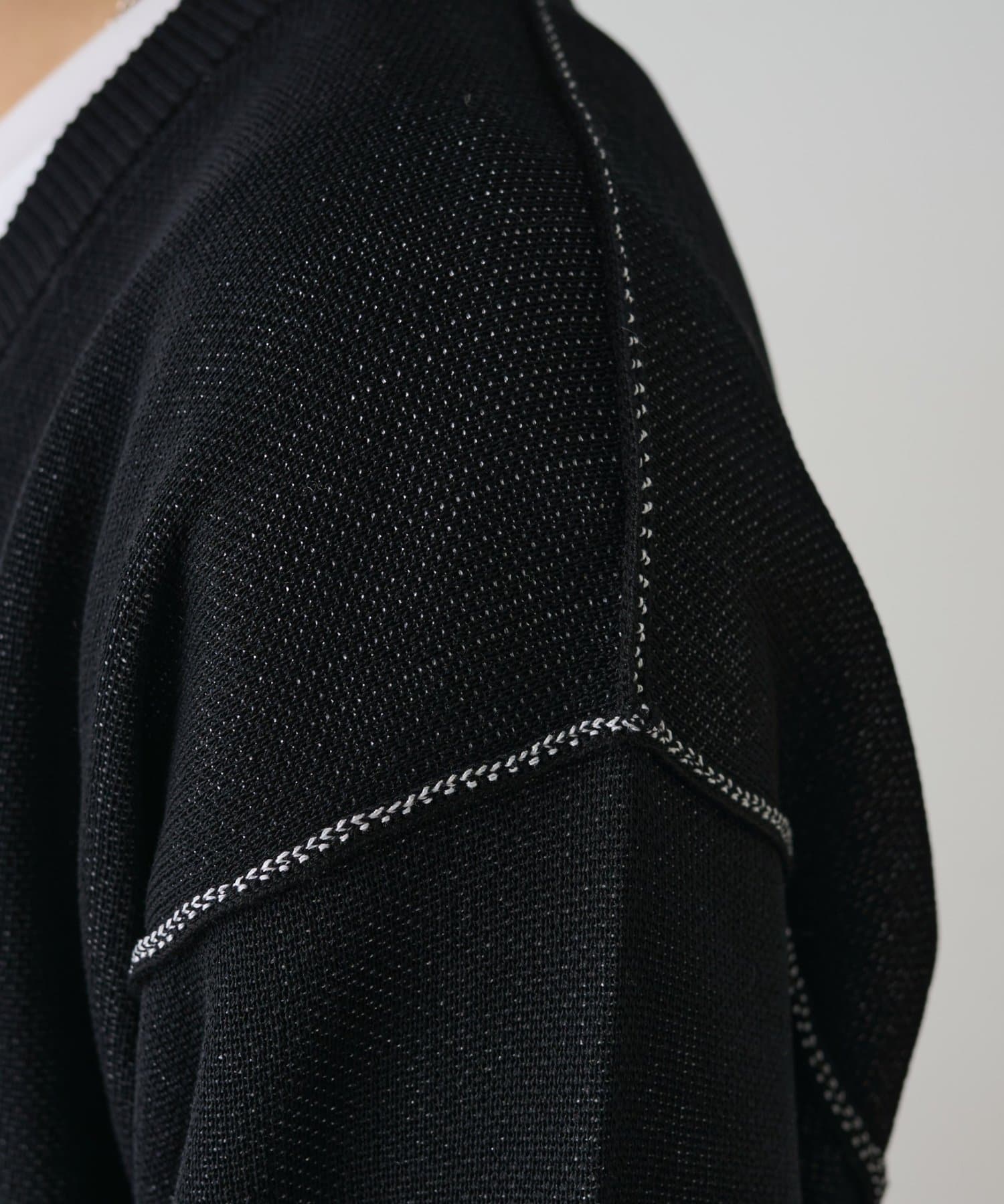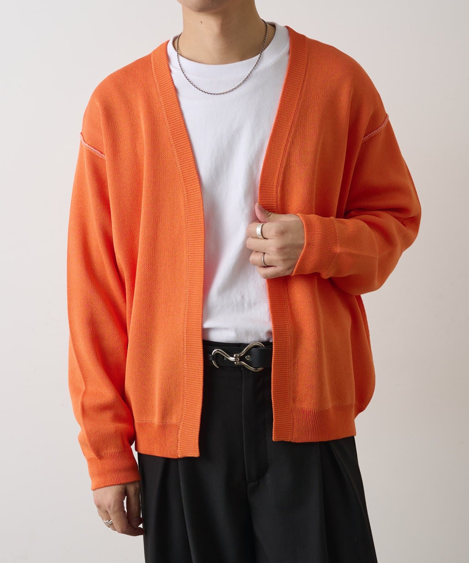 配色で施したアウトリンキングがアクセントになるニットカーディガンです。