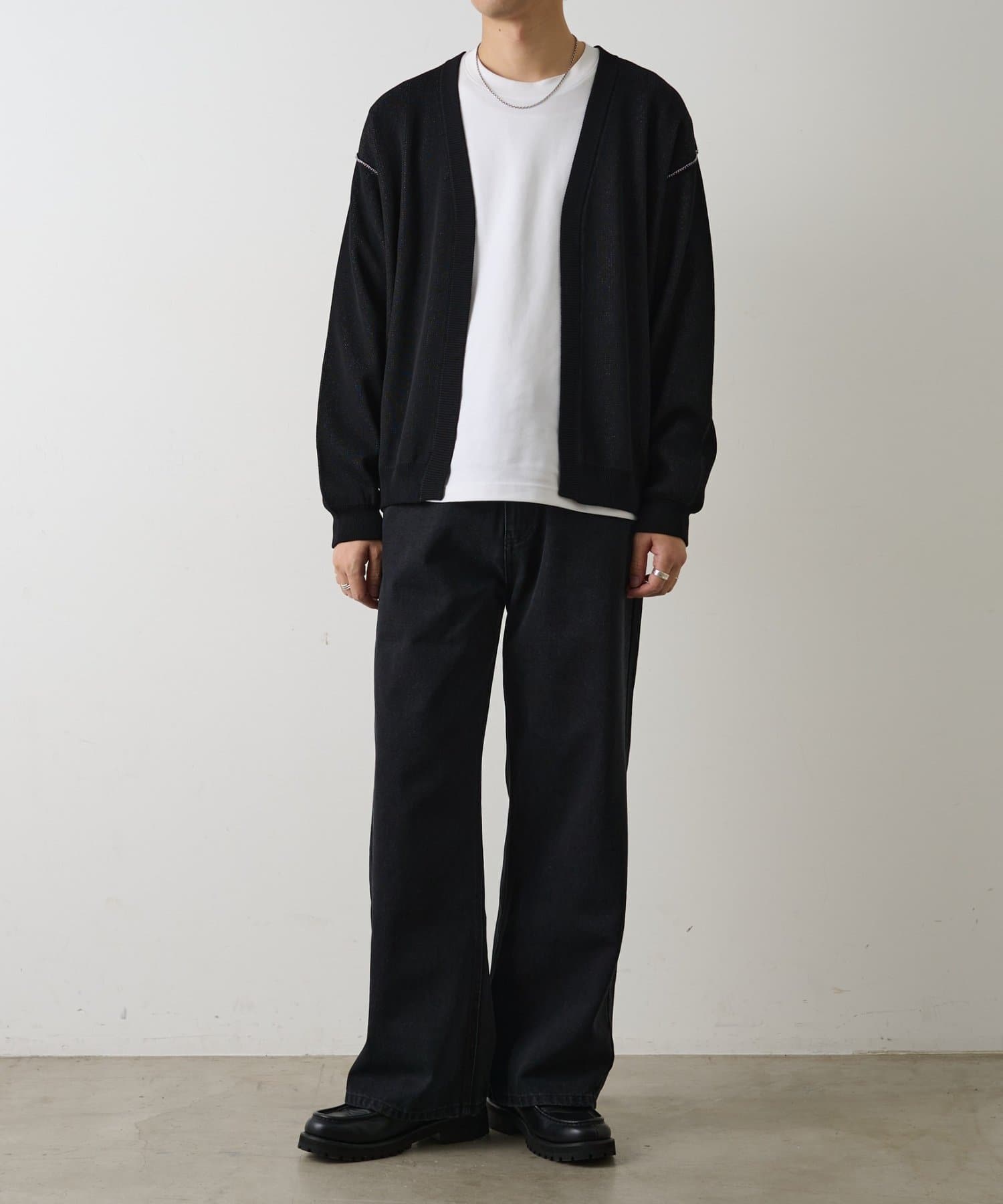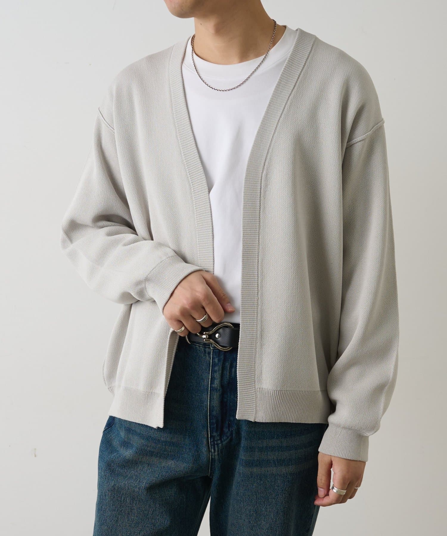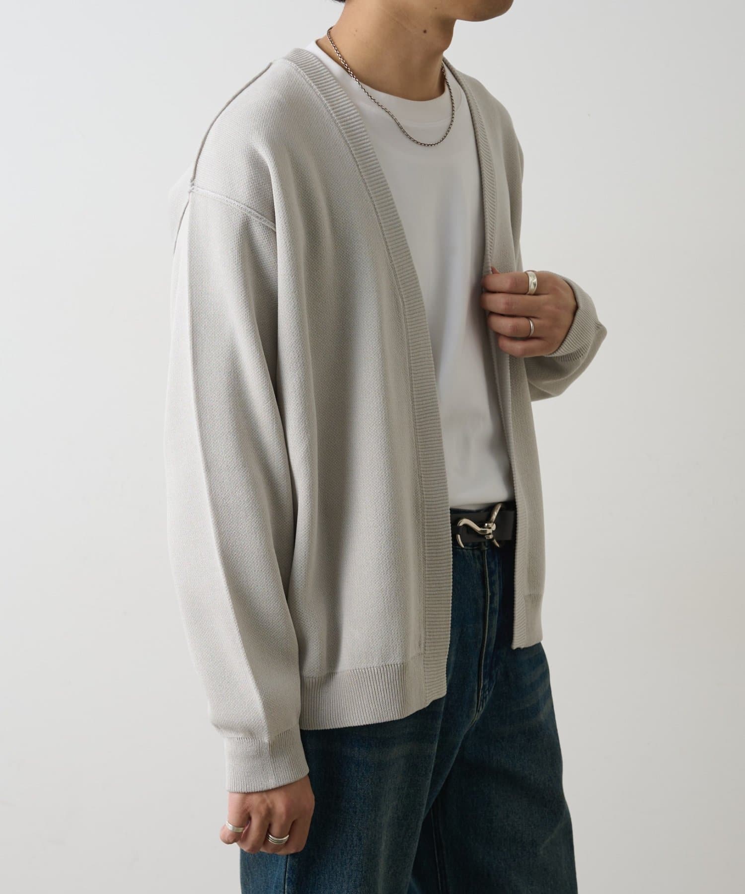 デニムやスラックスなど幅広いボトムと相性が良く、シンプル過ぎないデザインでコーディネートのアクセントになるカーディガンです。