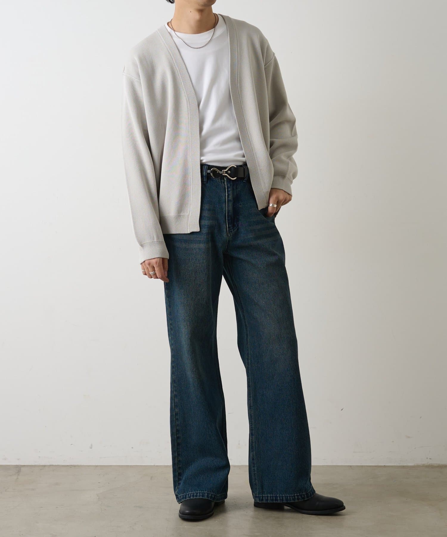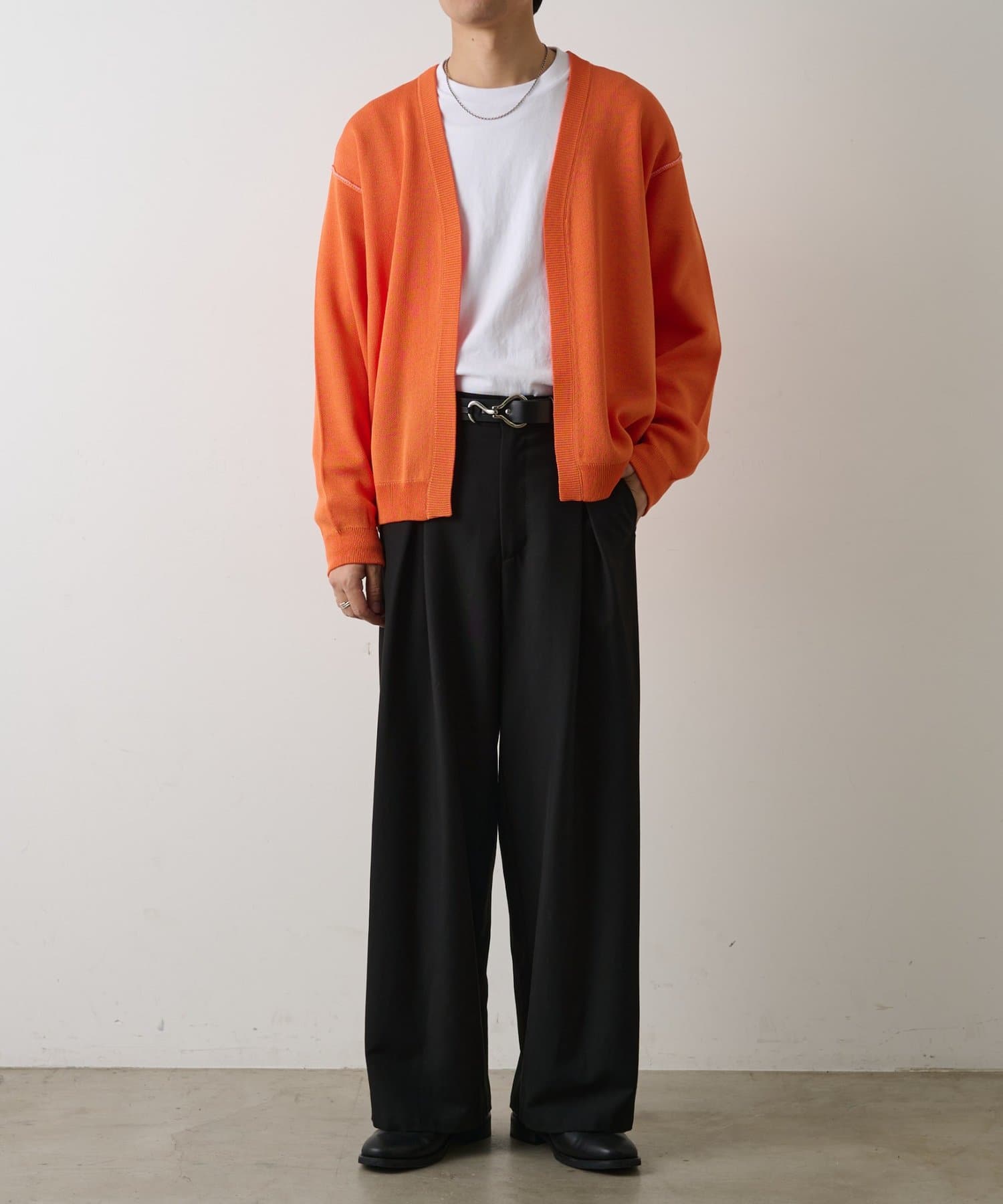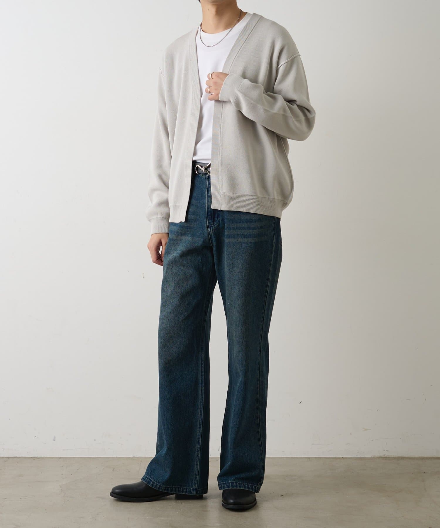 デニムやスラックスなど幅広いボトムと相性が良く、シンプル過ぎないデザインでコーディネートのアクセントになるカーディガンです。