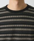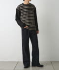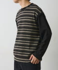 【編み柄で表現したジャガードボーダー素材を大胆にドッキングしたロンT】