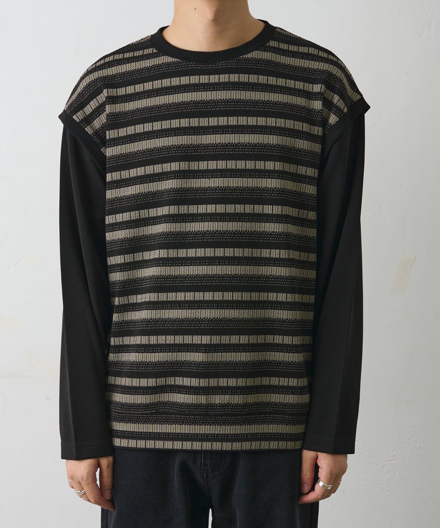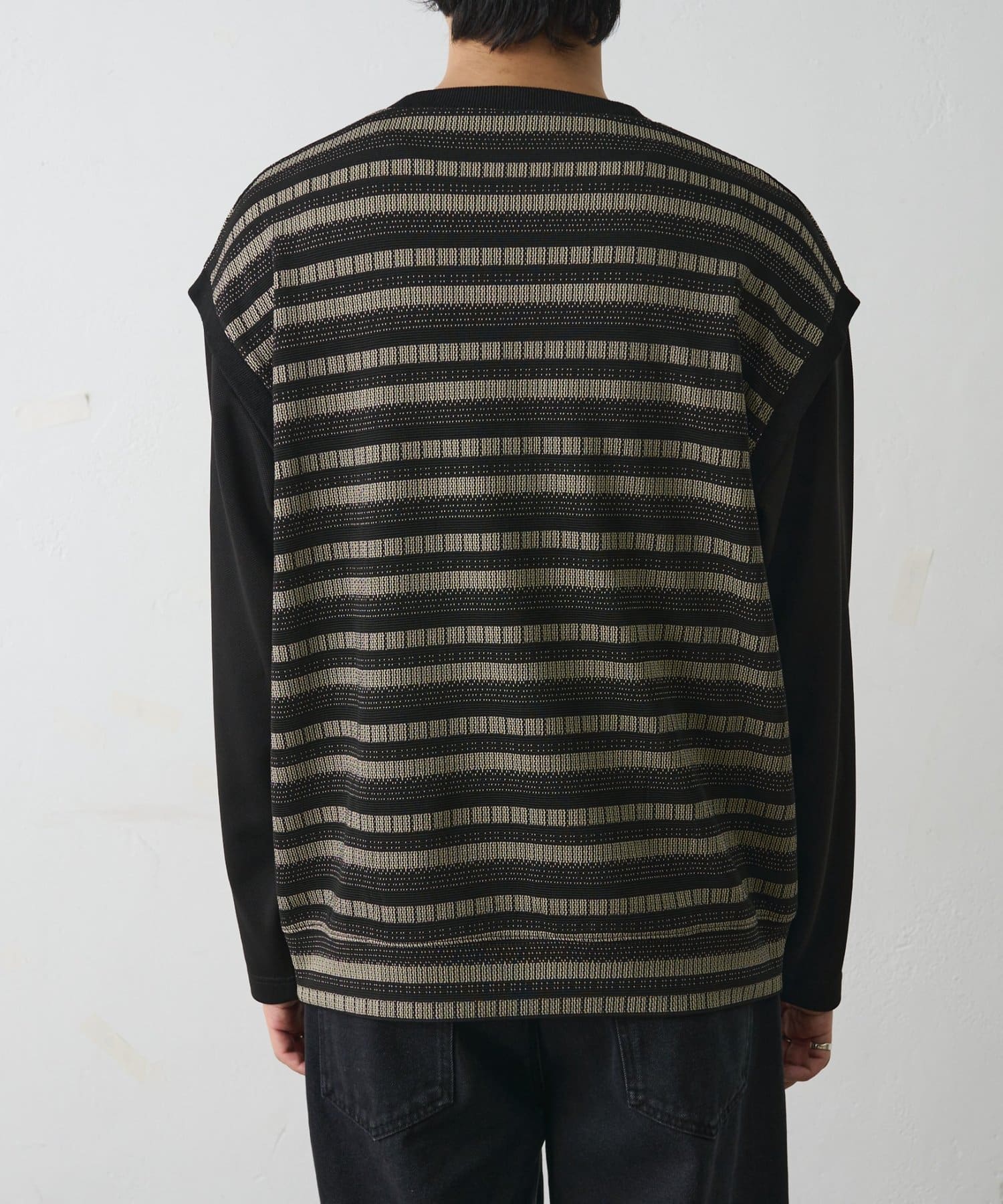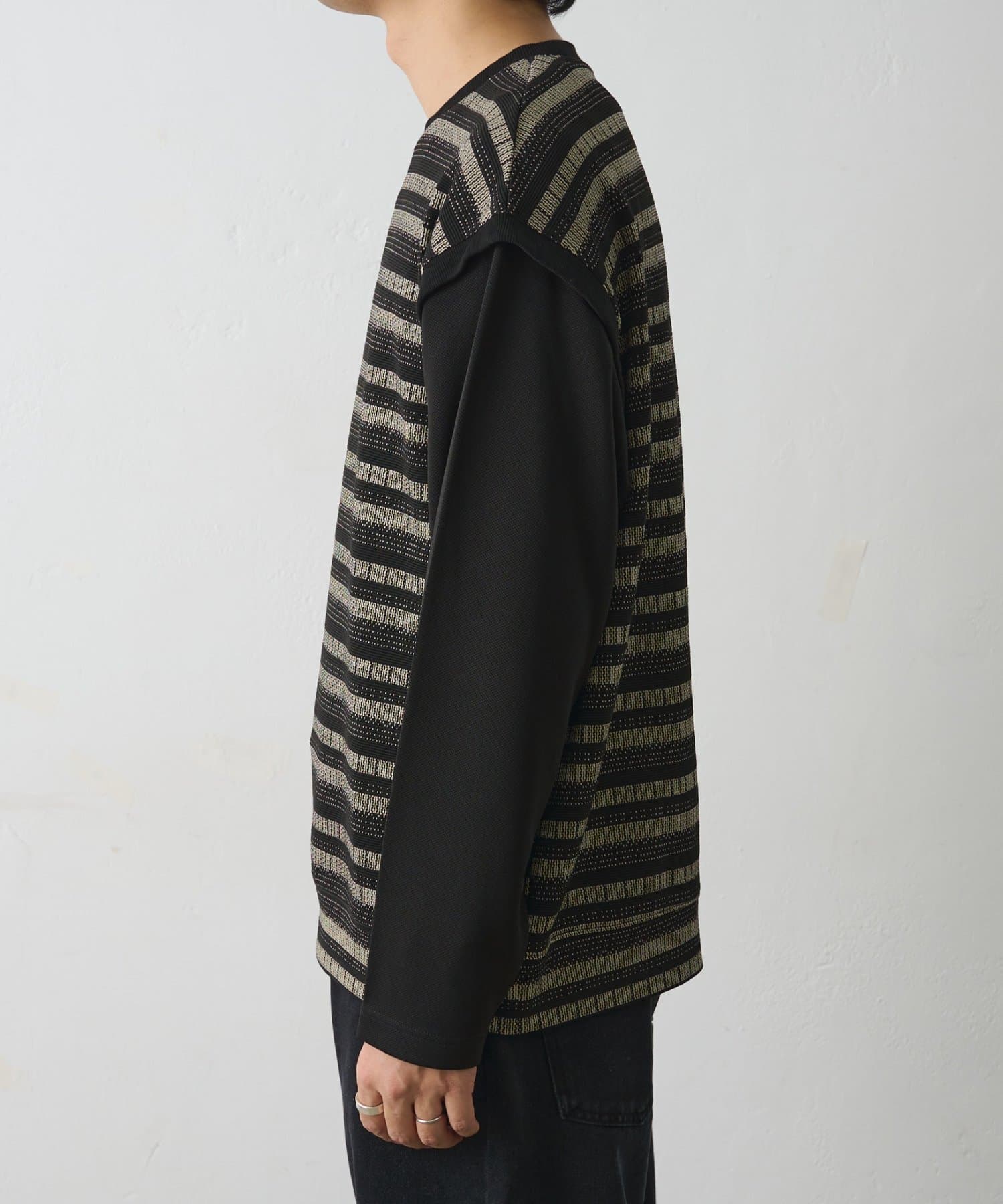 ジャガードボーダードッキング長袖TEE