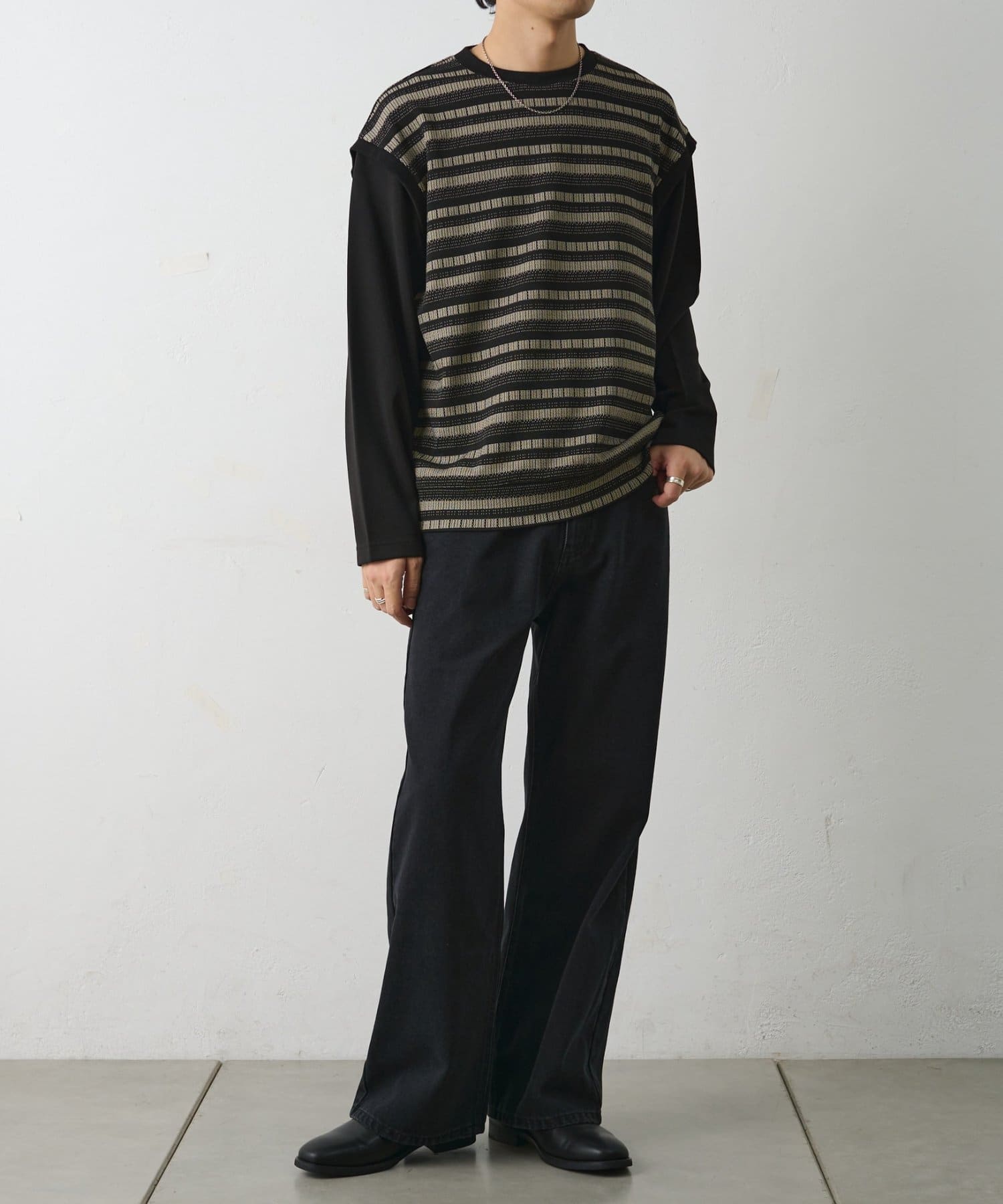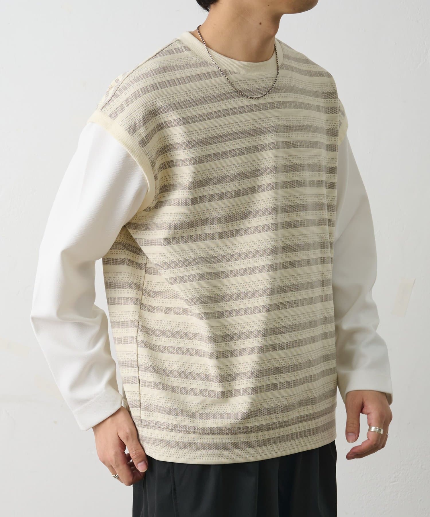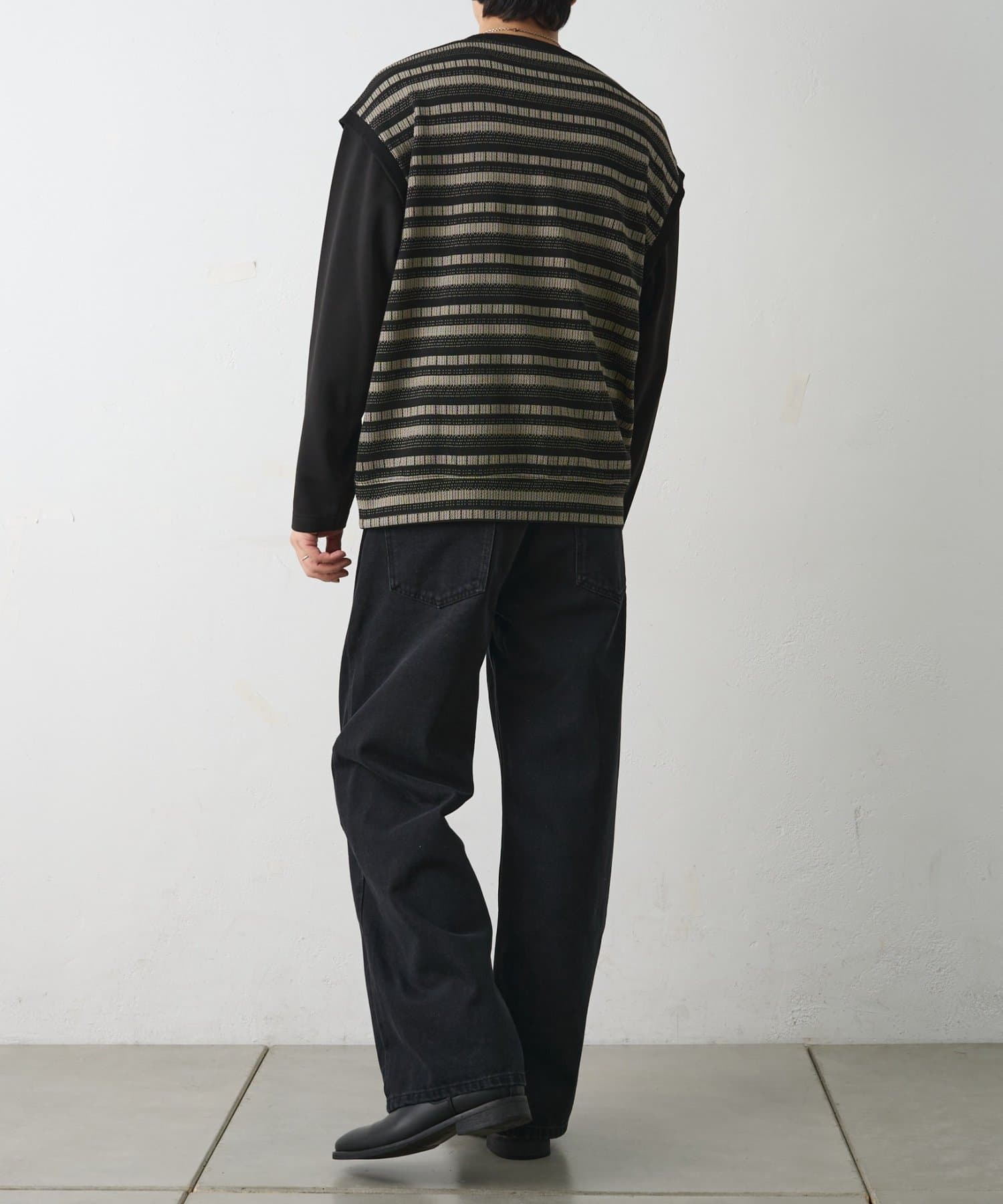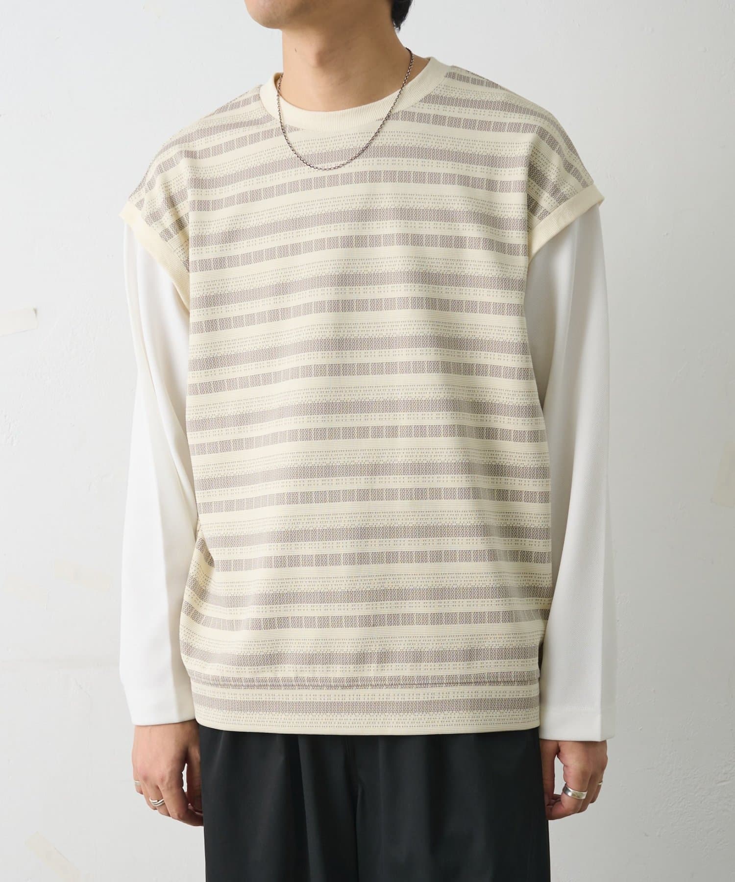 ジャガードボーダードッキング長袖TEE