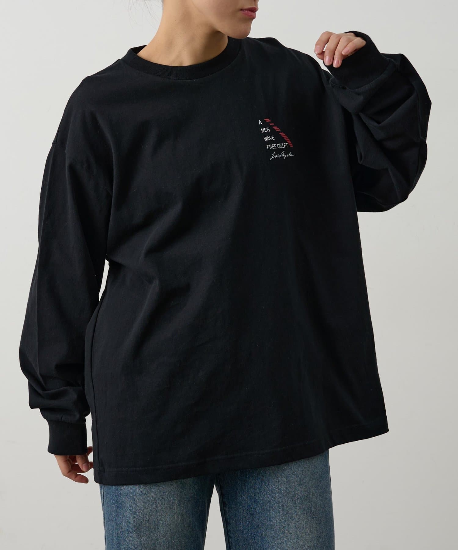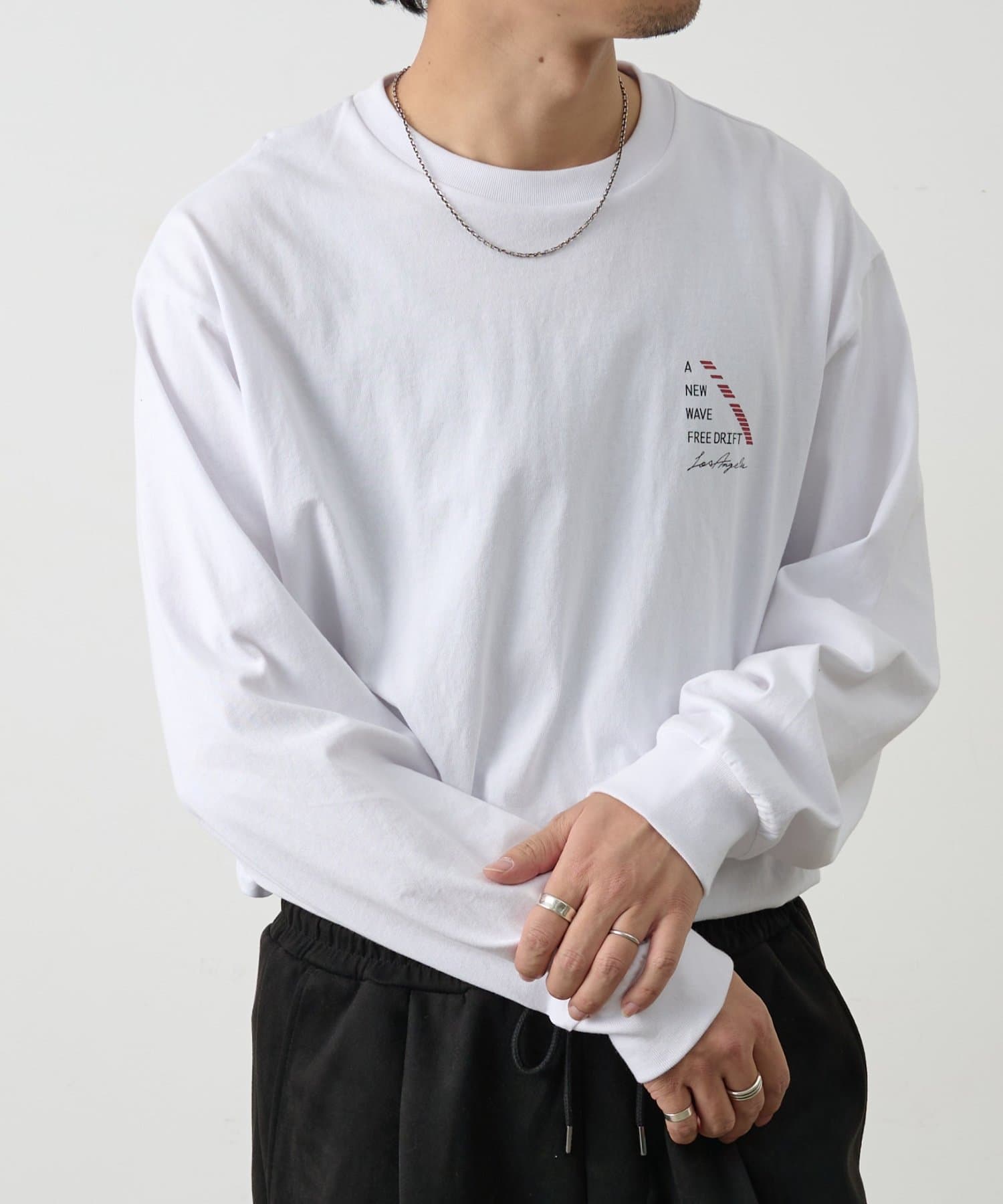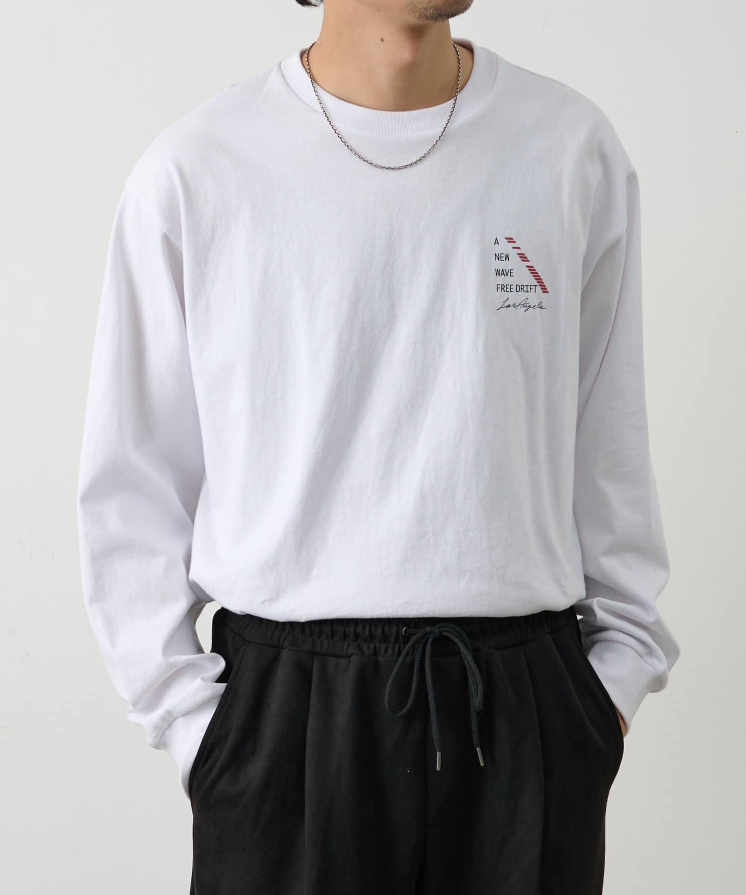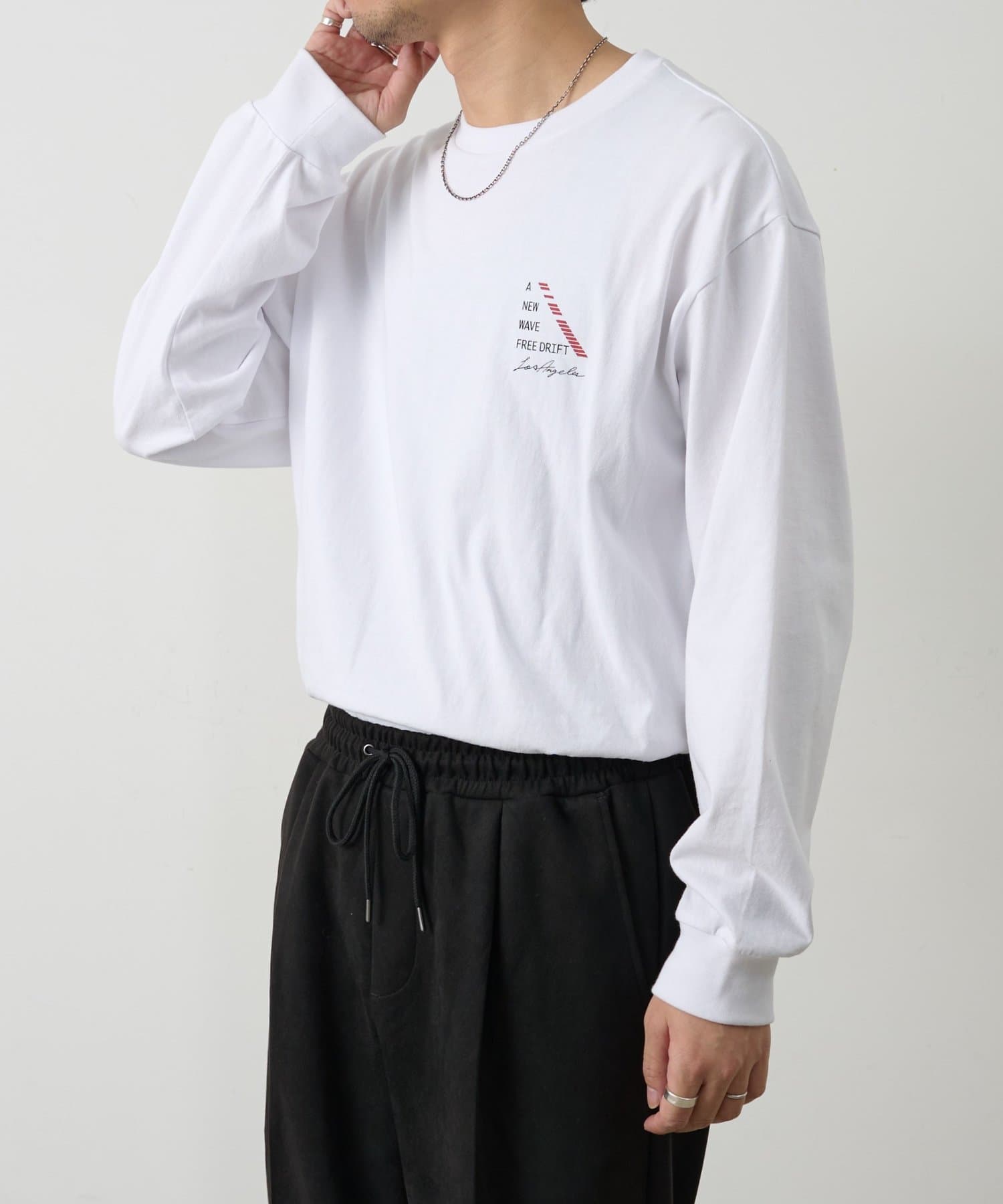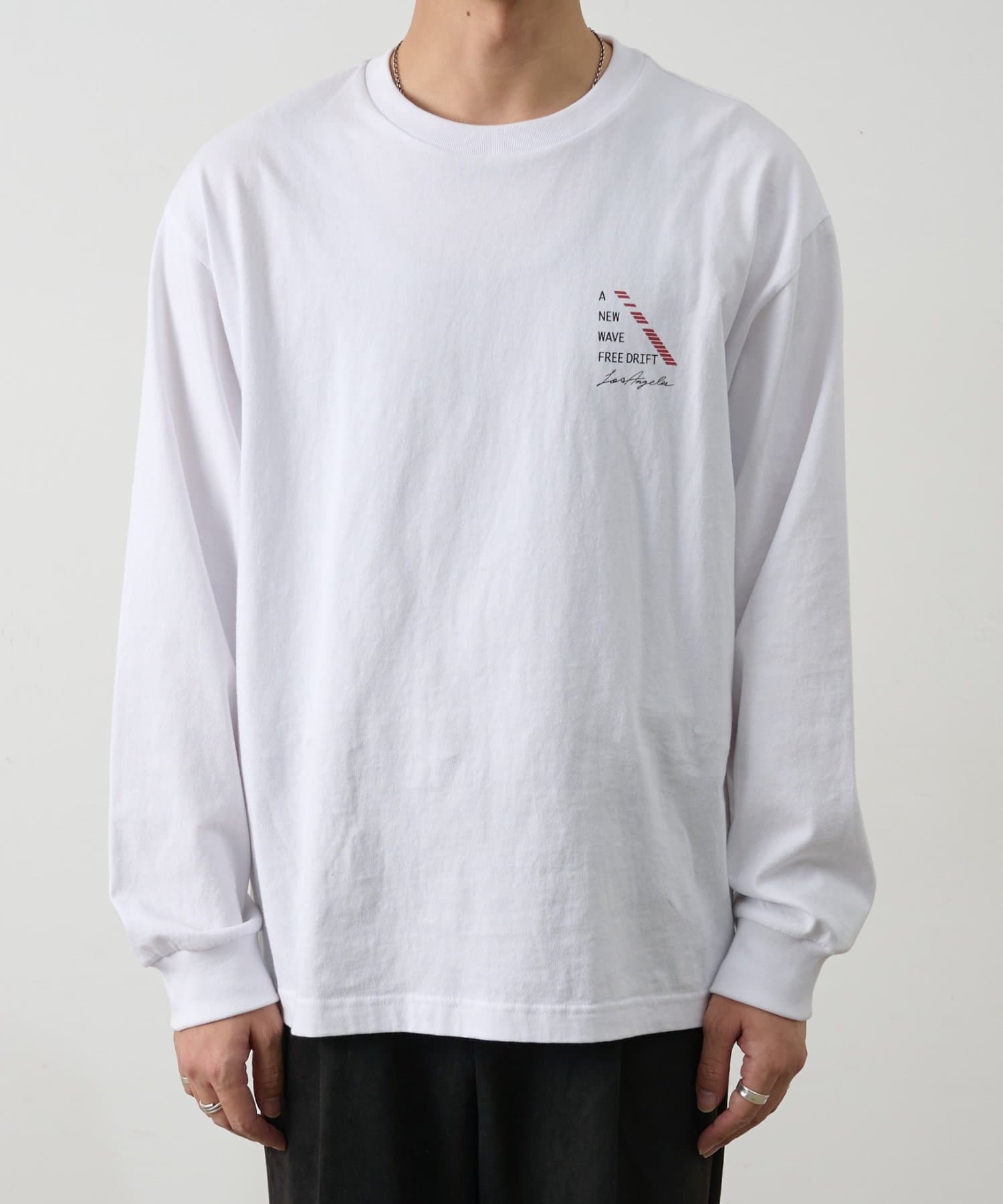 胸元にあしらったNEWWAVEのワンポイントプリントがさりげなく主張するロングスリーブTシャツです。