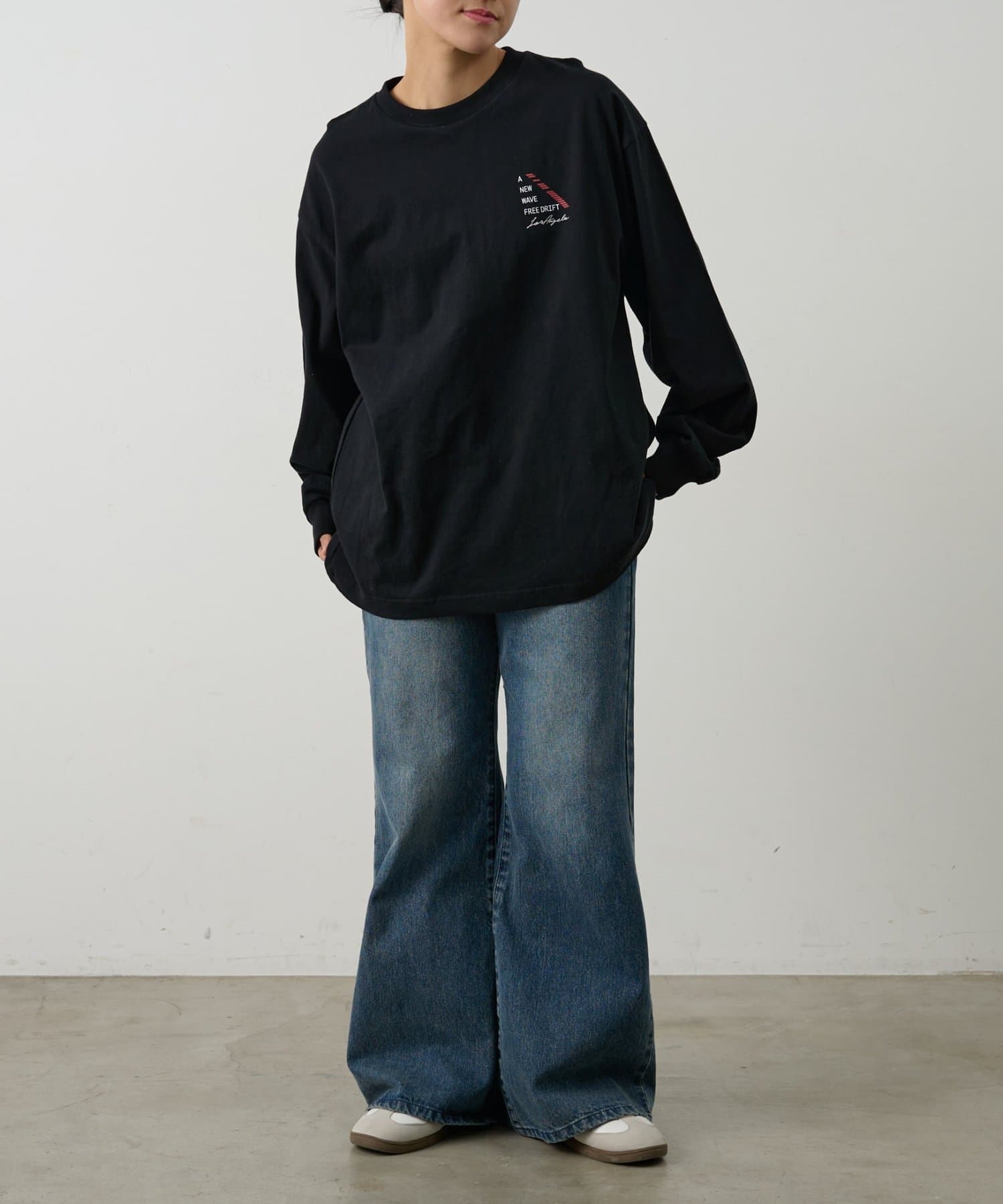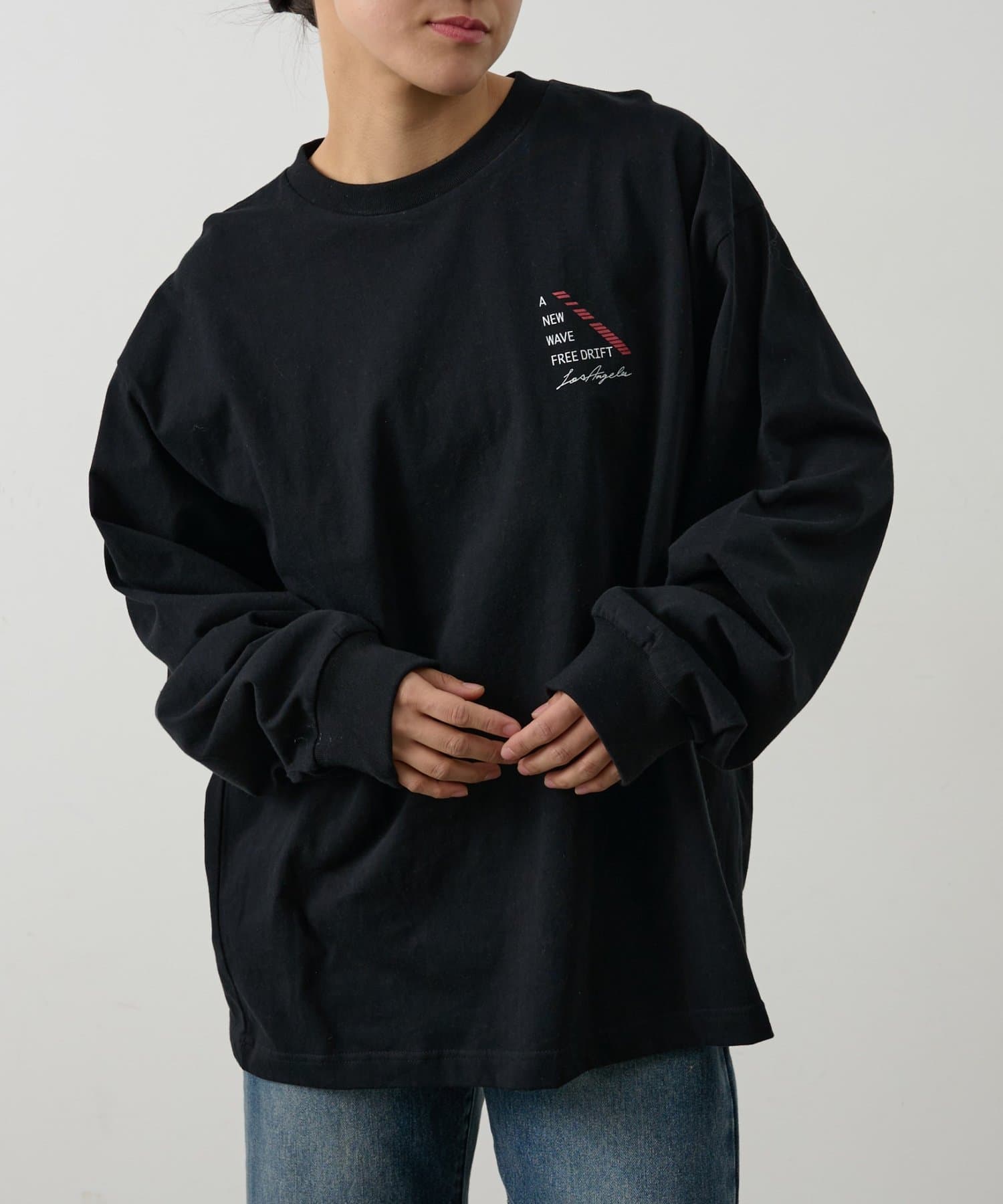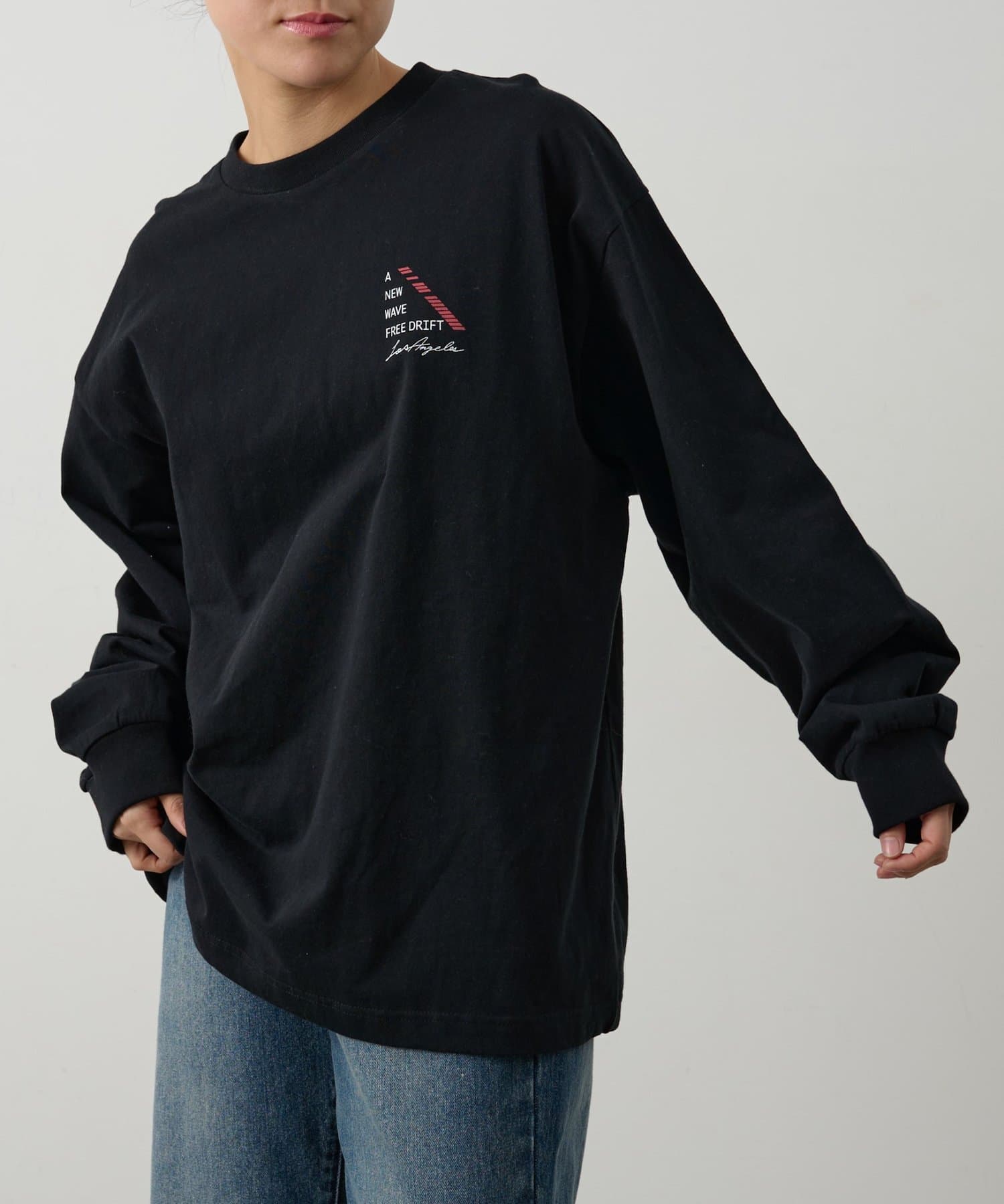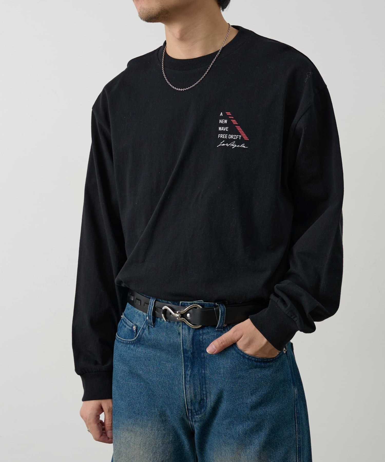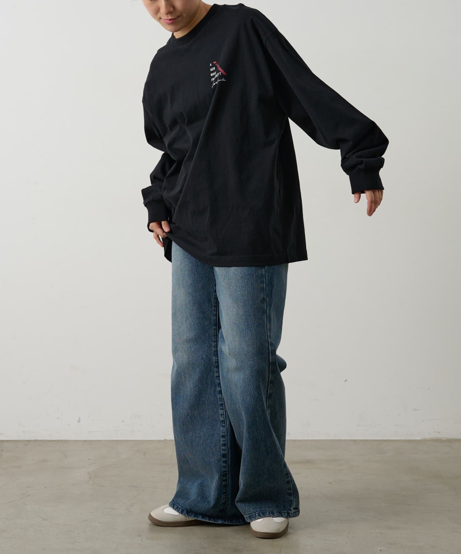 胸元にあしらったNEWWAVEのワンポイントプリントがさりげなく主張するロングスリーブTシャツです。
