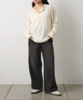 伸縮性のあるテレコリブ素材を使用したヘンリーネックトップスです。