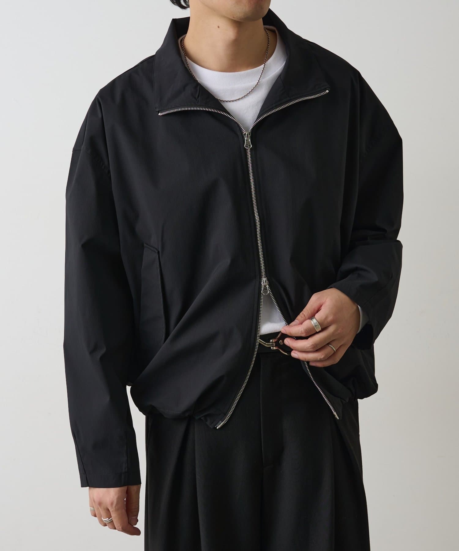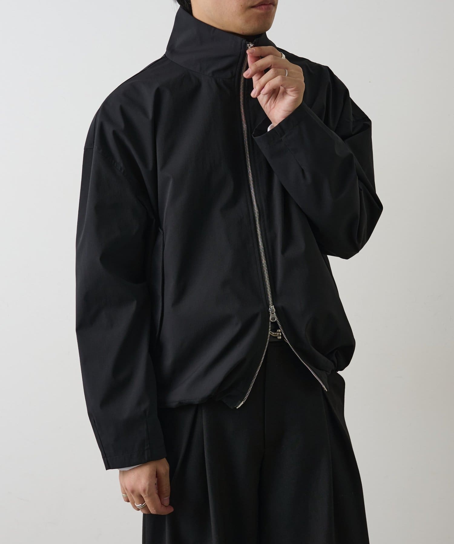 スタントネックデザインとダブルジップでトレンドを取り入れられるブルゾンです。
