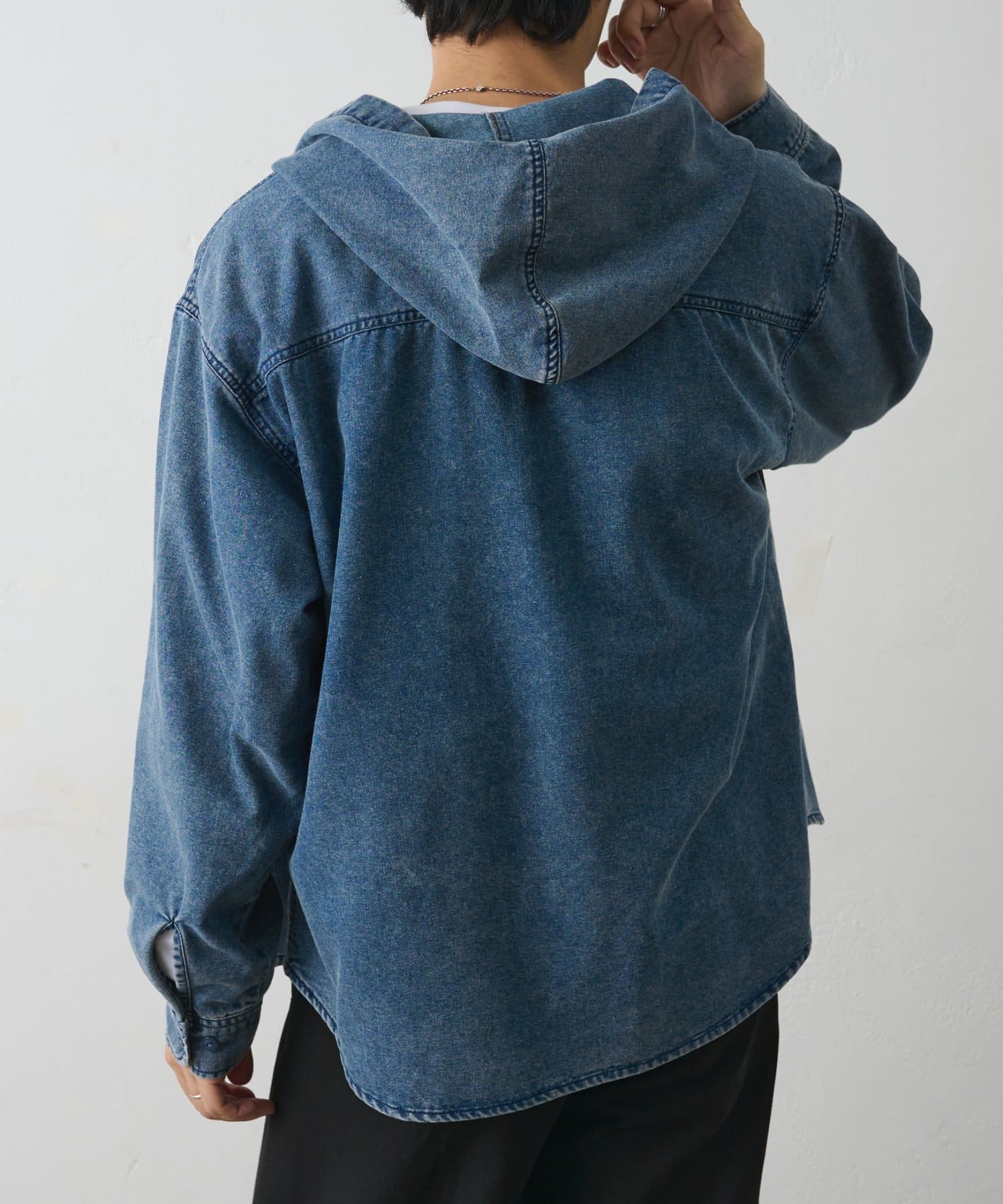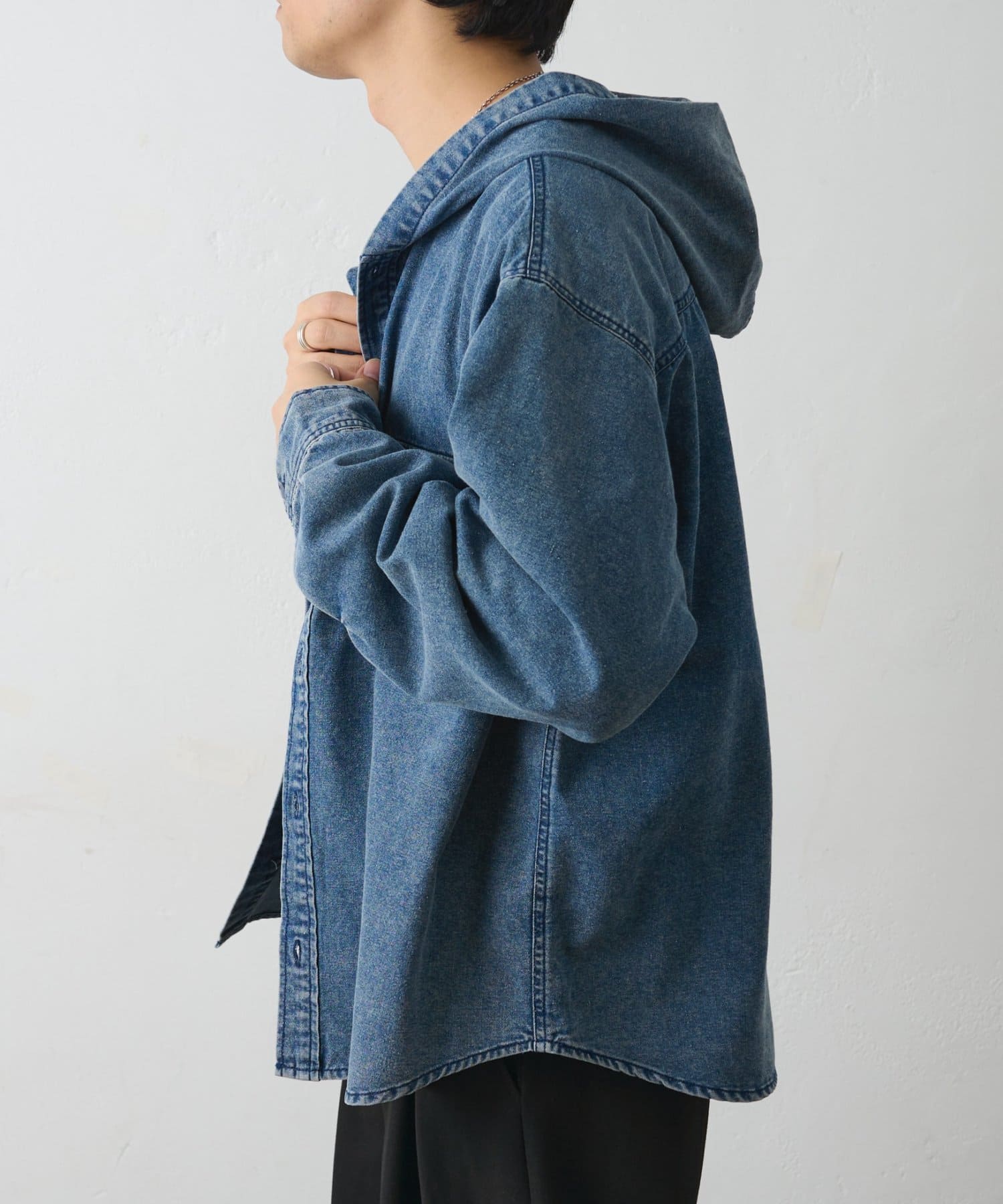 デニムフードシャツ