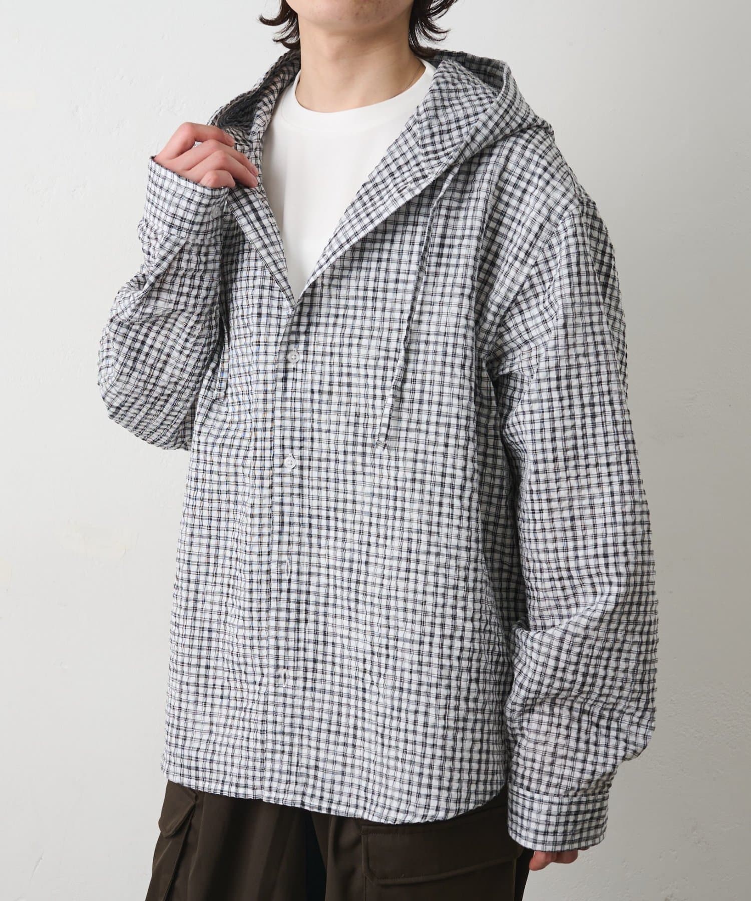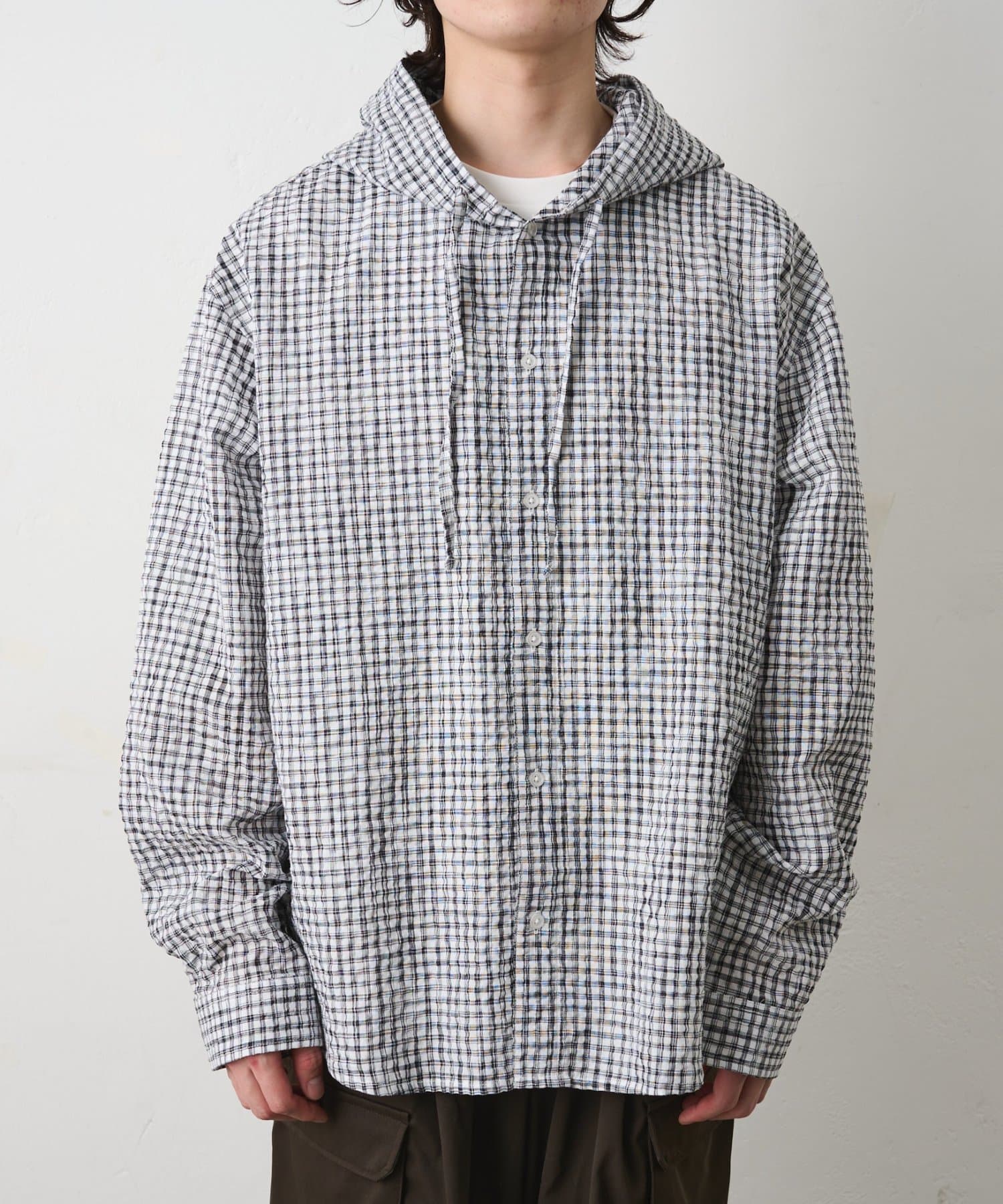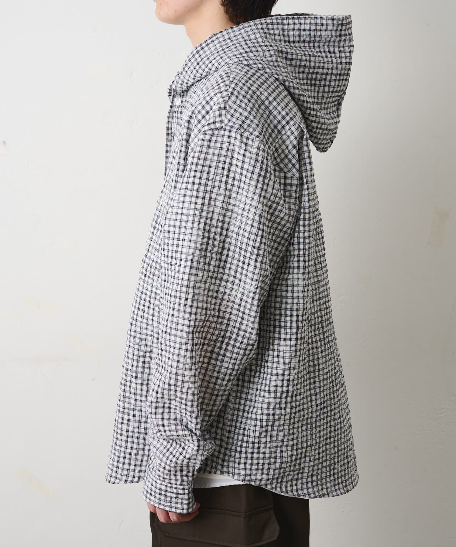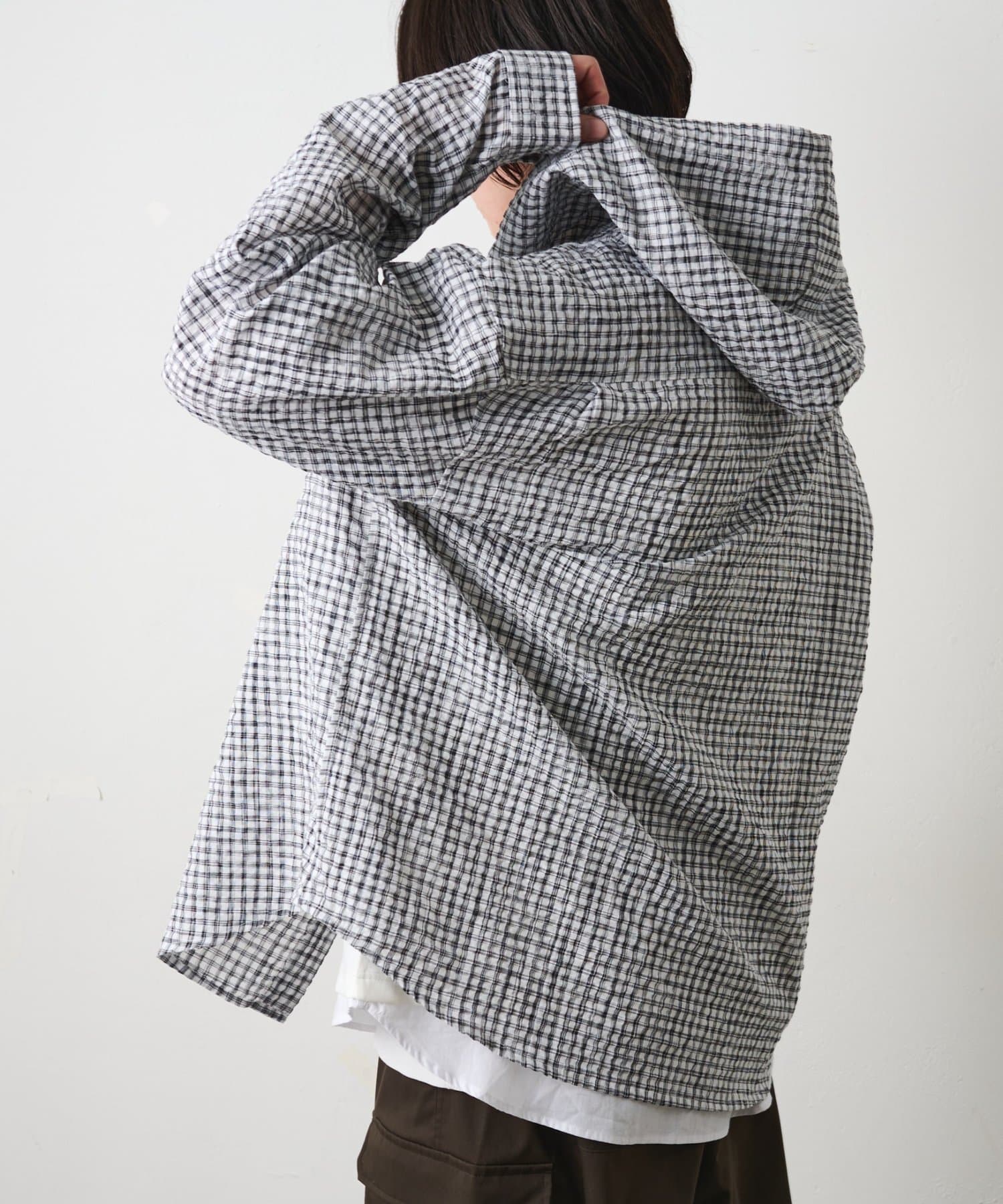 カジュアルながらも程よく主張のあるフード付きデザインと、シャツのきちんと感を組み合わせることで1枚でスタイリングが決まる存在感のあるデザインに仕上げました。年齢を問わず取り入れやすい、落ち着いた大人カジュアルアイテムです。