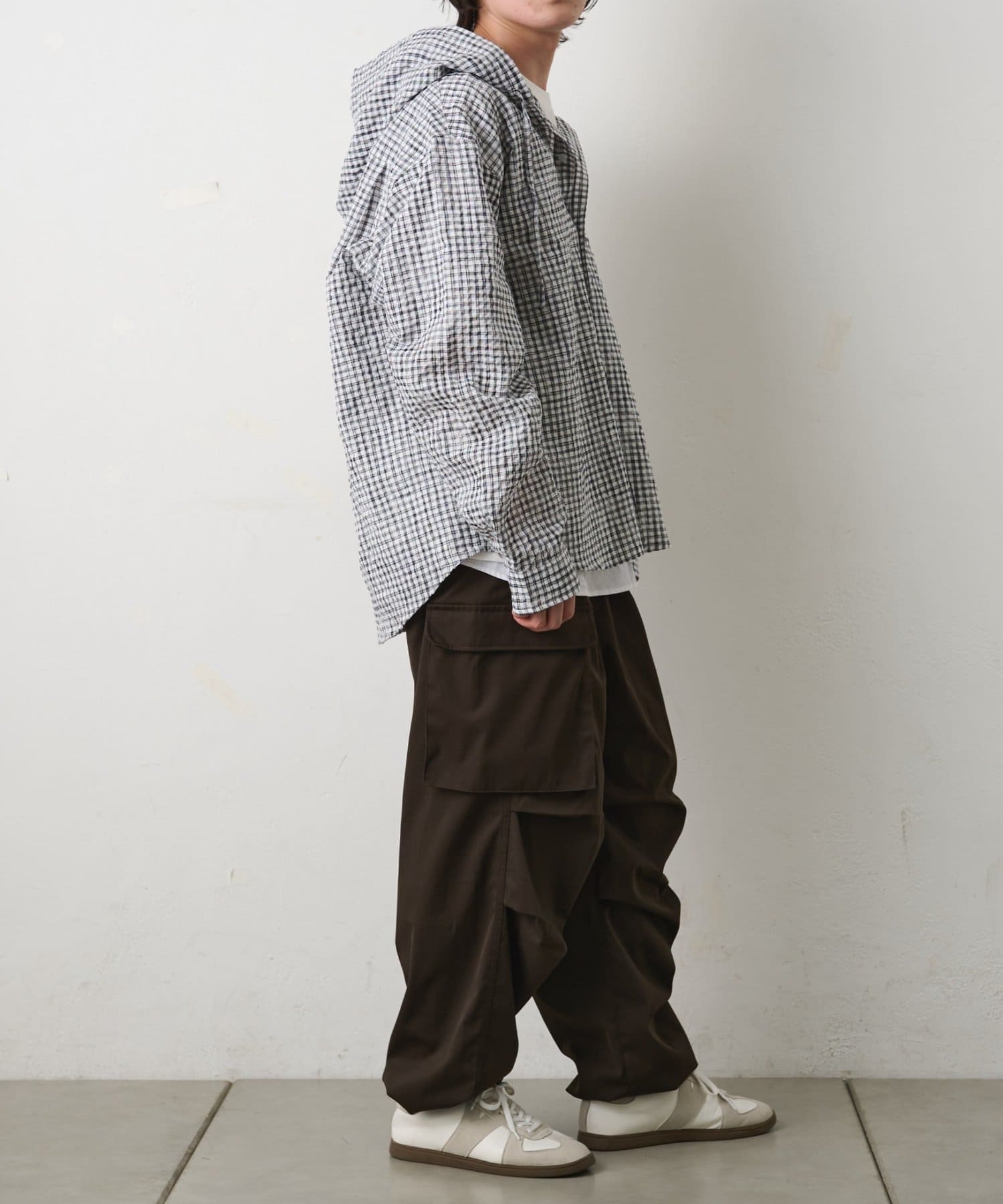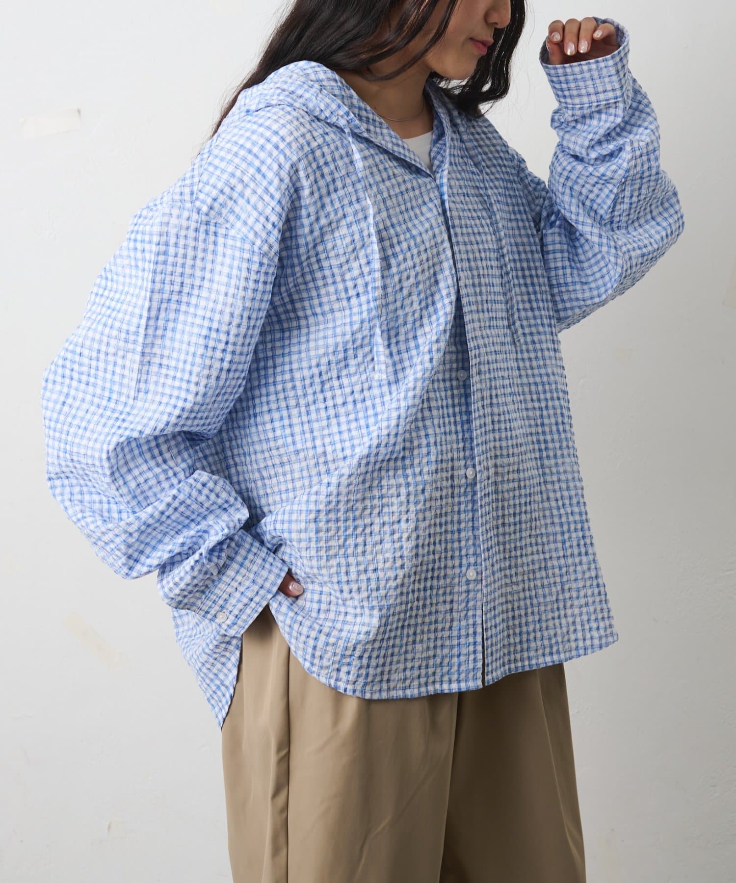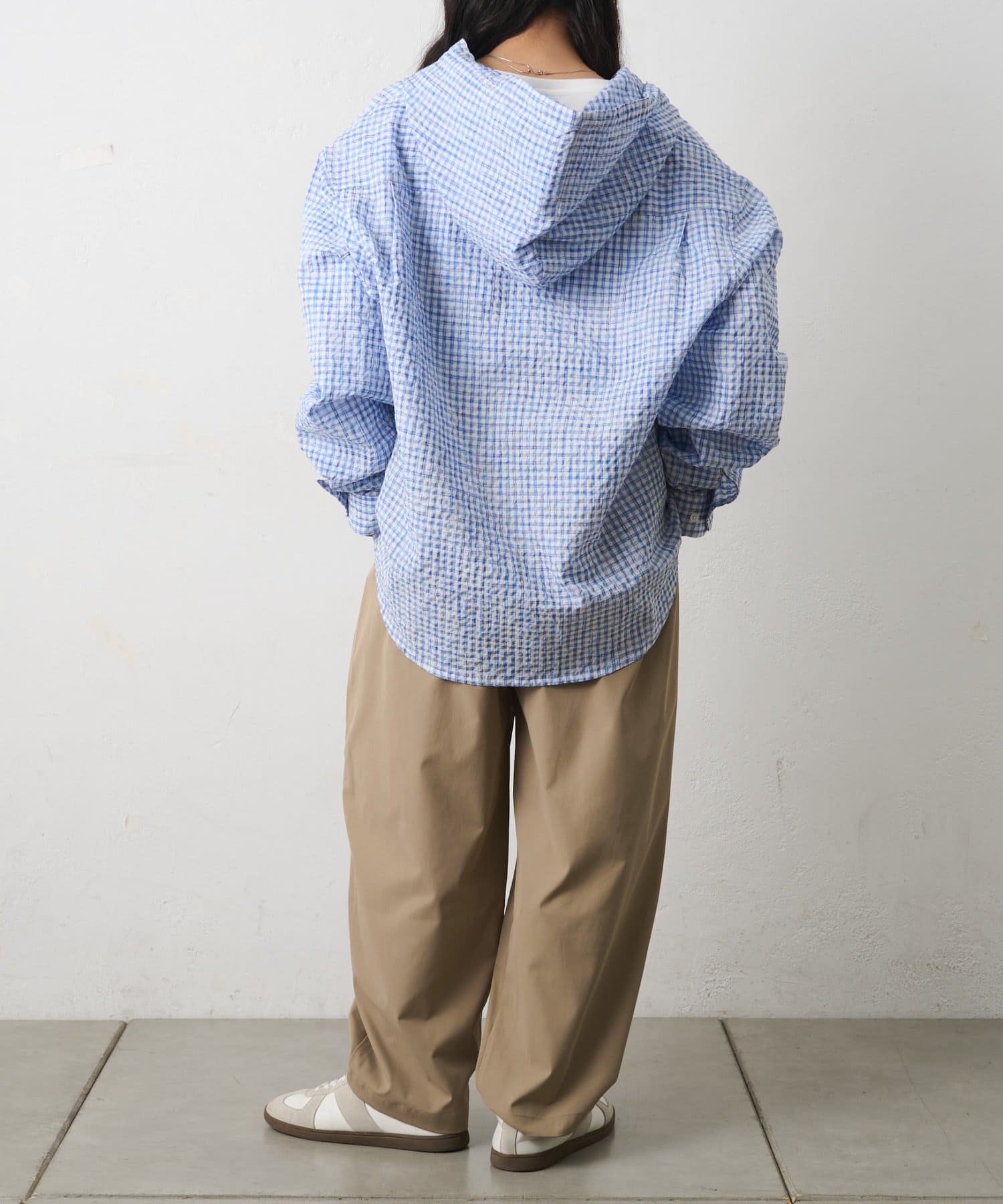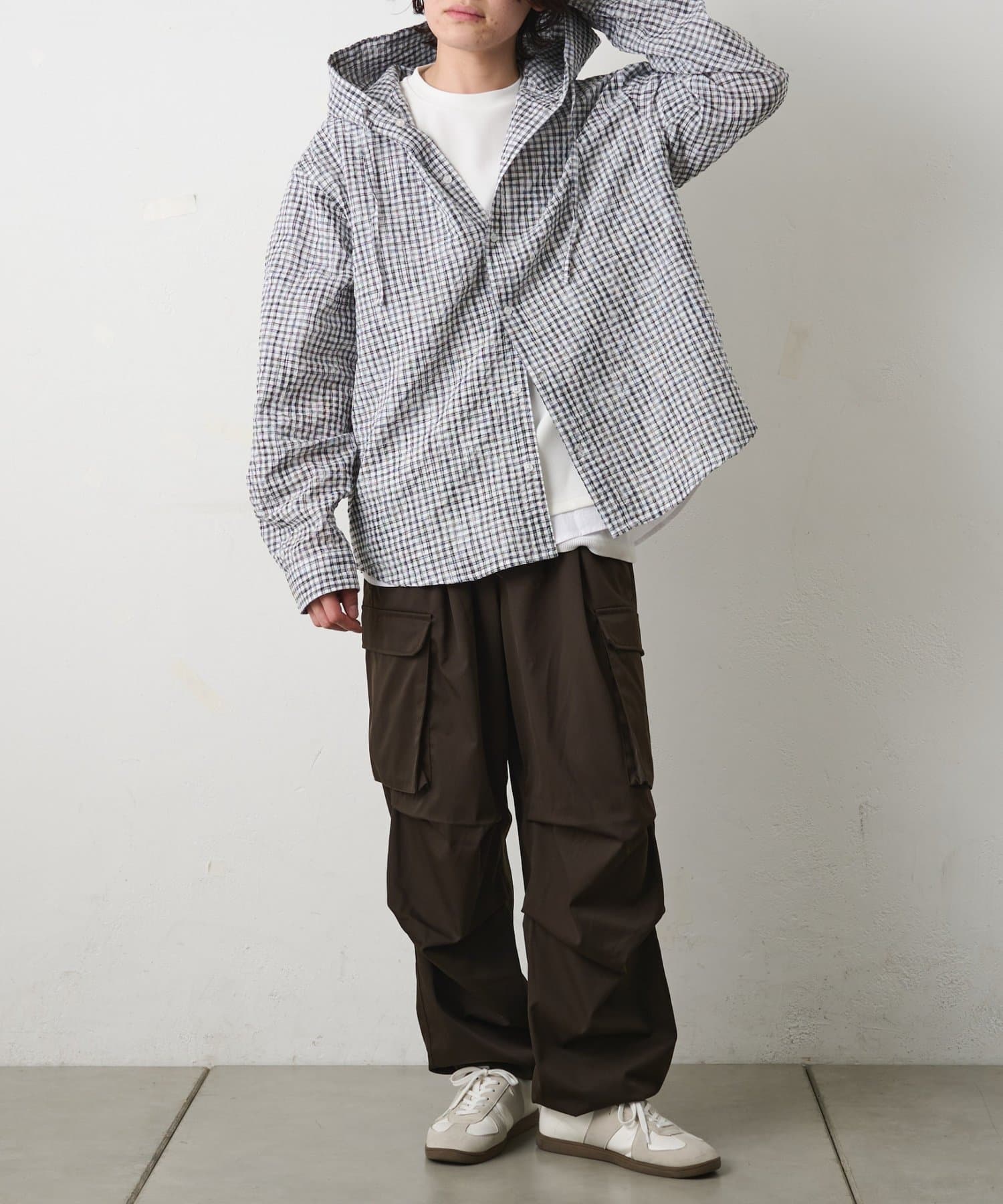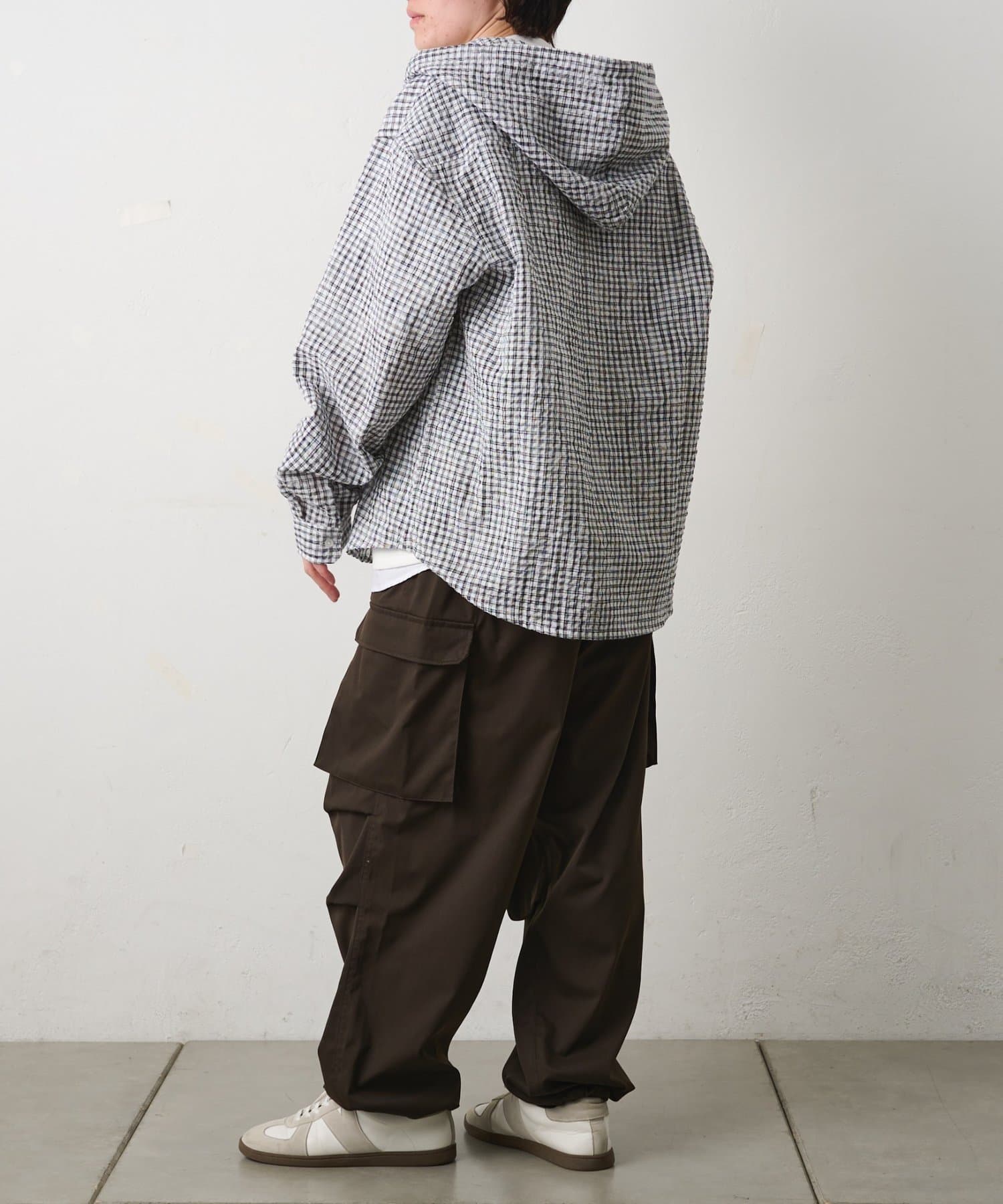 カジュアルながらも程よく主張のあるフード付きデザインと、シャツのきちんと感を組み合わせることで1枚でスタイリングが決まる存在感のあるデザインに仕上げました。年齢を問わず取り入れやすい、落ち着いた大人カジュアルアイテムです。