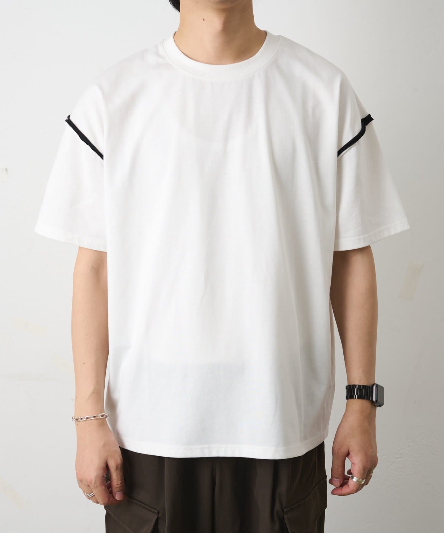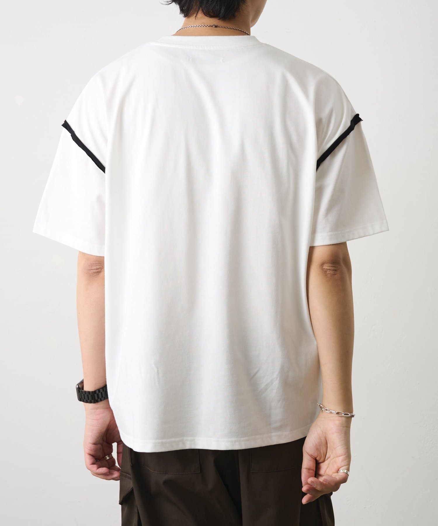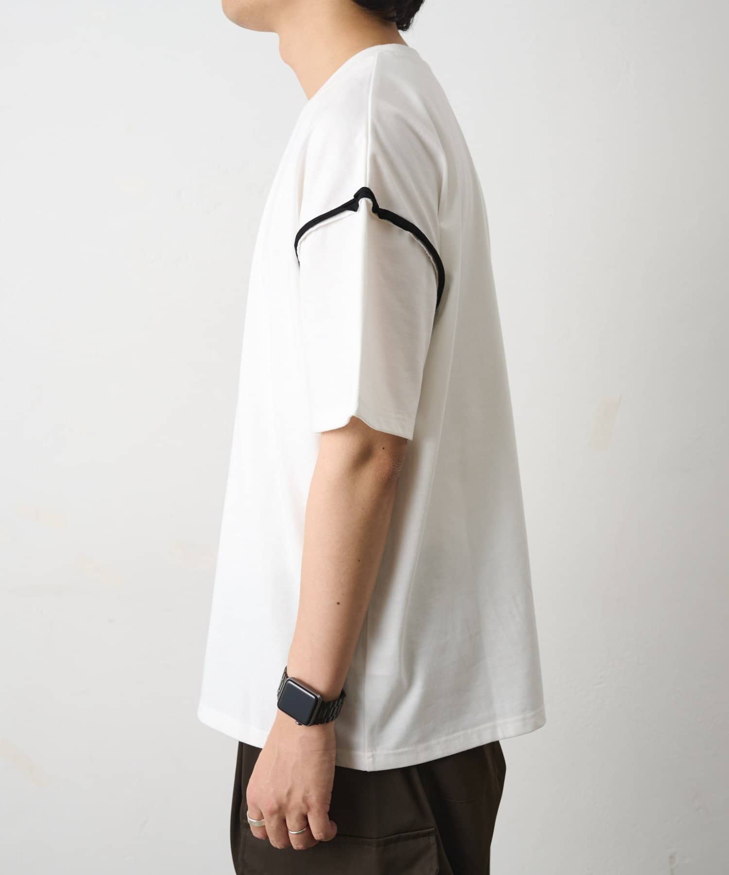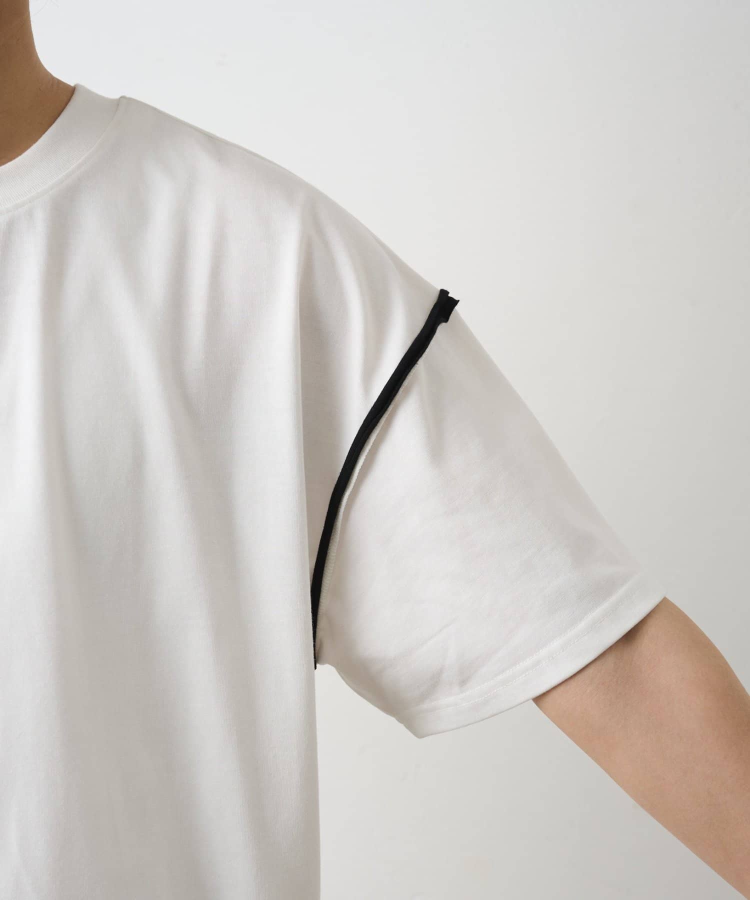 カットオフ配色半袖TEE