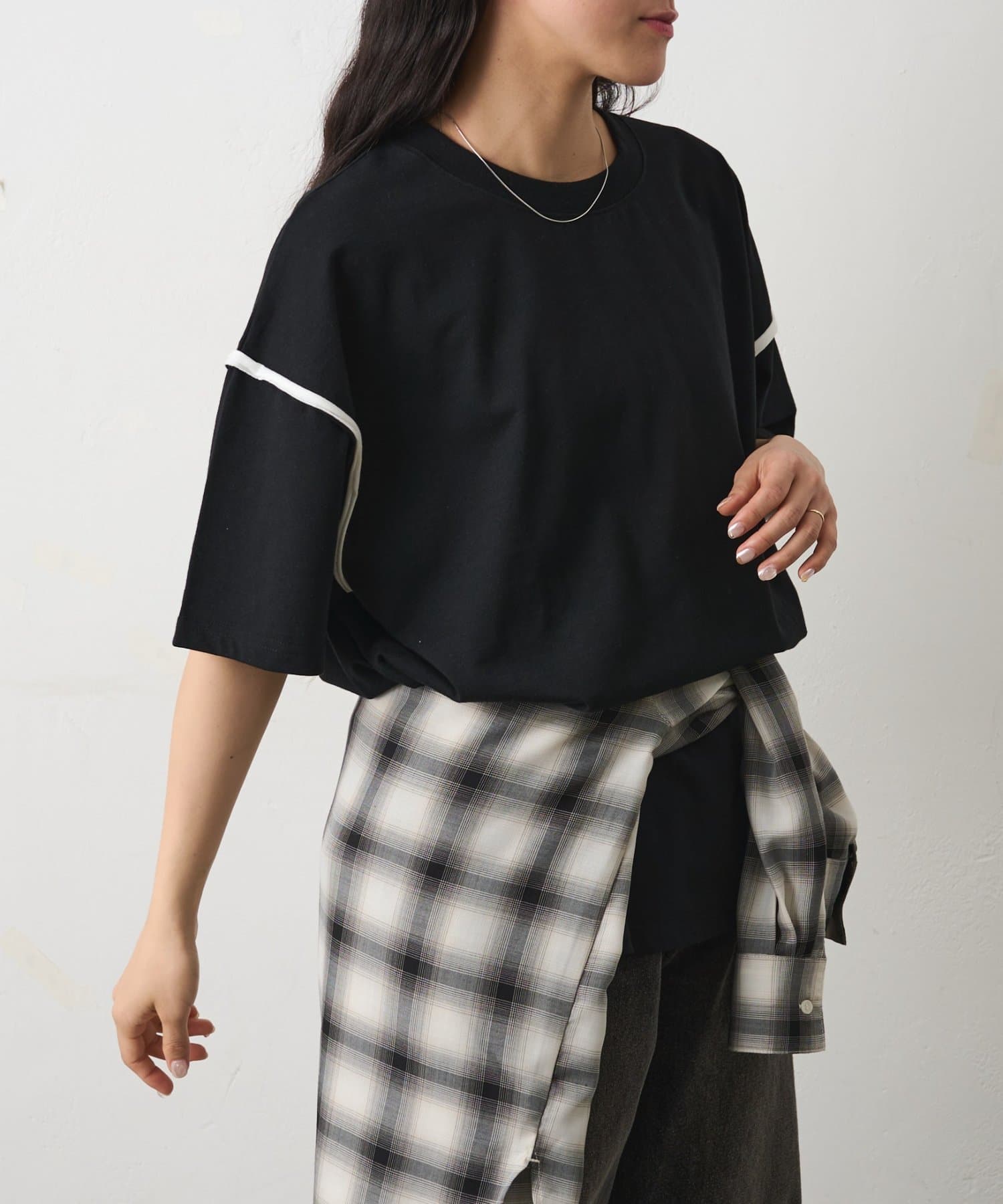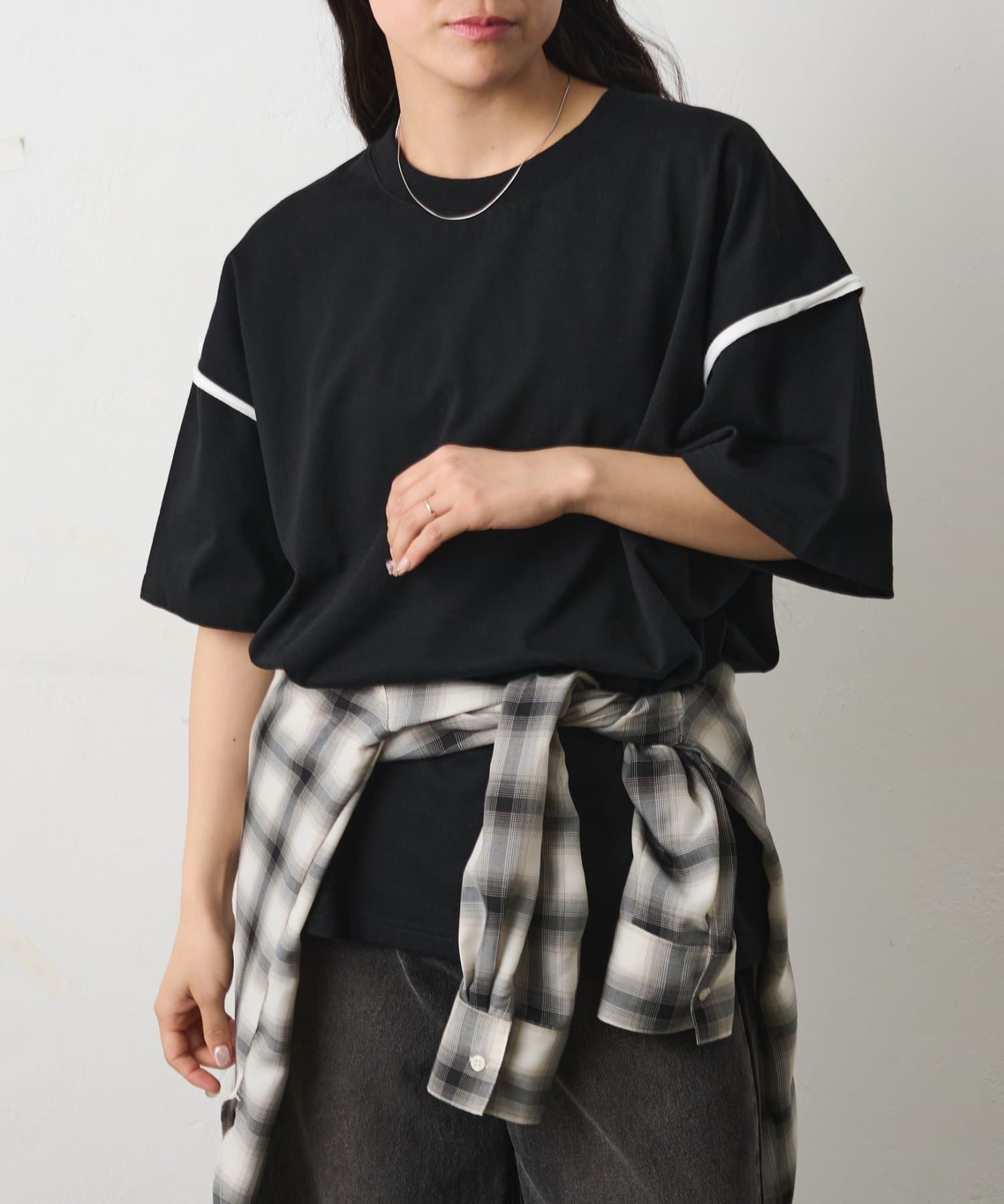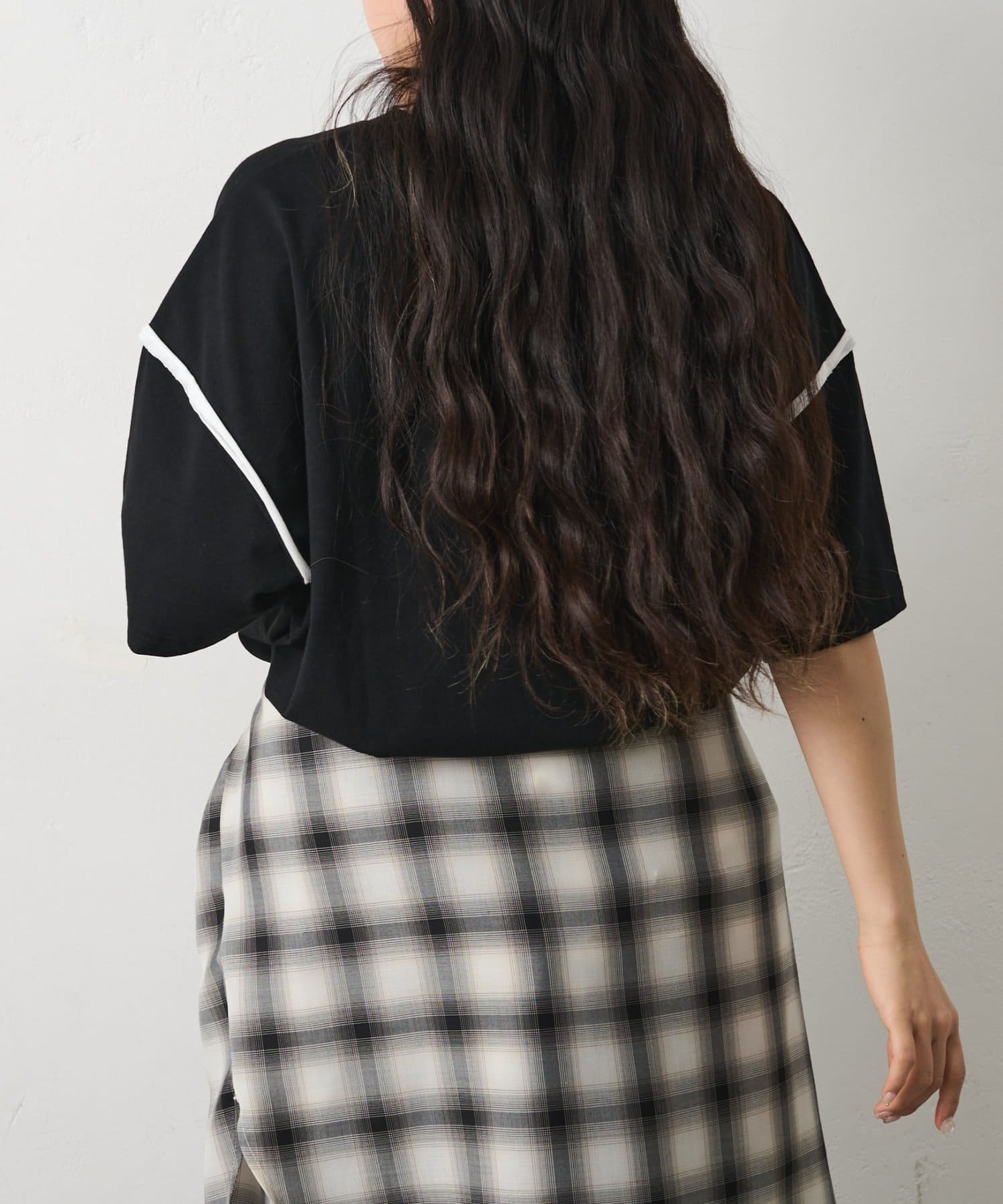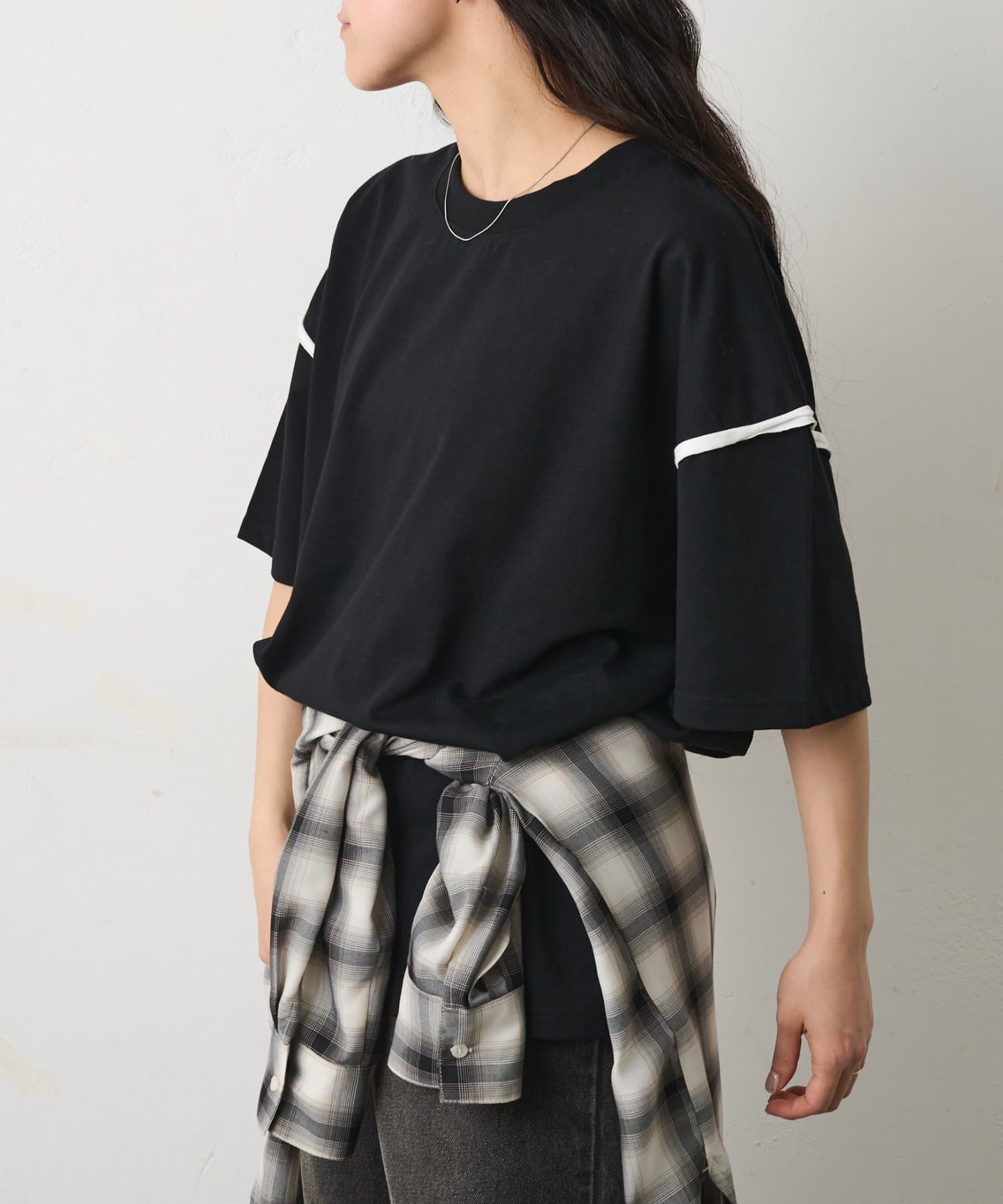 カットオフ配色半袖TEE