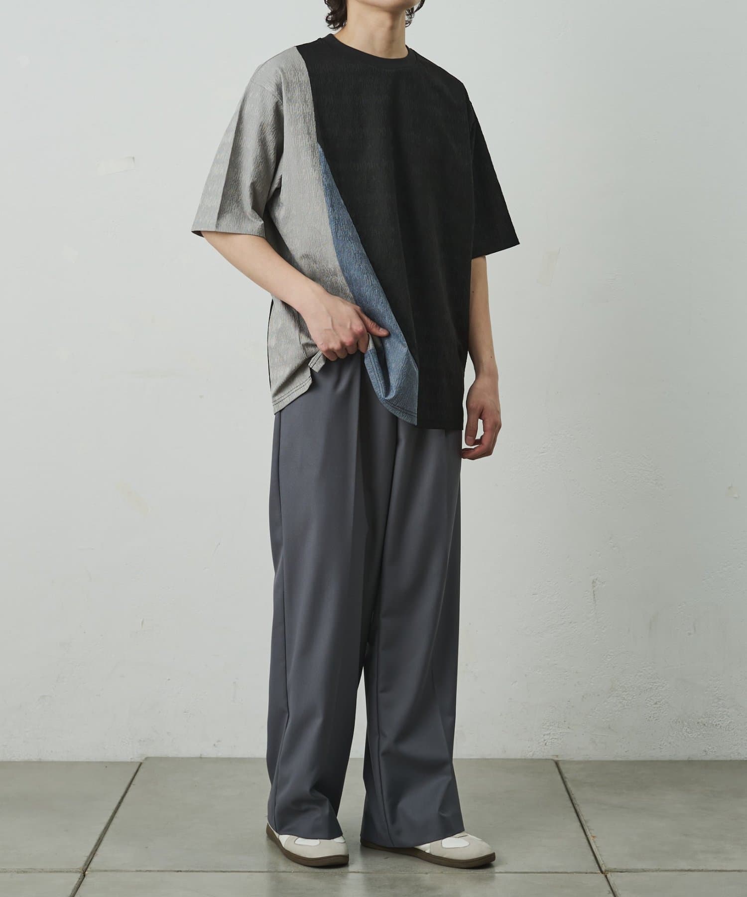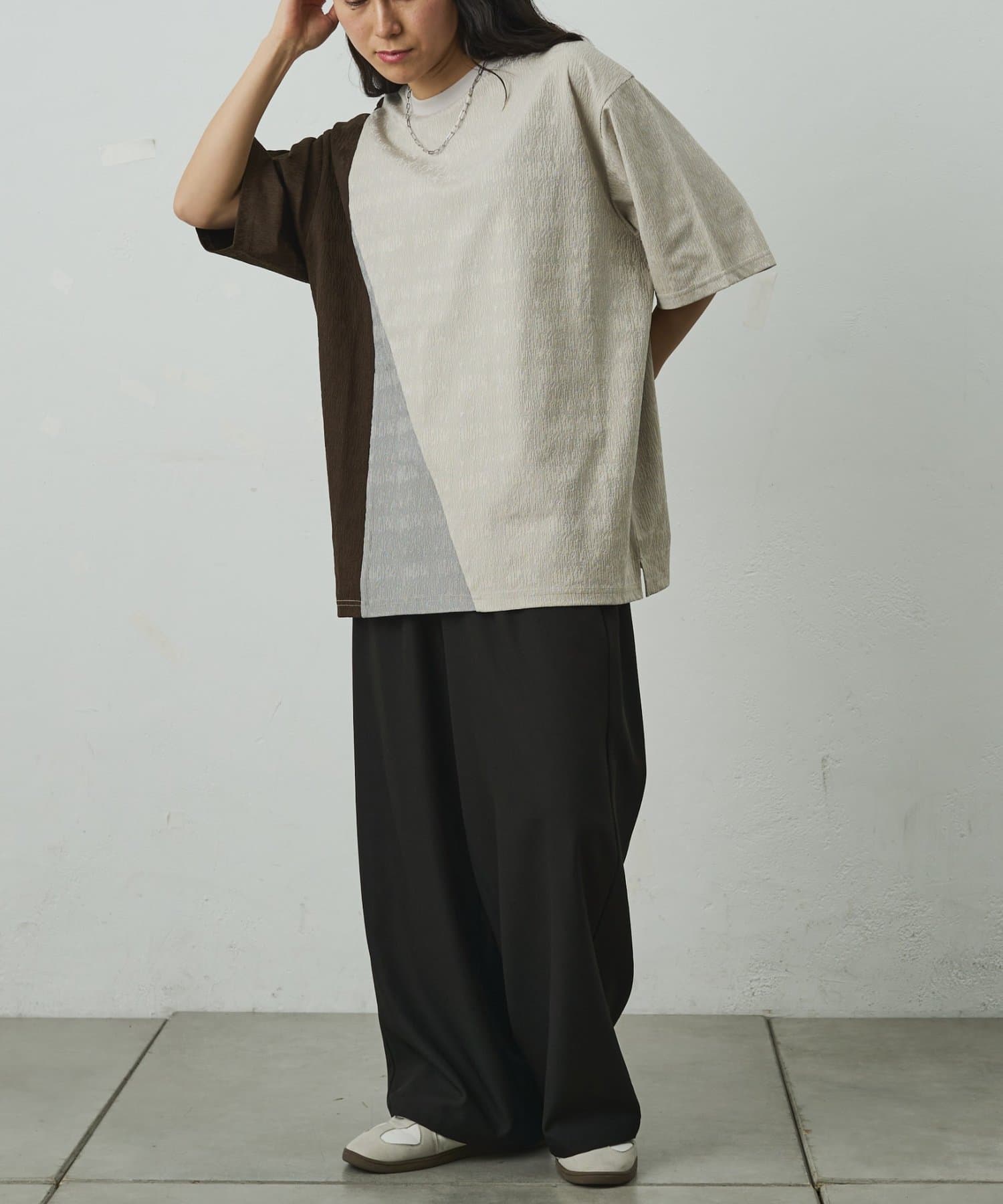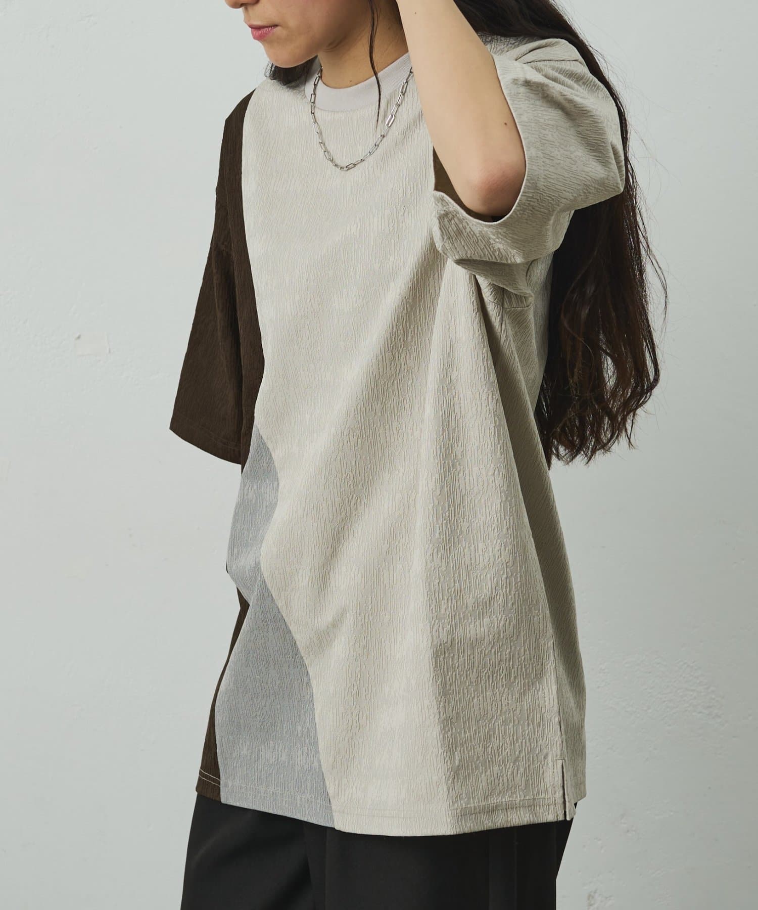 ブライトジャガード切替半袖TEE