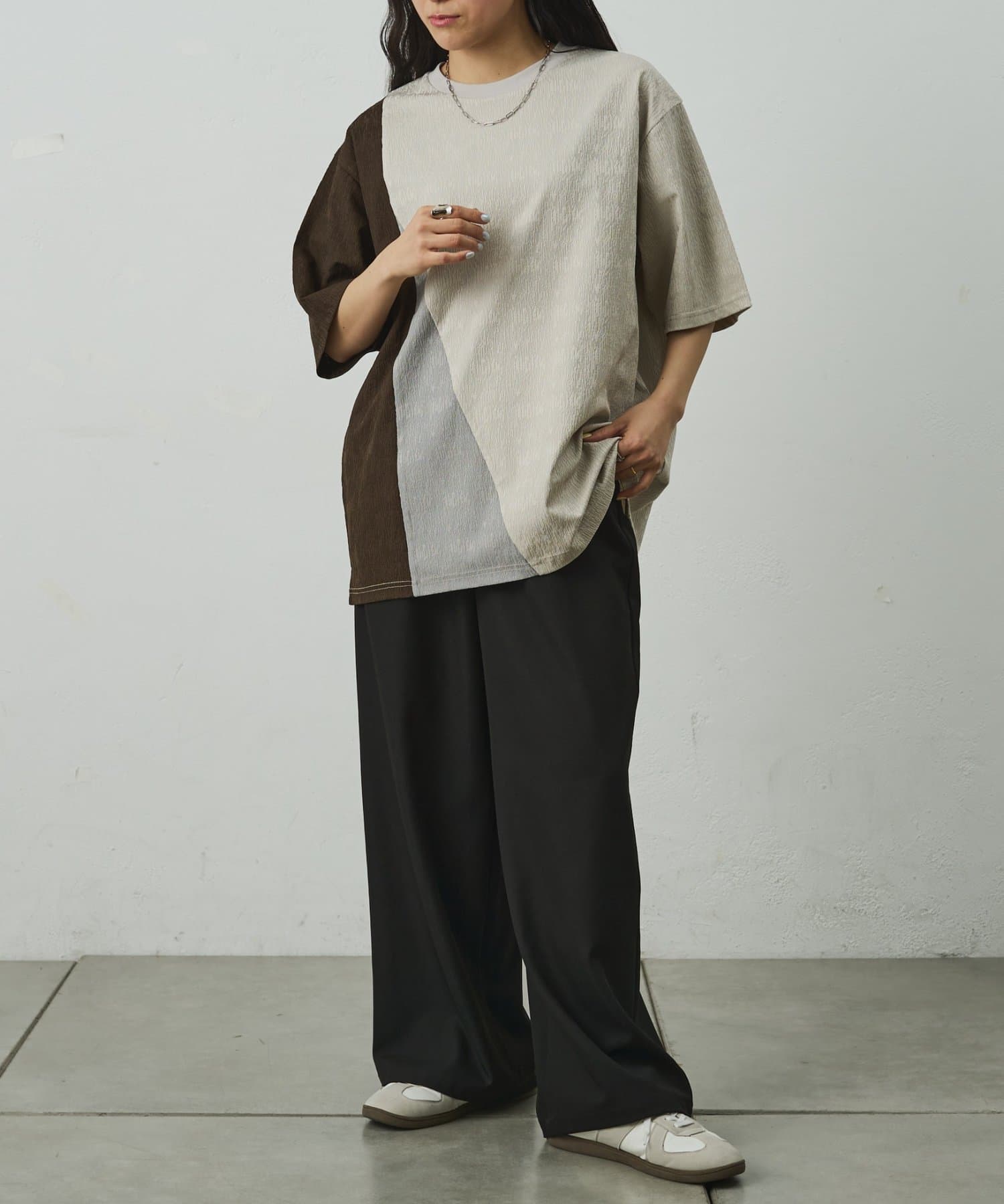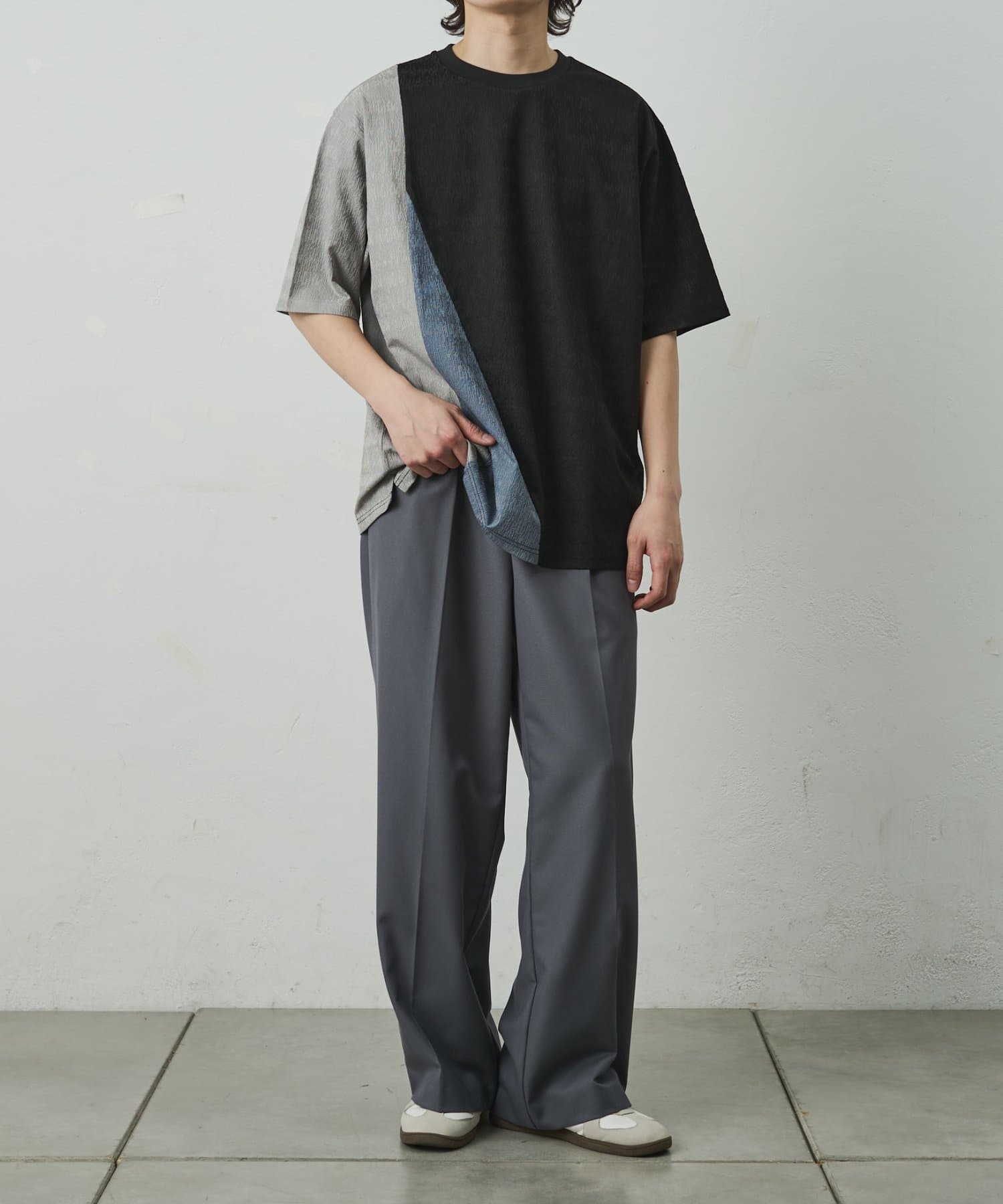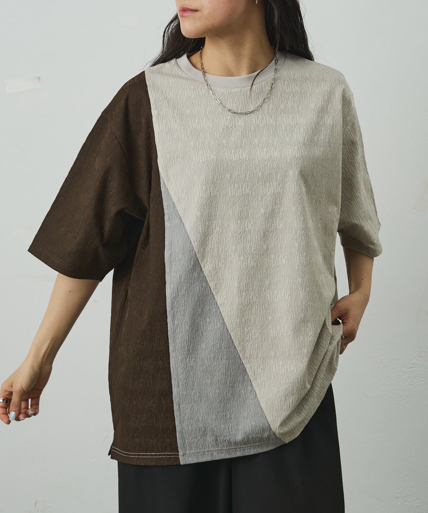 ブライトジャガード切替半袖TEE