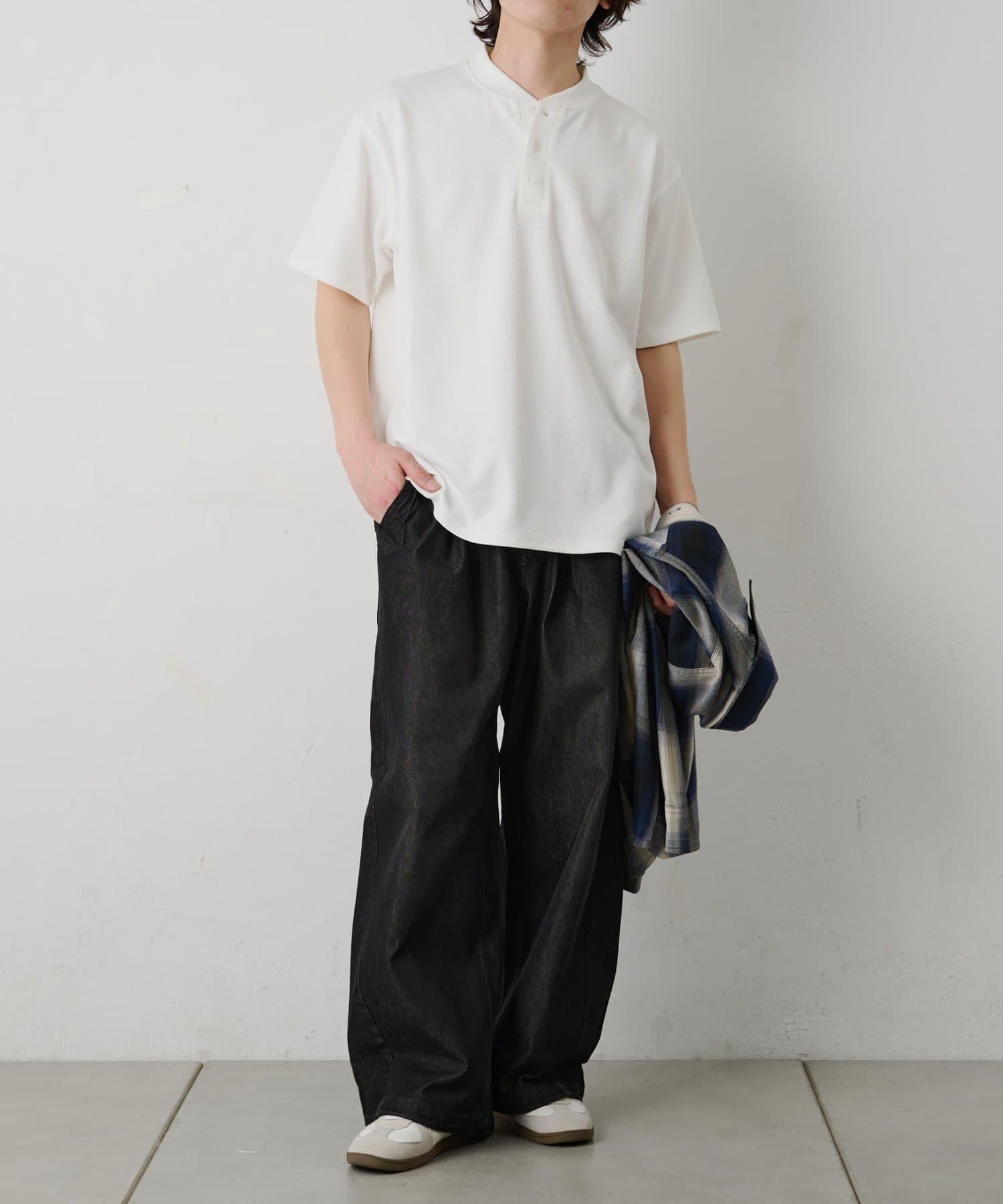 ・ヘンリーネック仕様で大人の抜け感を演出
