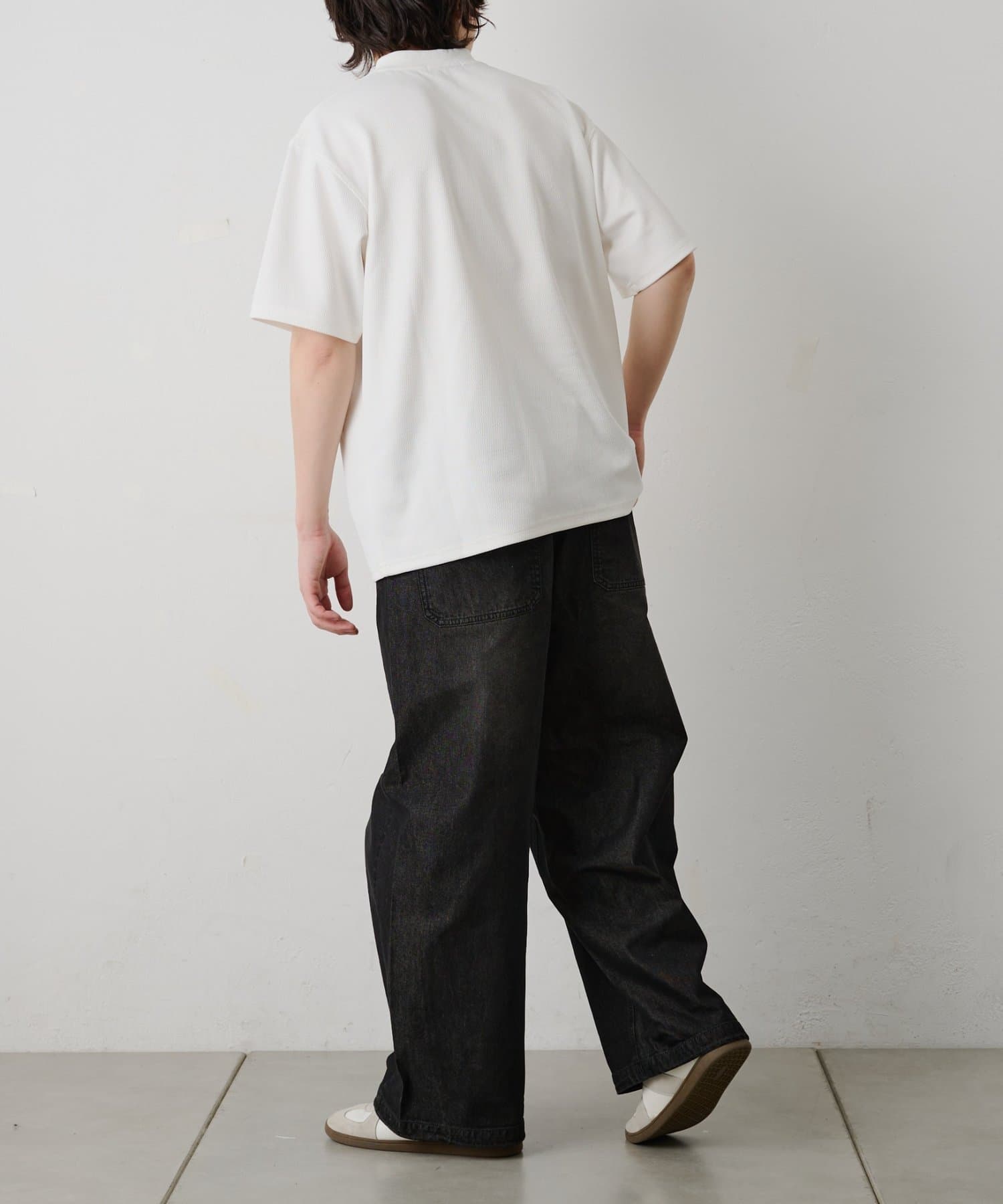 デニムでラフに、スラックスで品よく、様々なボトムスとも相性がいいトップスです。
