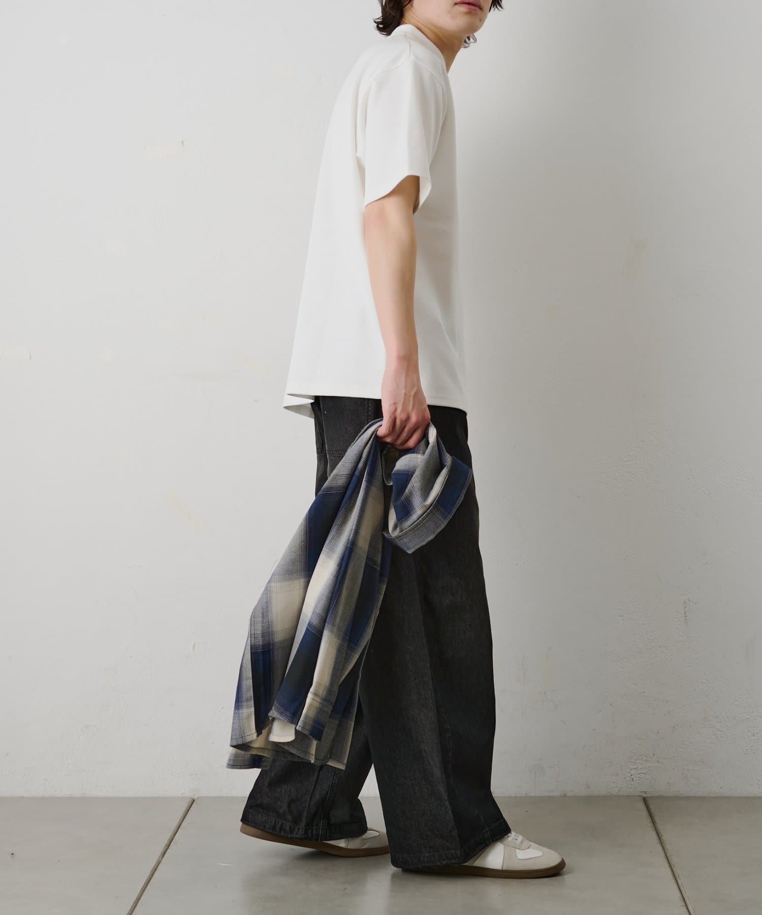 ゆったりとしたサイズ感で一枚で着ても様になり、ジャケットやアウターのインナーとしても使いやすいバランス◎