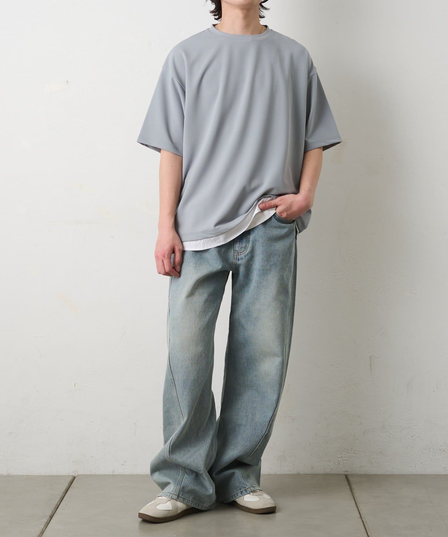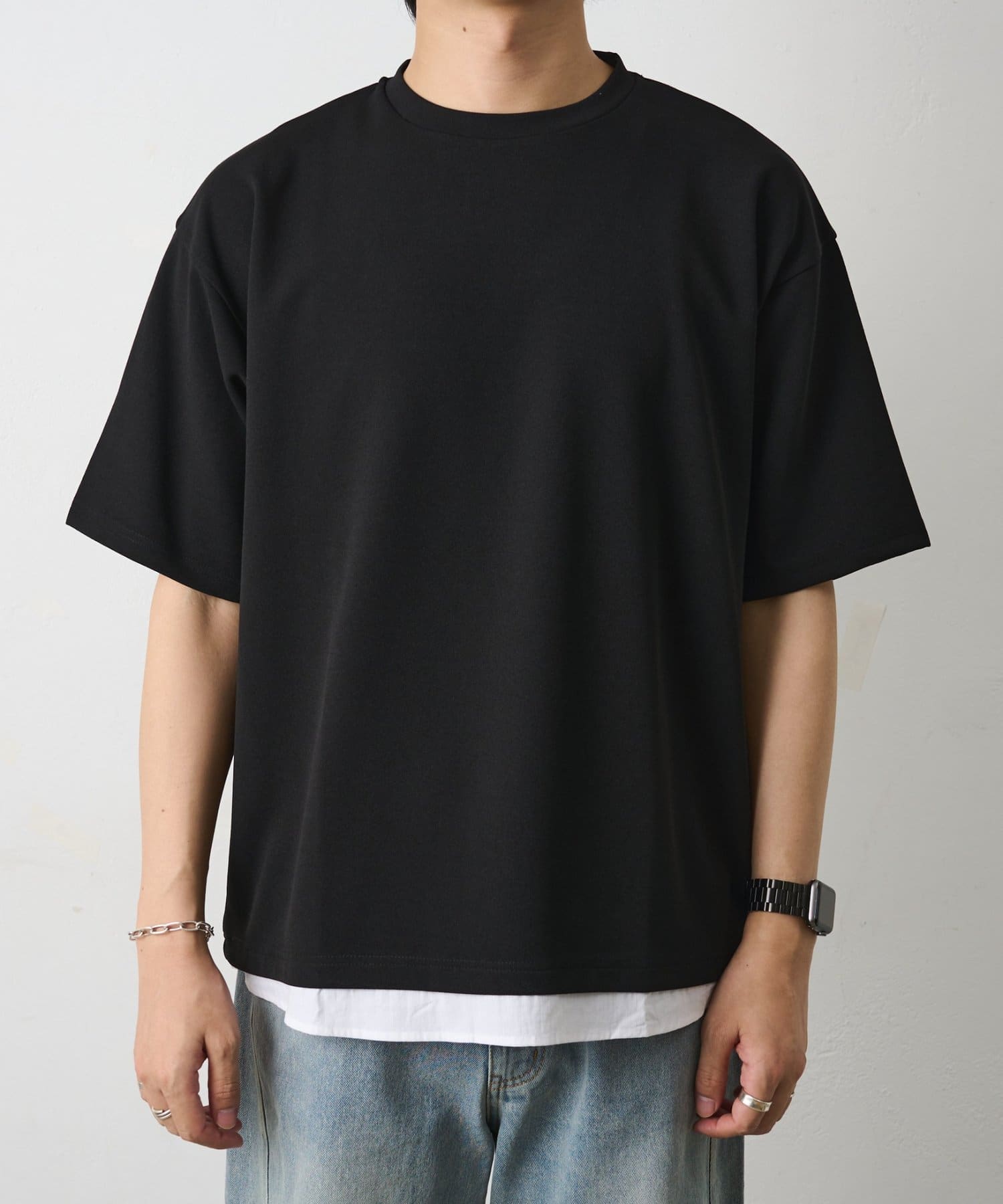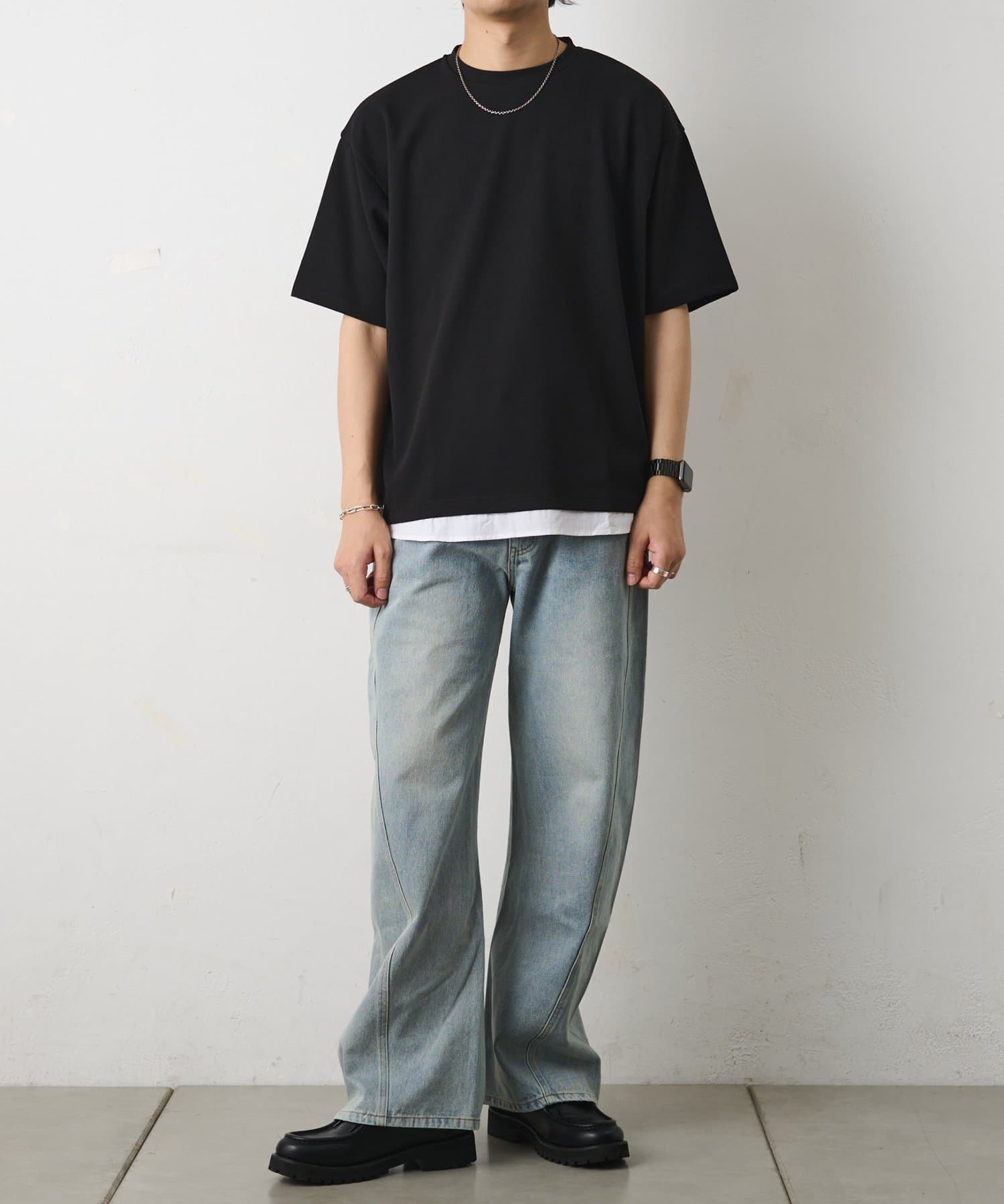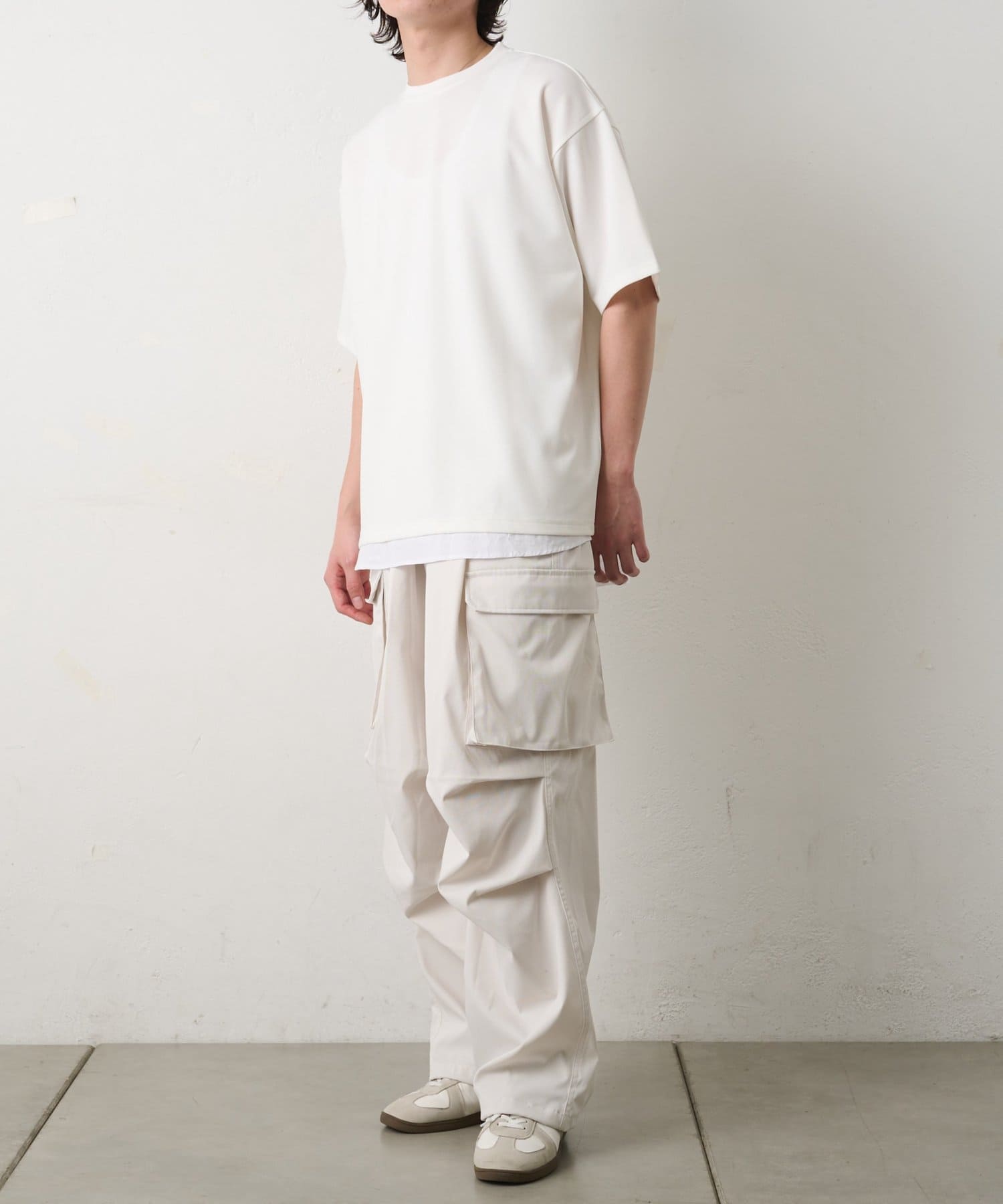 表面変化のある生地なので、インナーにした際にもシンプルながらもコーデにメリハリがつきます。
