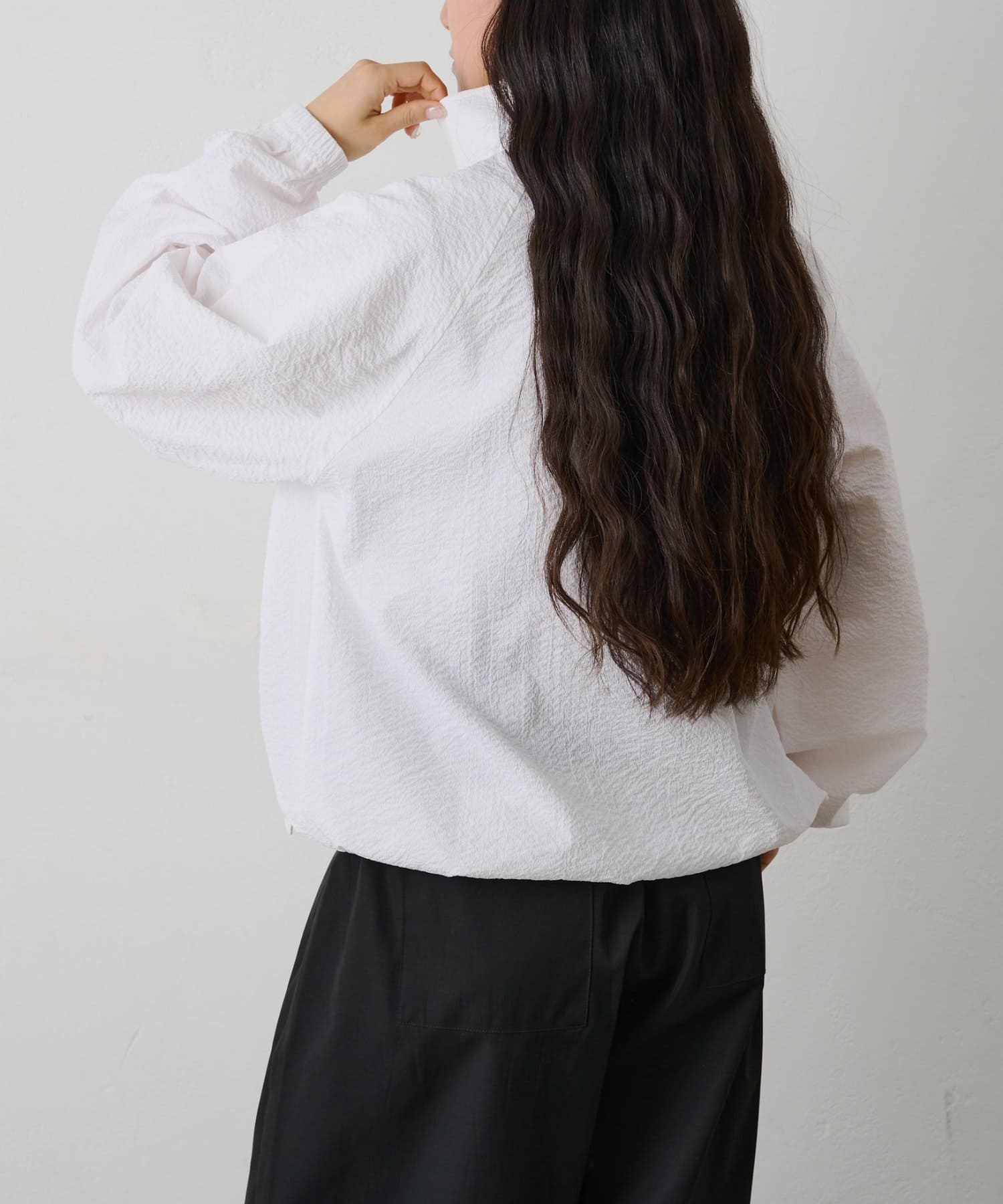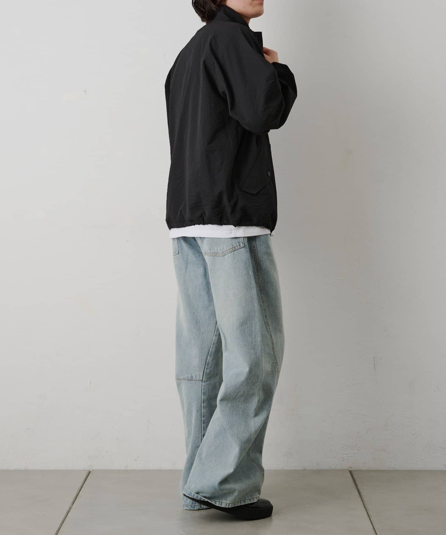 織りの段階で生地表面に凹凸が作られるため、肌に直接触れる面積が減り通気性が向上するので、湿気がこもりにくく涼しく快適に着ることができます。サラッとした質感が肌に心地よく、汗をかきやすい夏のシーズンでも快適さをキープしてくれます。裾にはドローコードがついており,、シルエットを調整可能。