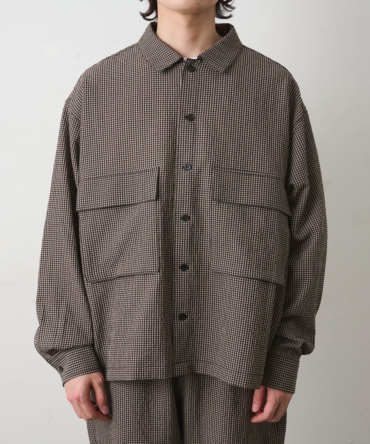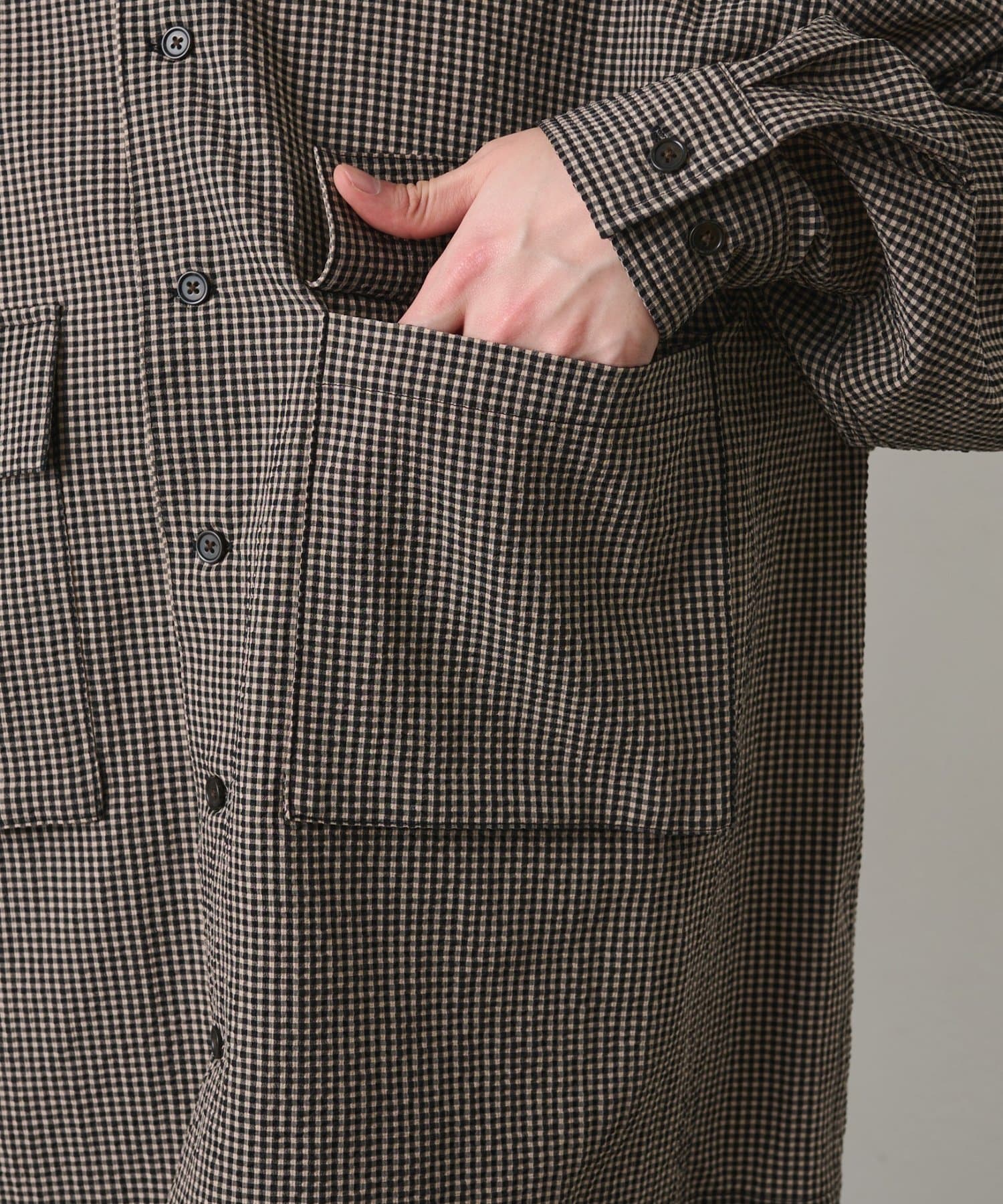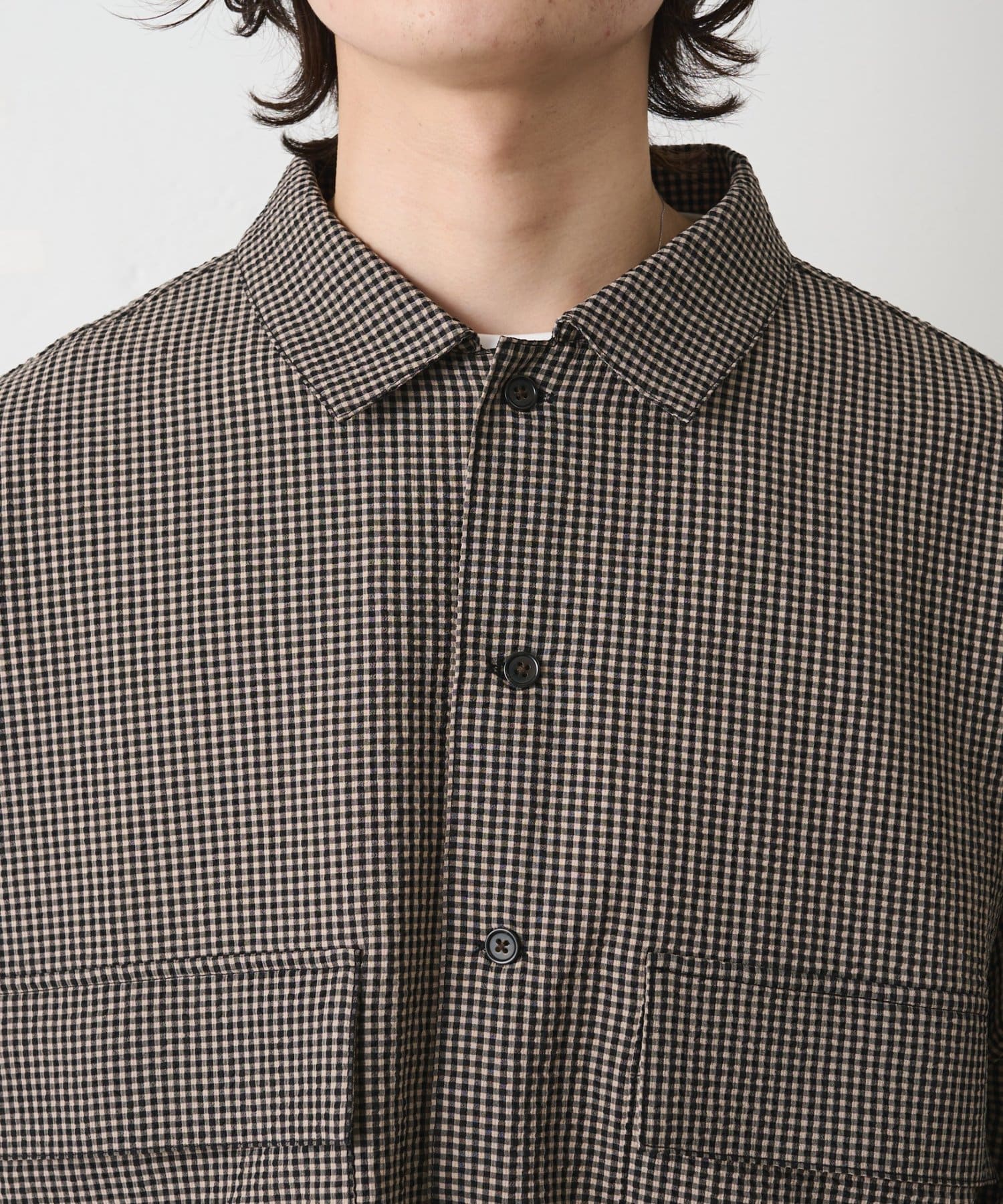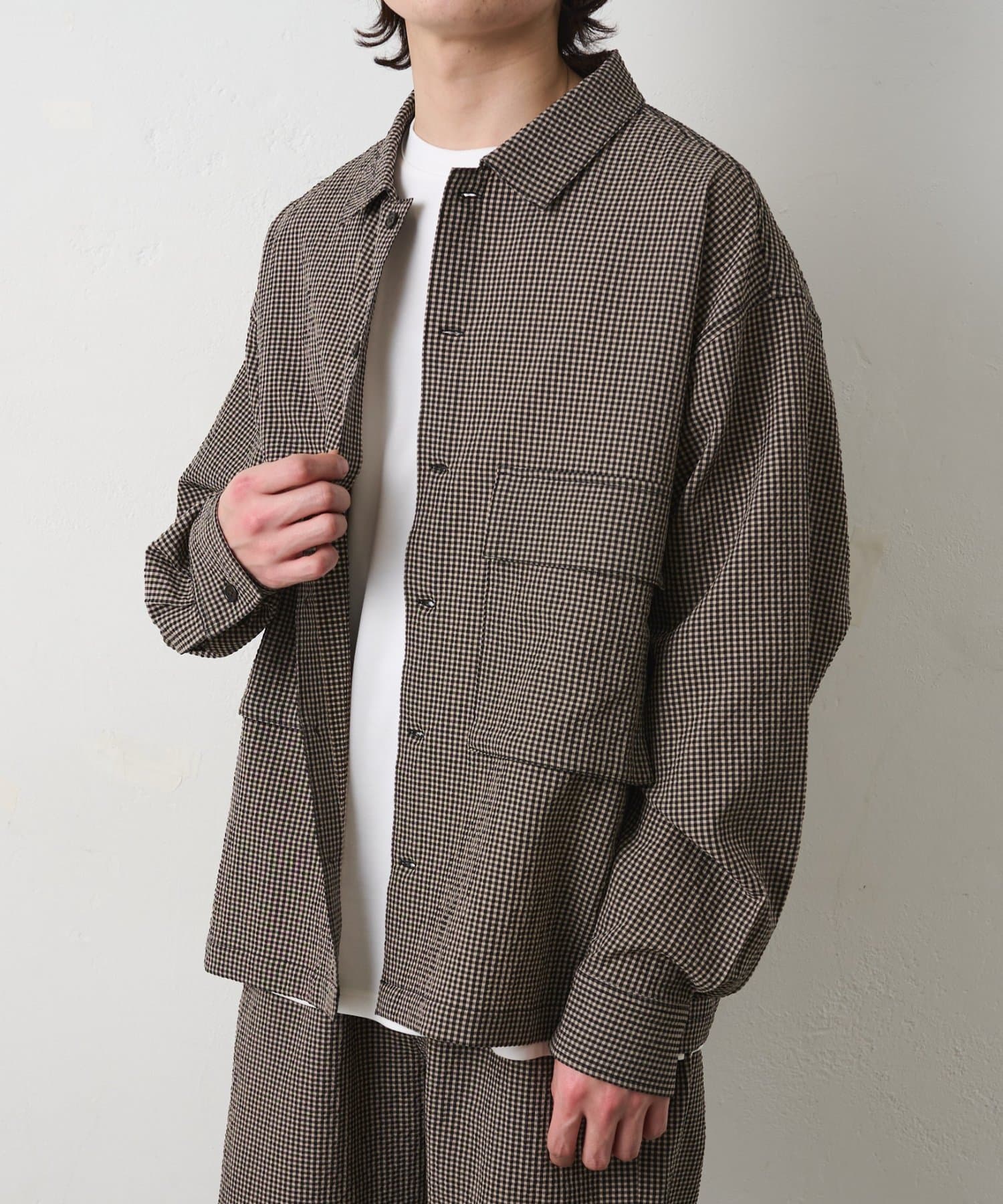 【セットアップ対応】シアサッカーギンガムCPOシャツジャケット