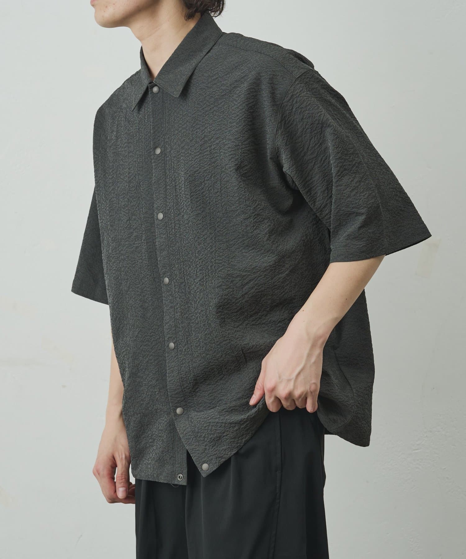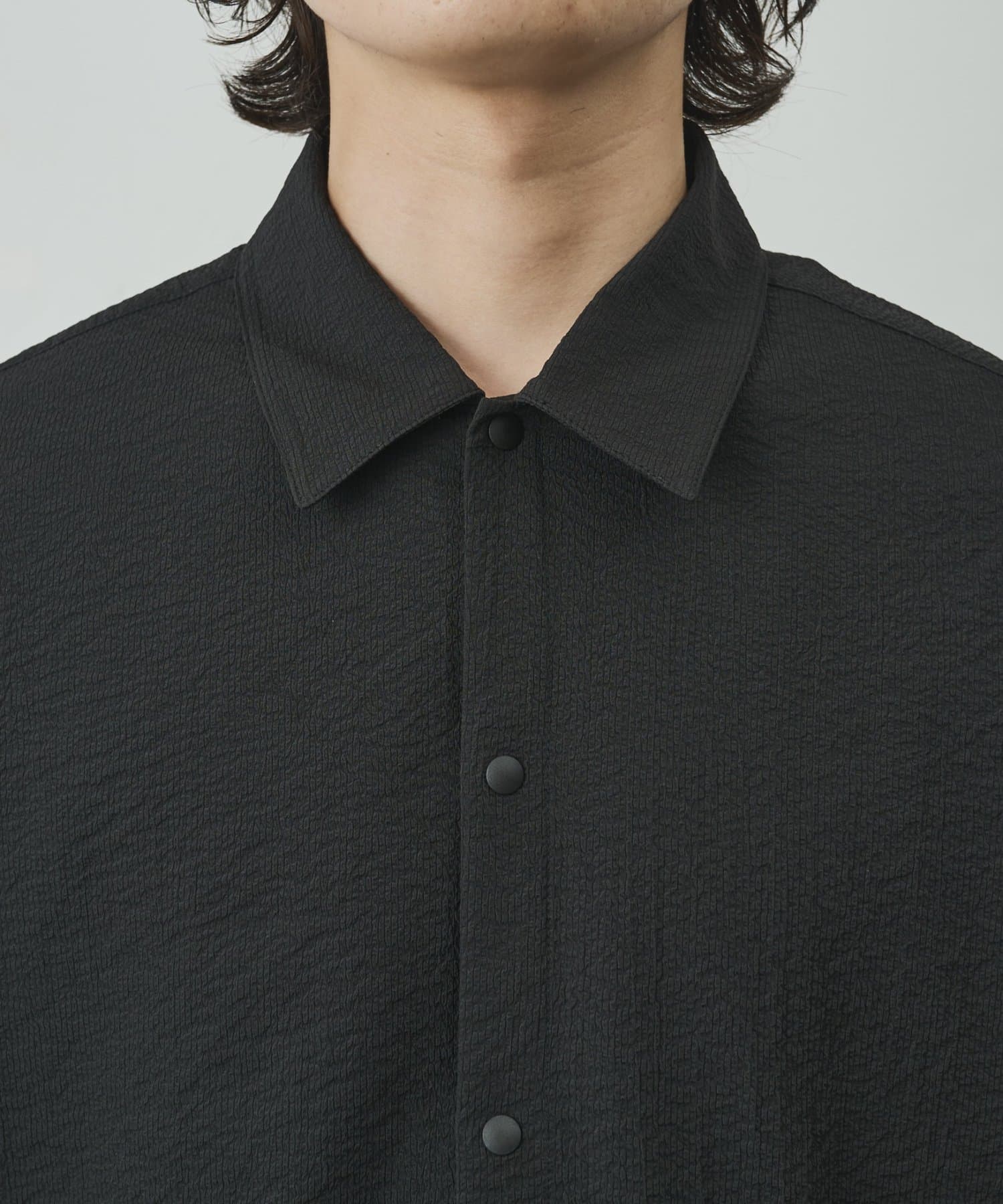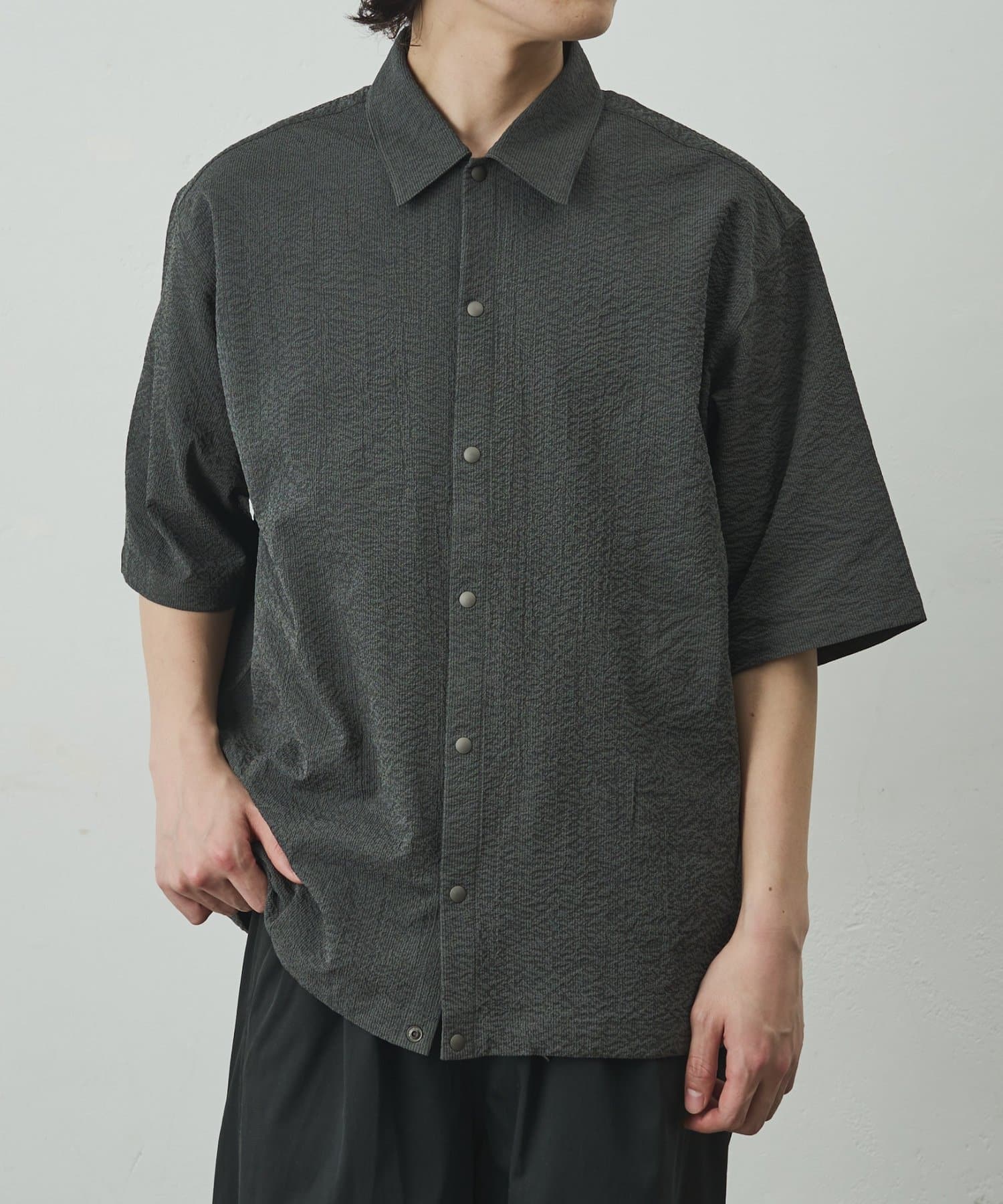 スナップボタンを採用することで、通常のシャツよりもリラックス感が出て着脱もスムーズに行えるようになっております。
