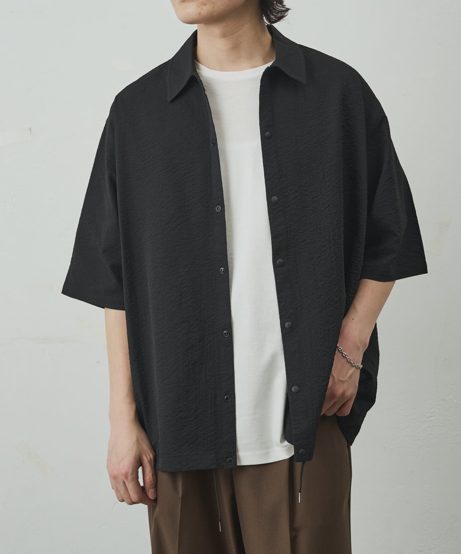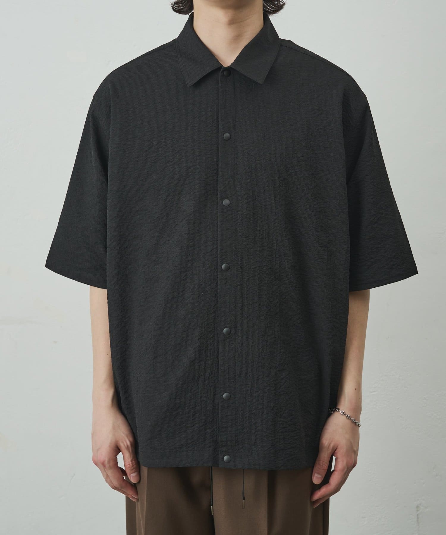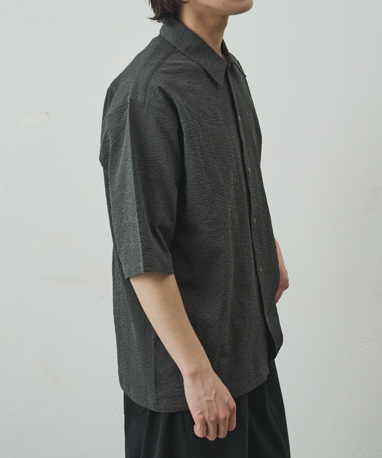 スナップボタンを採用することで、通常のシャツよりもリラックス感が出て着脱もスムーズに行えるようになっております。