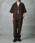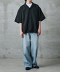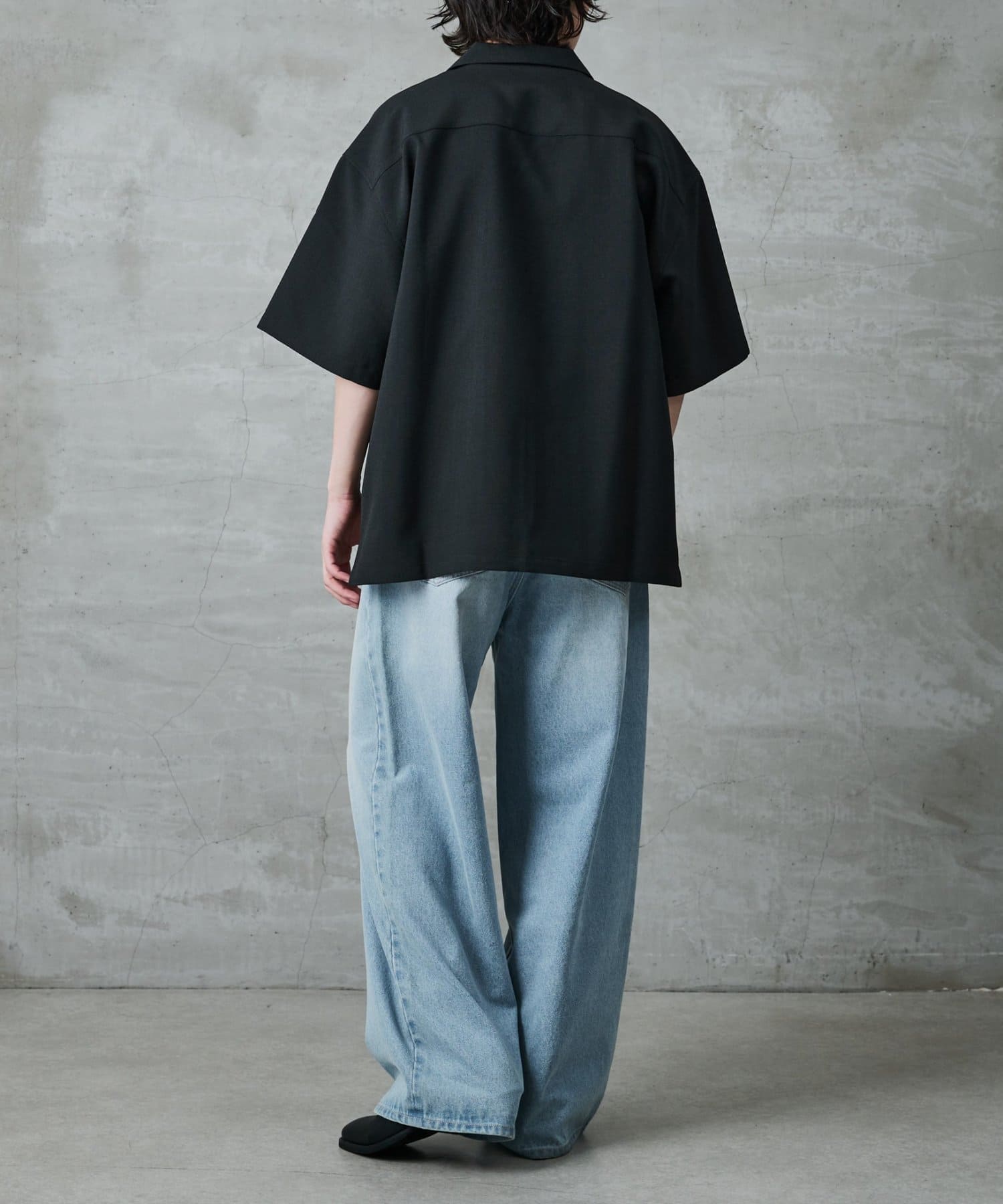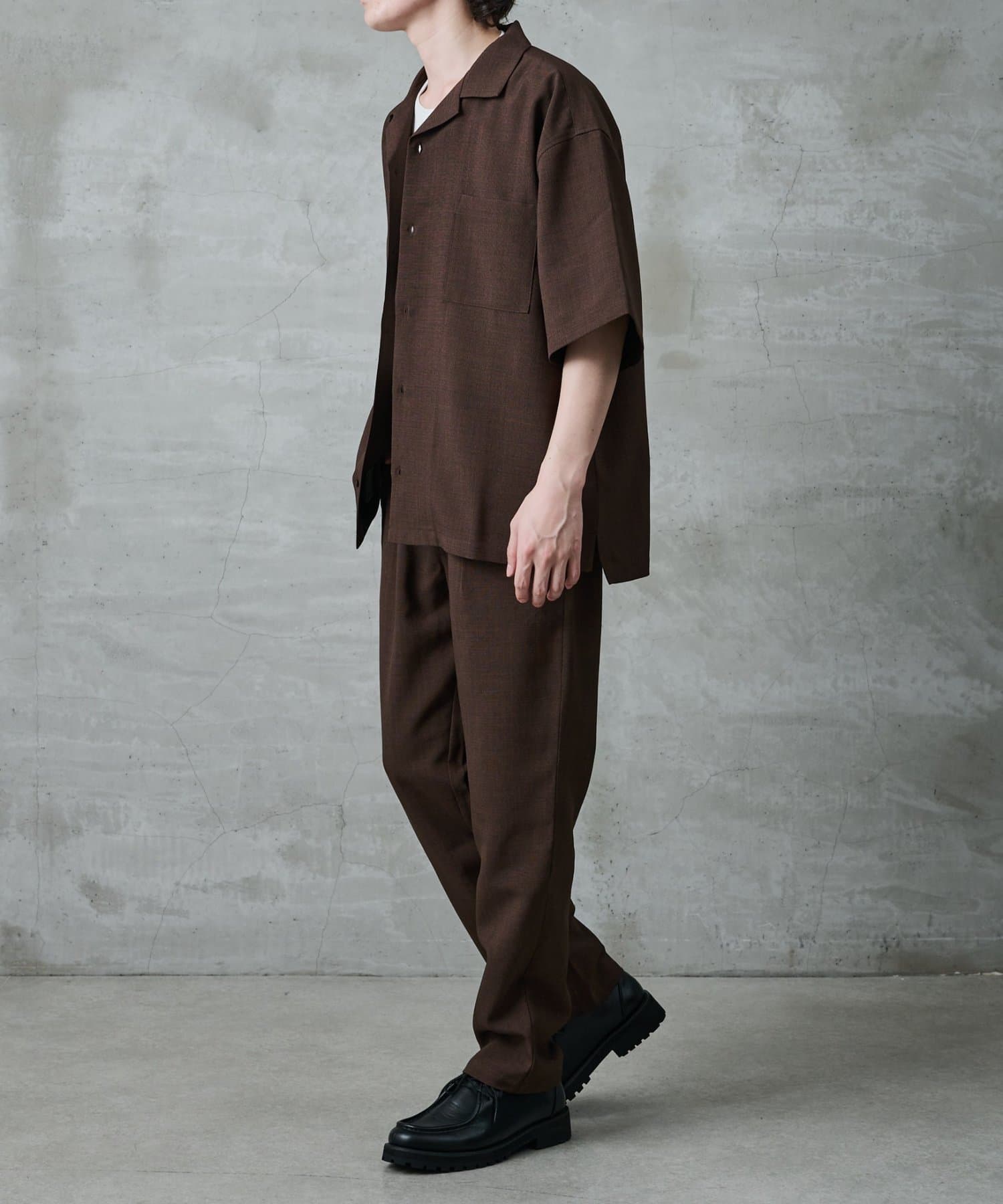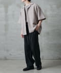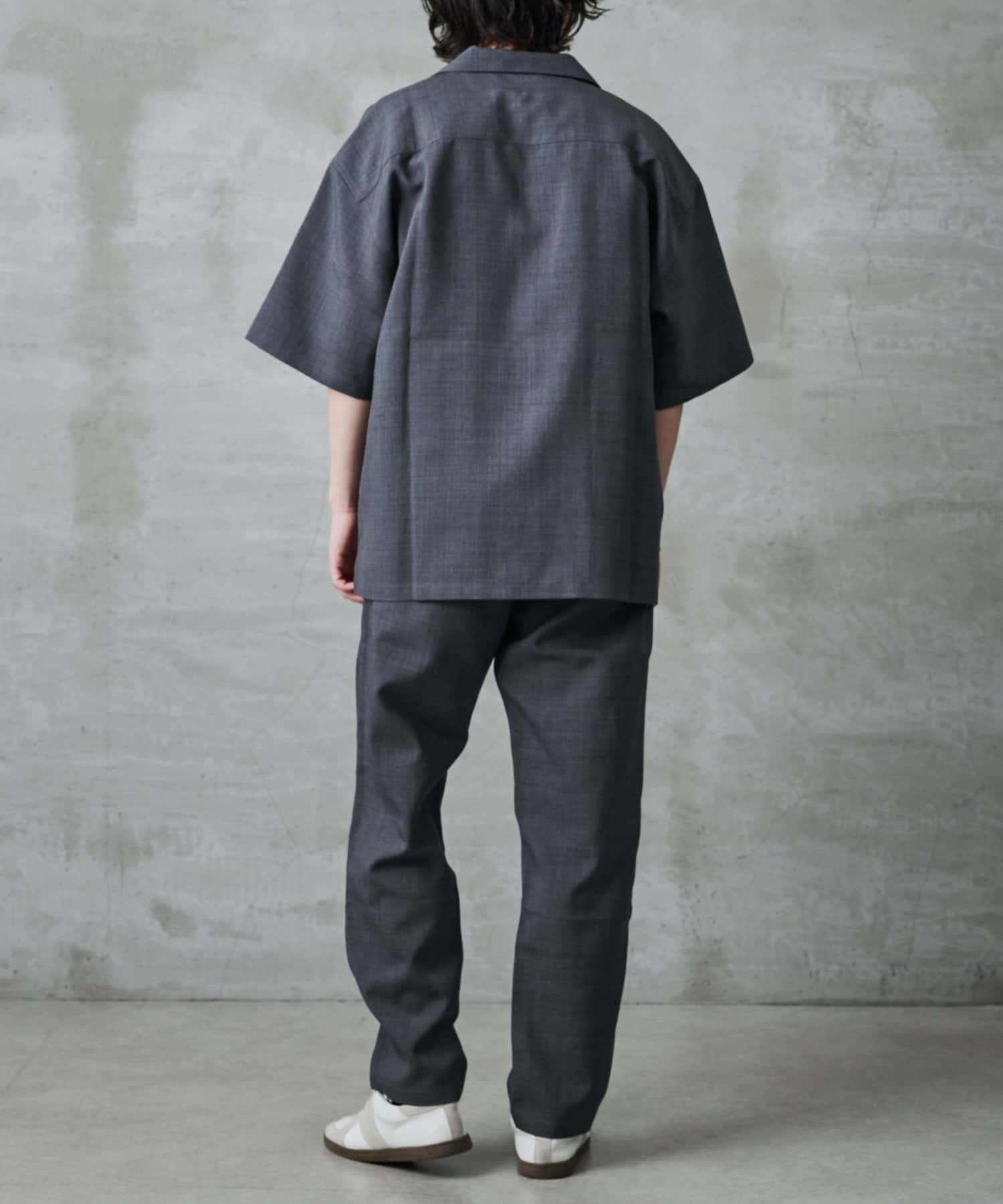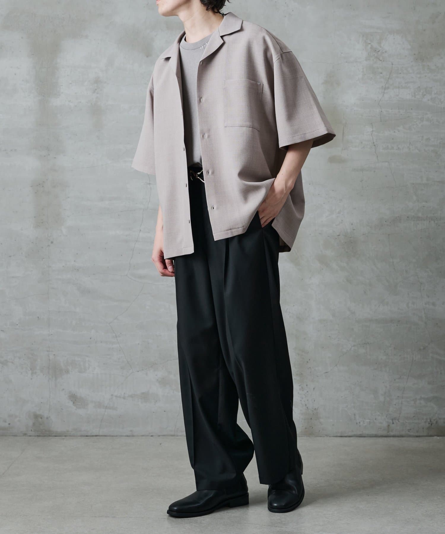 襟元はオープンカラーなので抜け感をプラスするだけでなく、ネックレスのレイヤードなどもお楽しみいただけます。