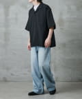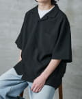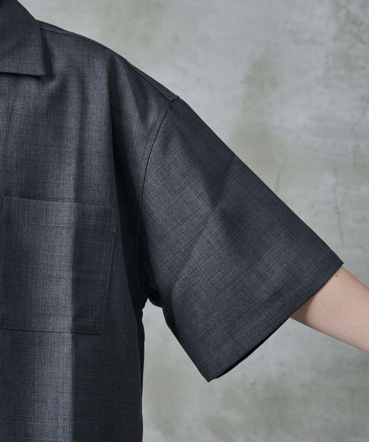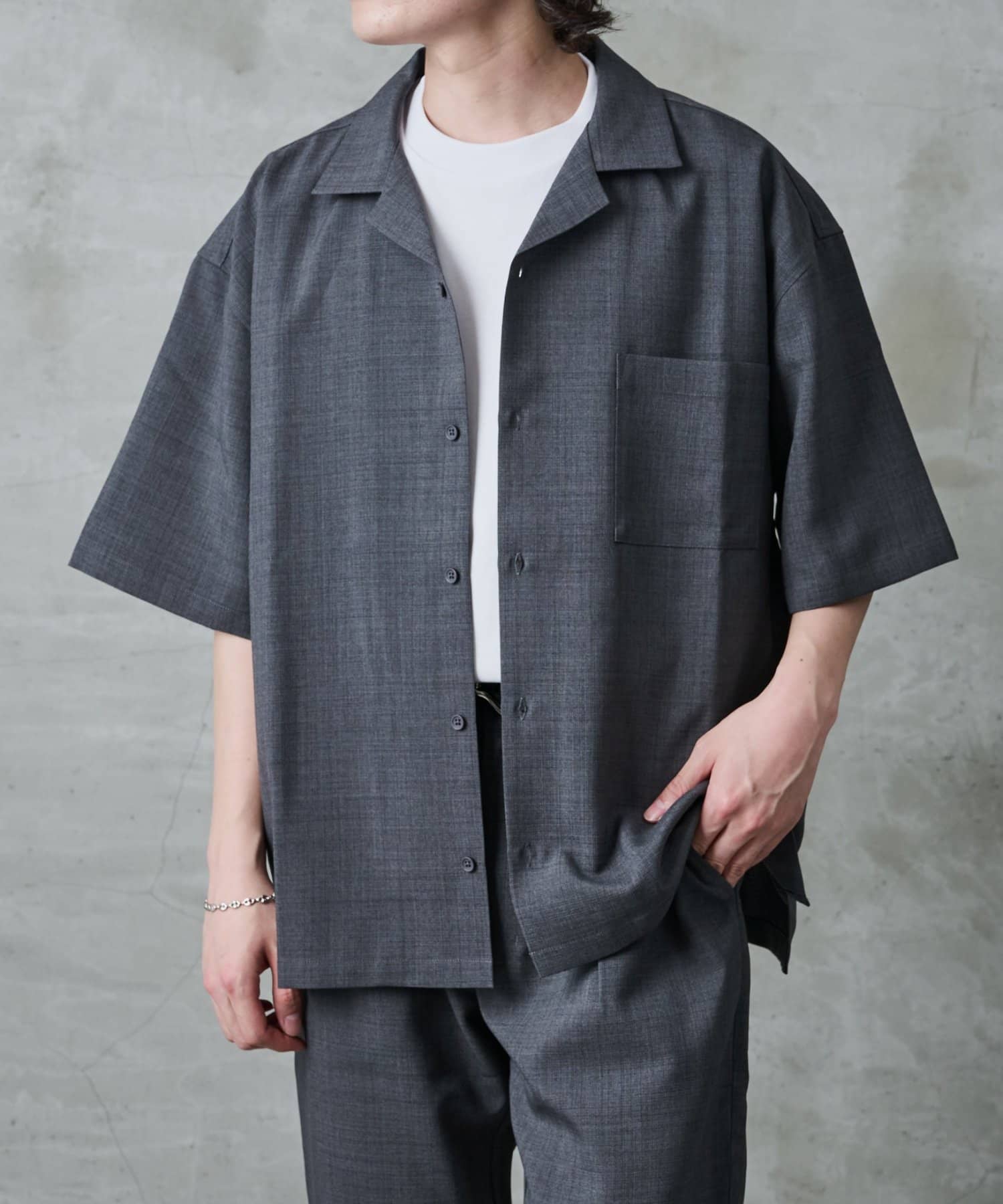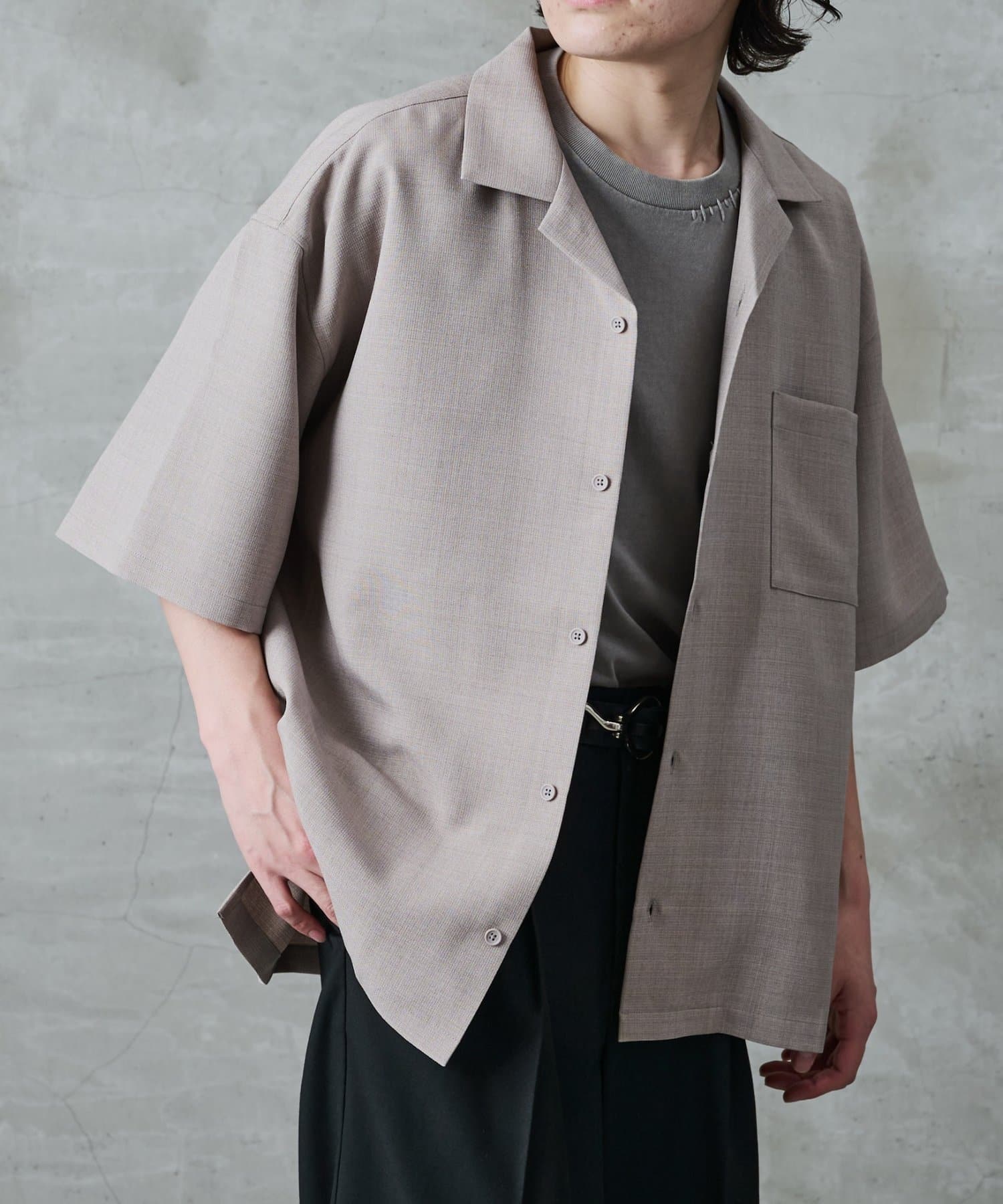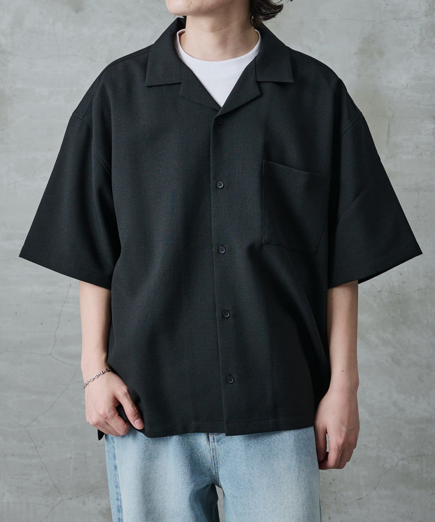 軽量で通気性の良いポリエステル素材を使用したオープンカラーシャツ。