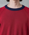 縫い目を表地にすることでデザイン性をプラスしたニット。