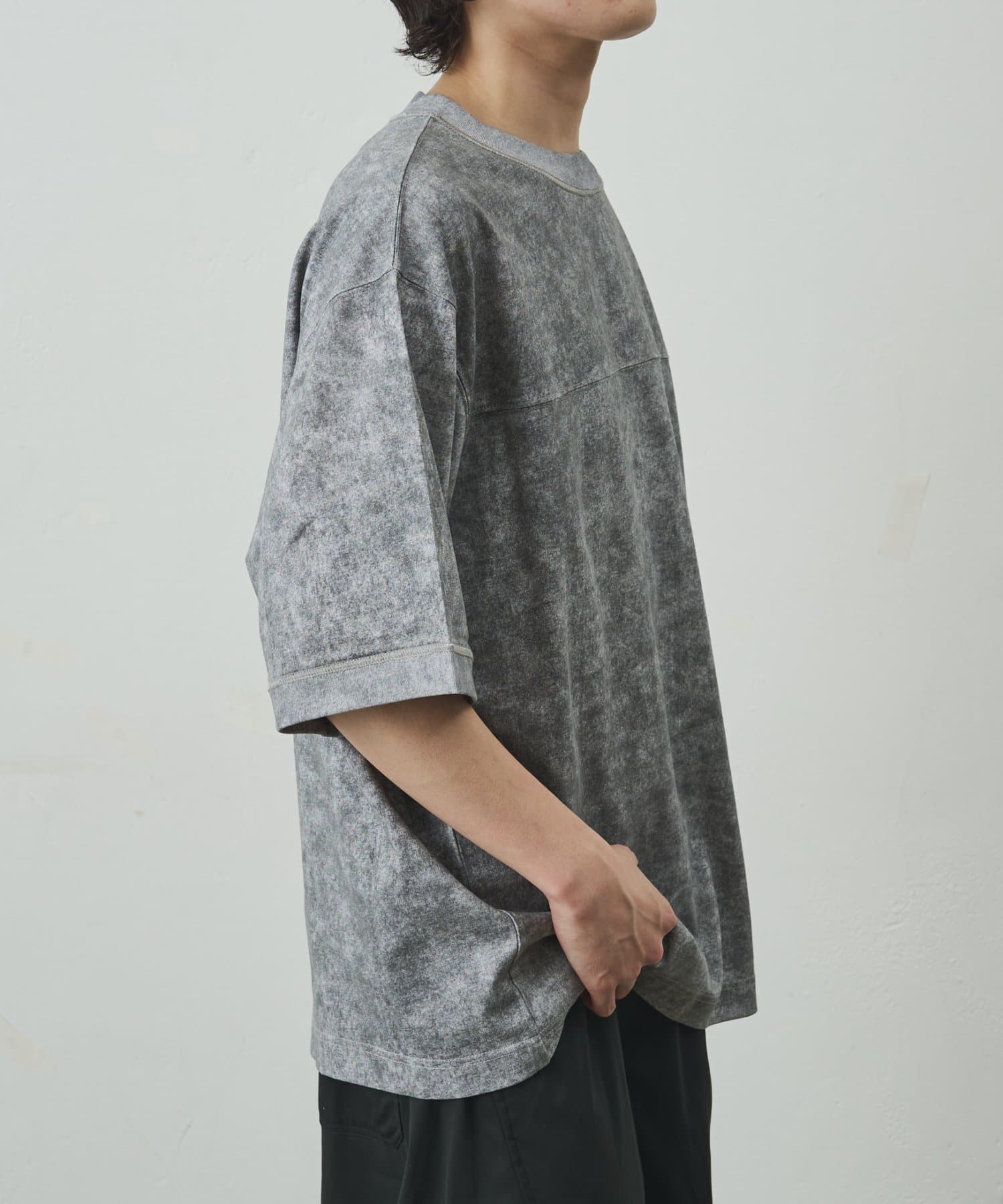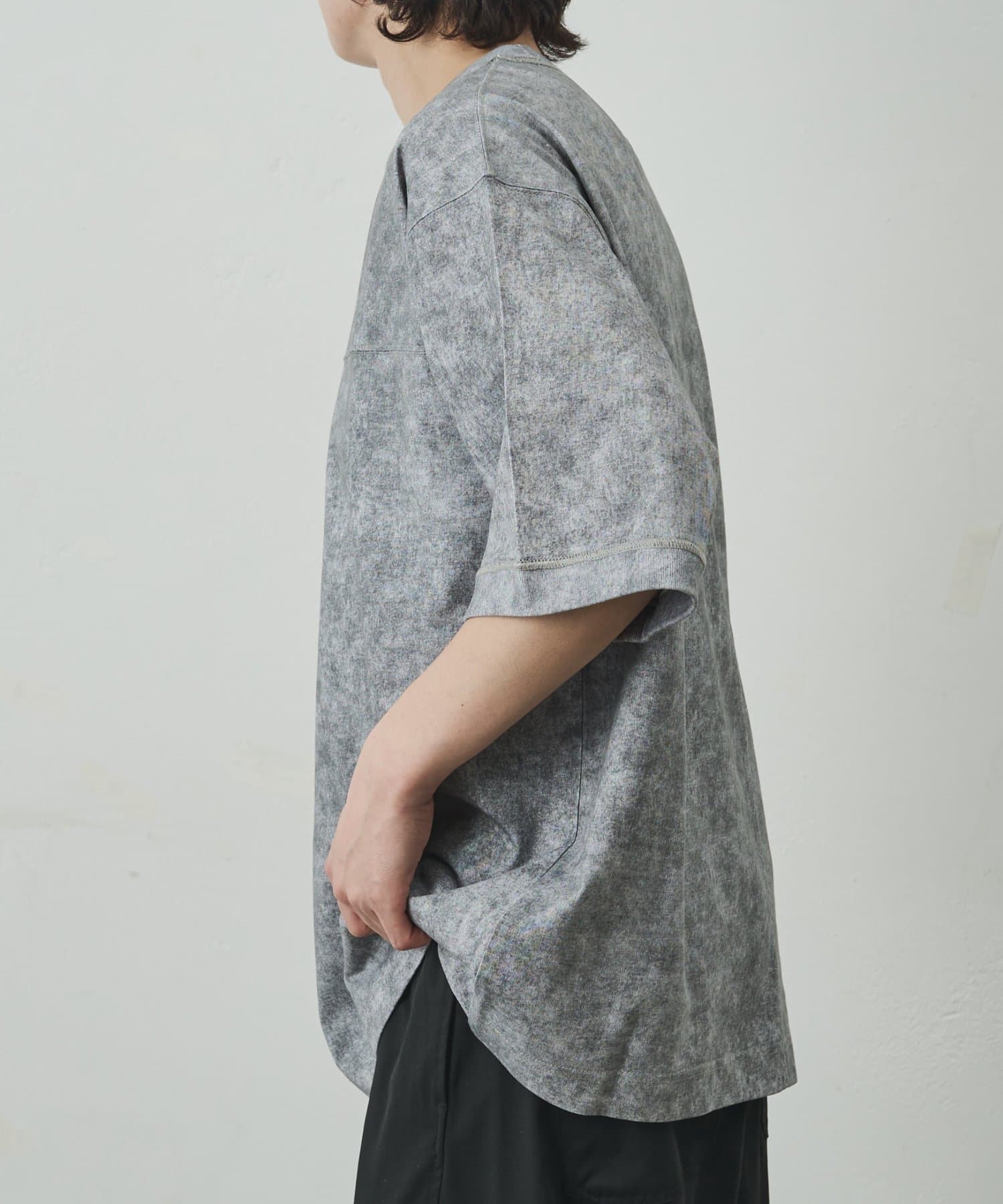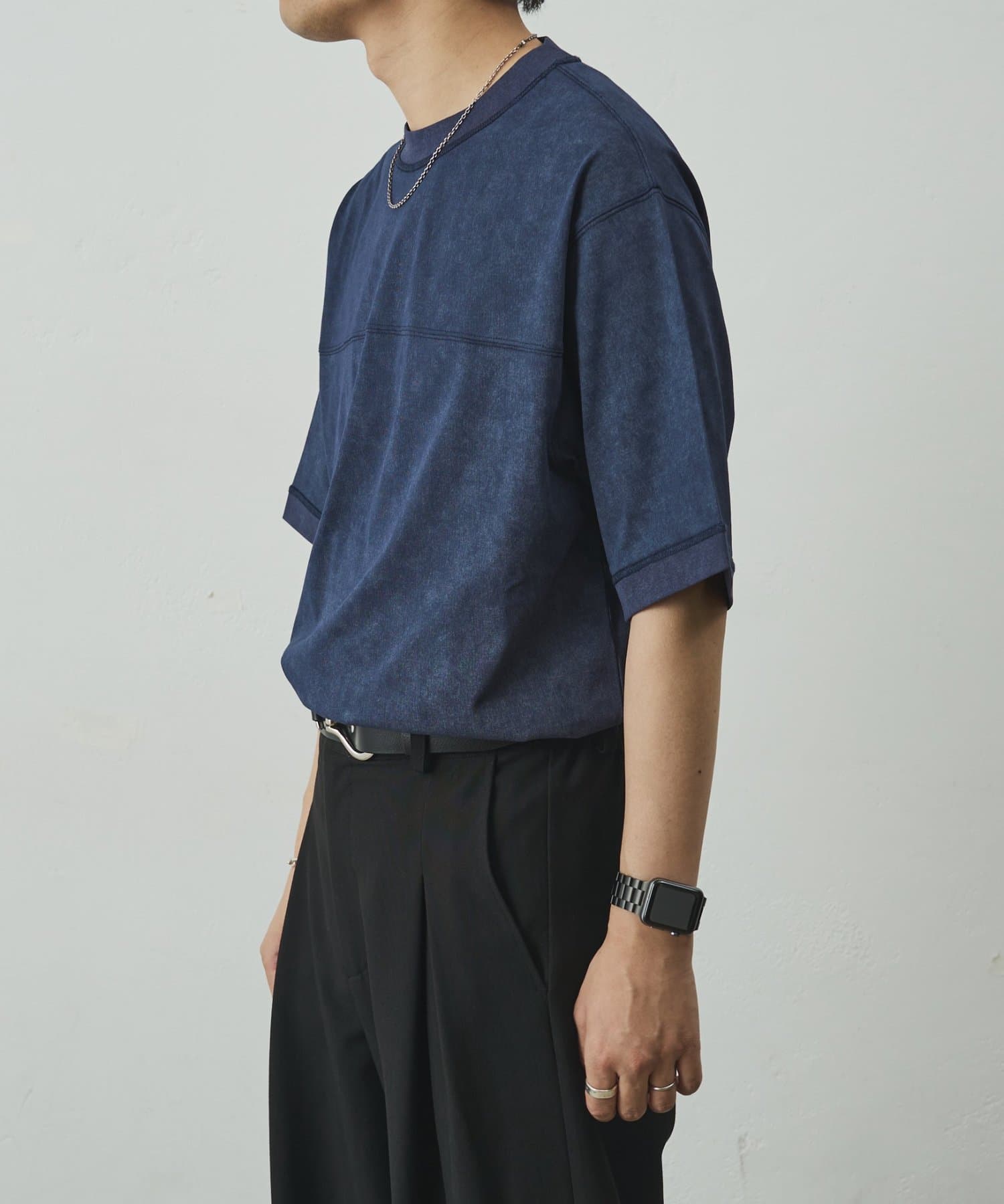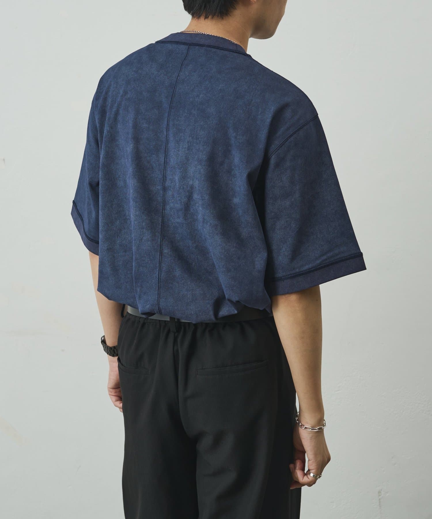 ムラ染め加工ならではの奥行きのある色合いが特徴のTシャツ。