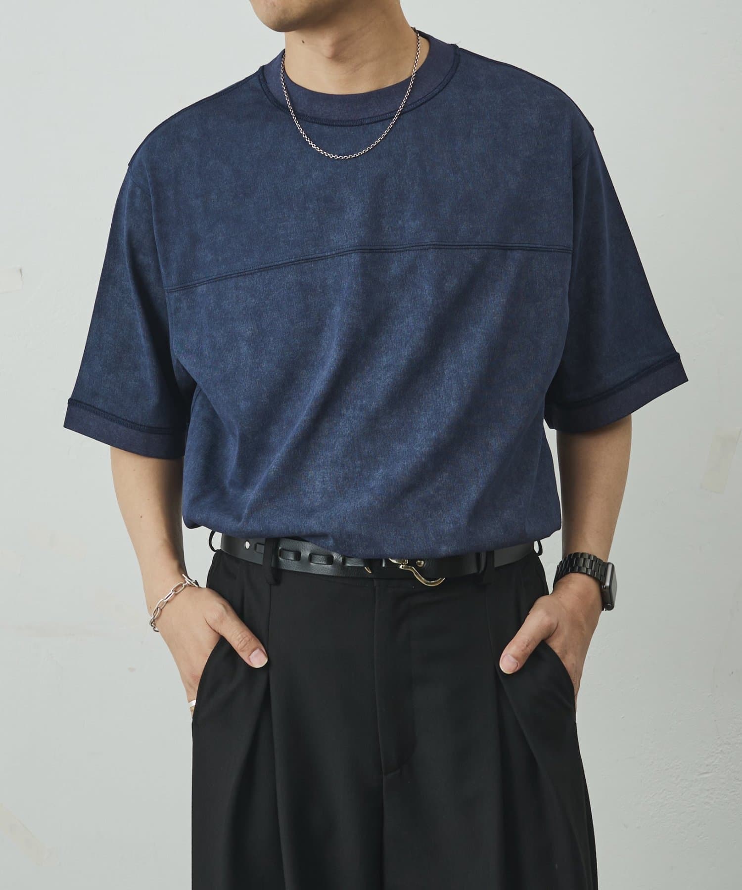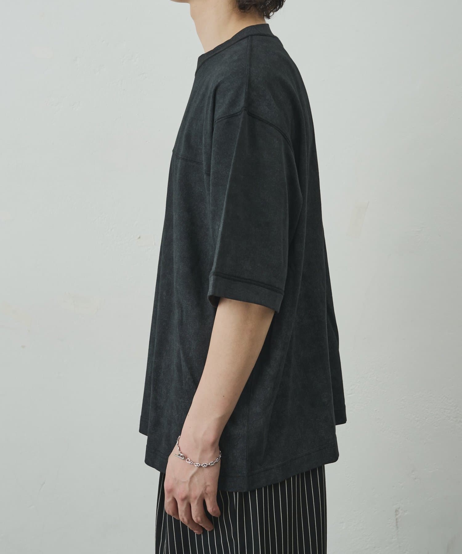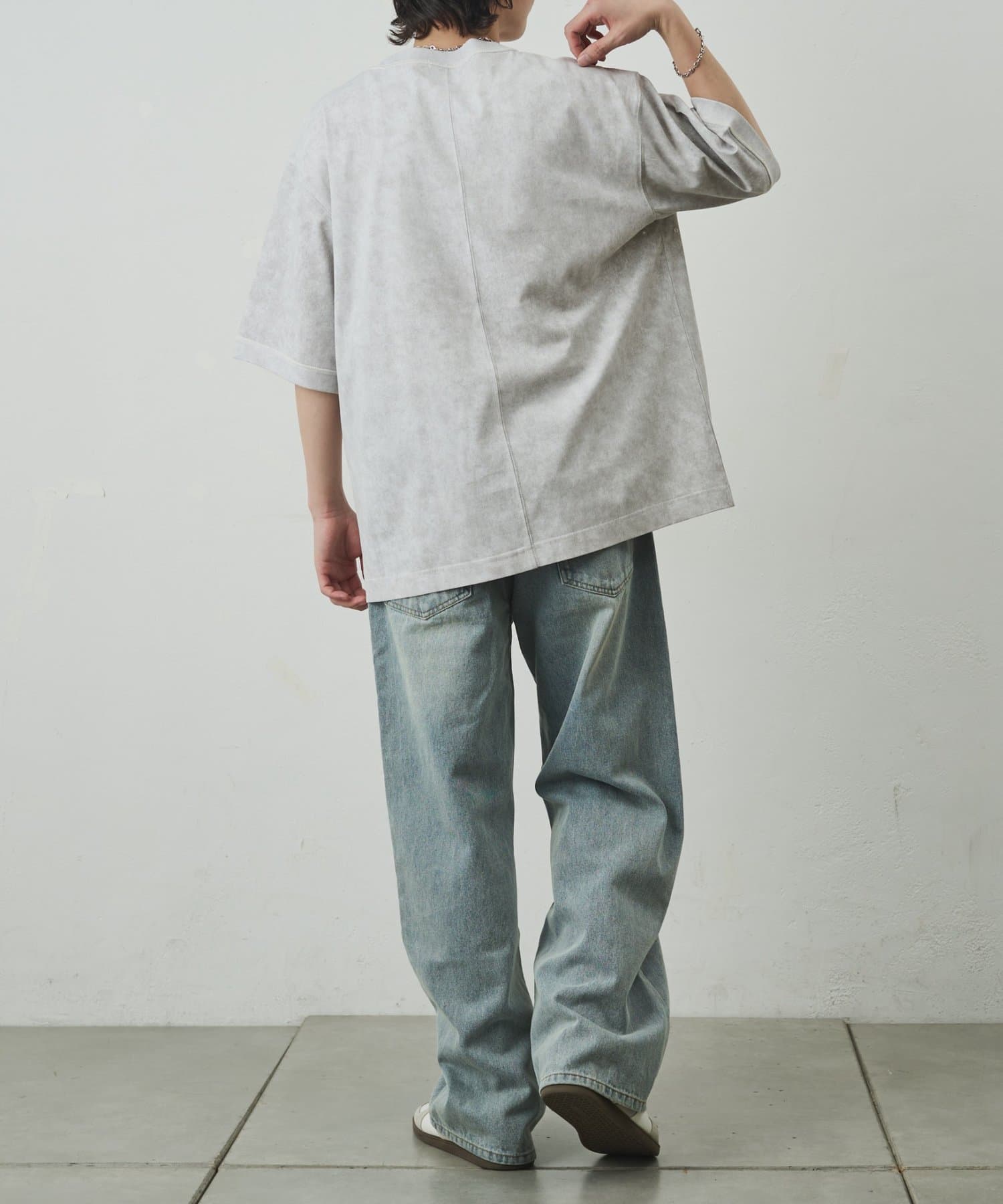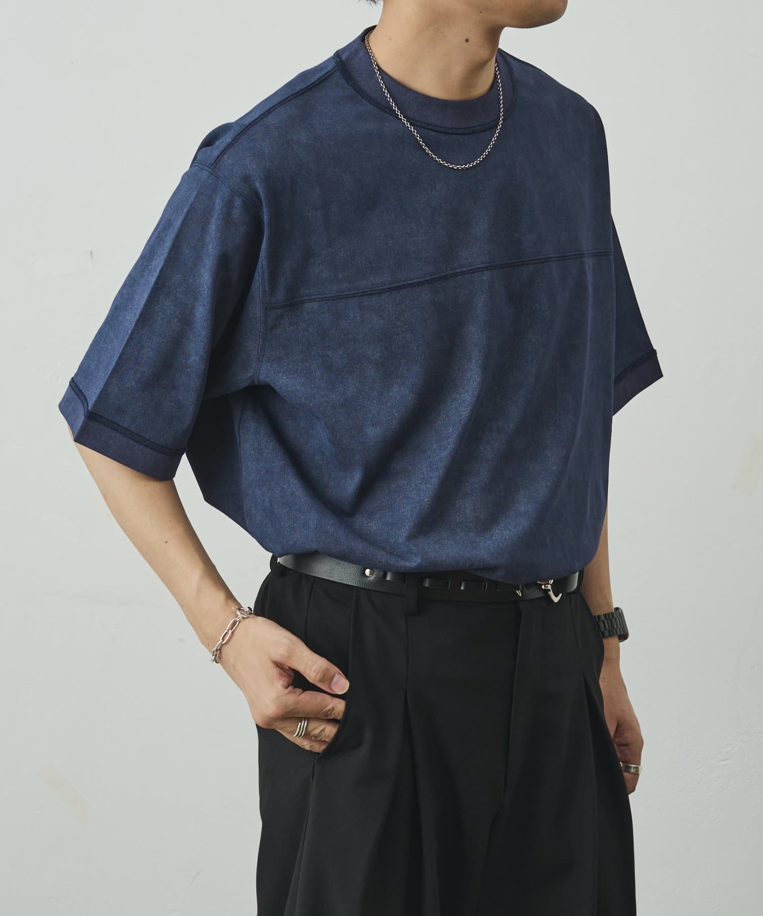 ムラ染め加工ならではの奥行きのある色合いが特徴のTシャツ。