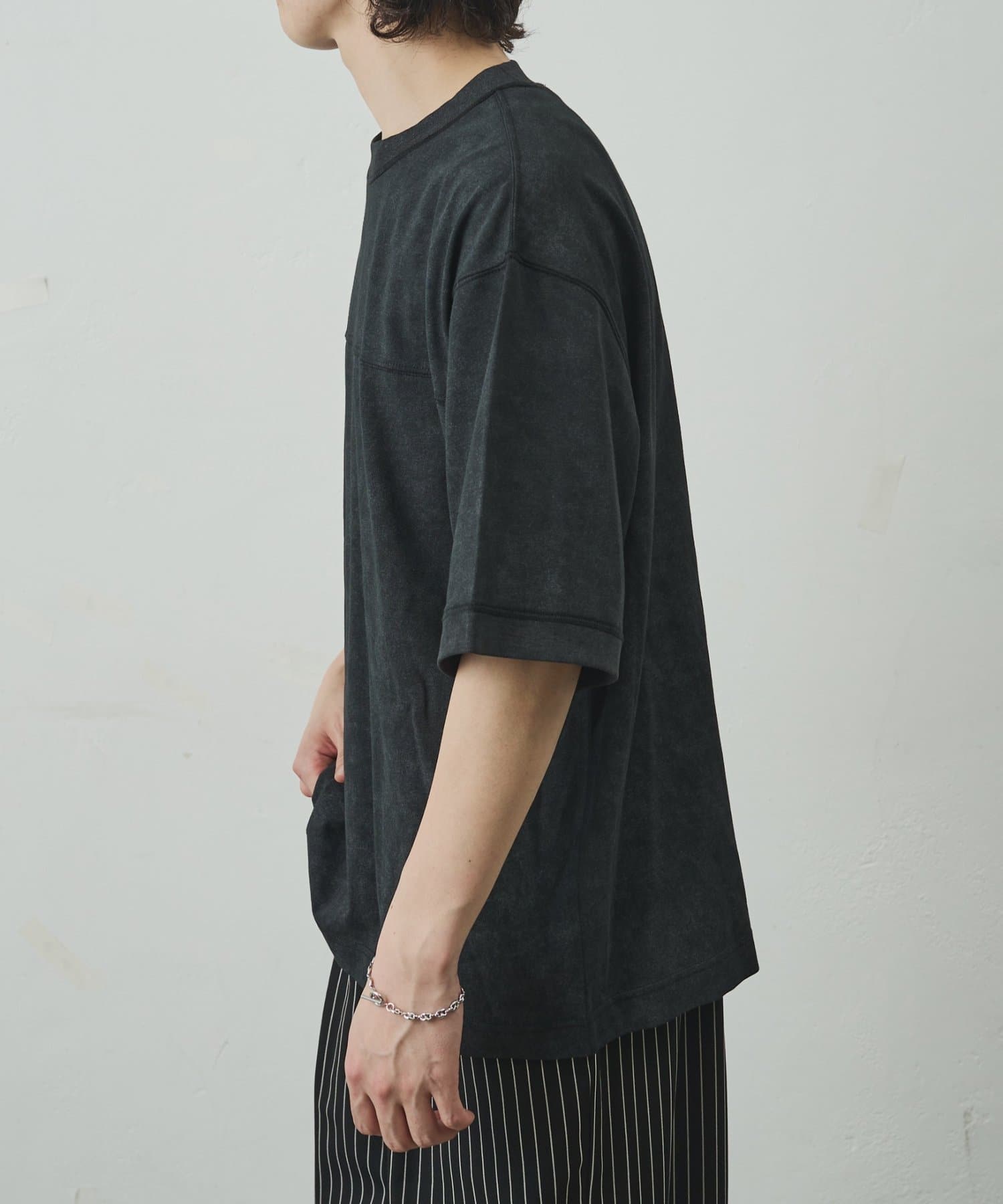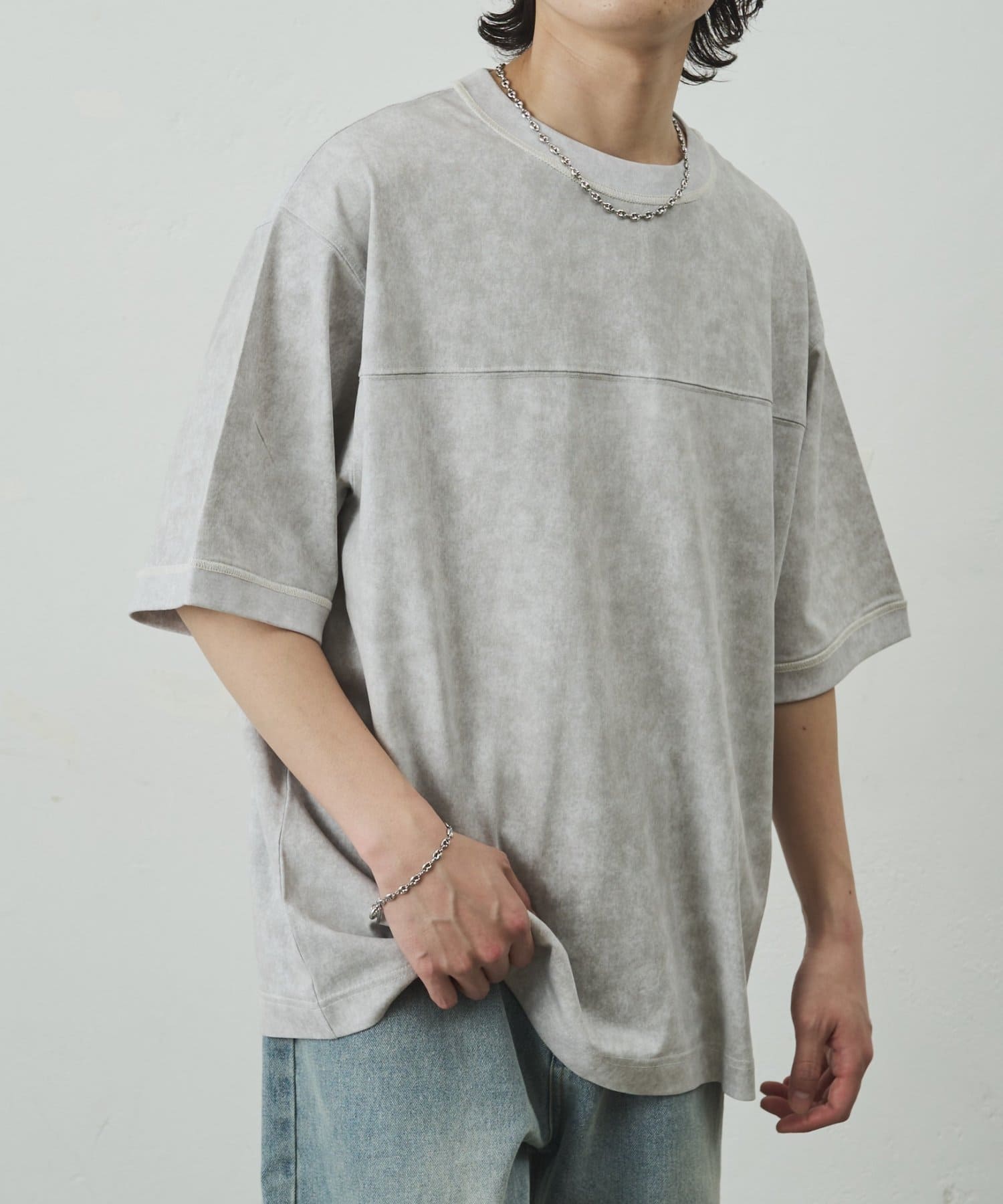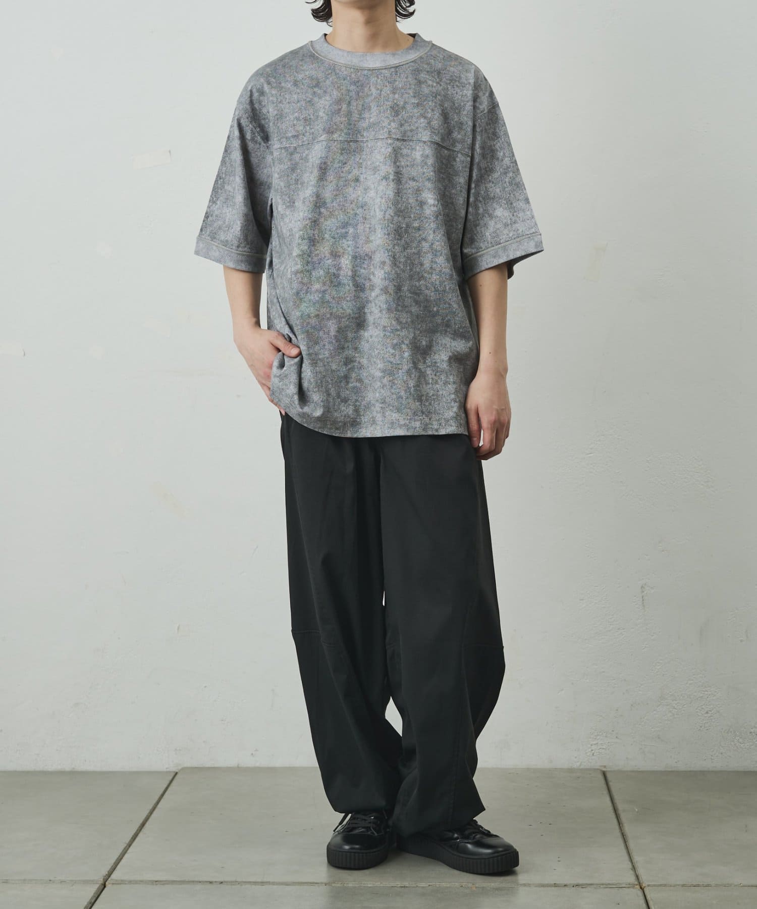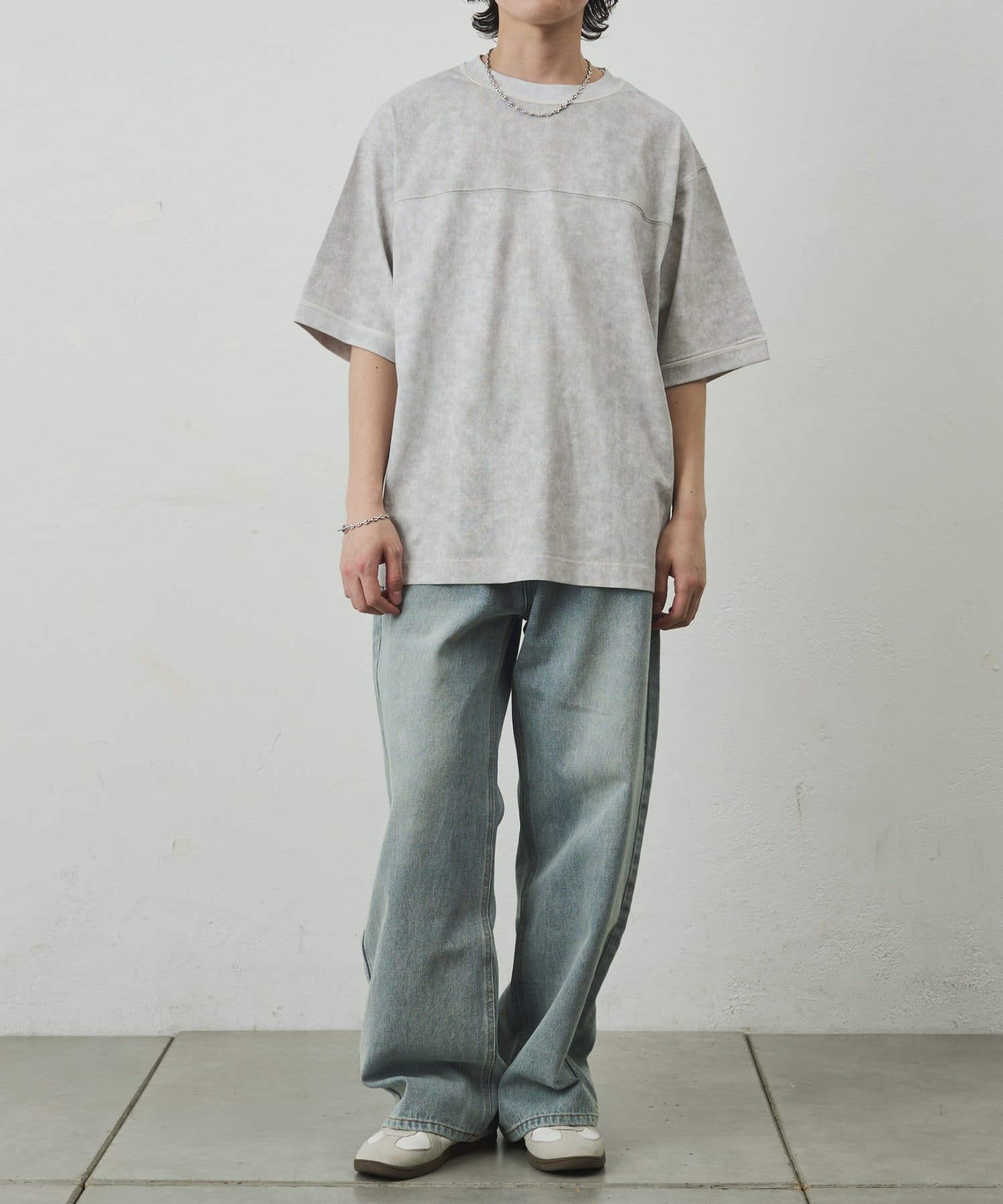 ムラ染め加工ならではの奥行きのある色合いが特徴のTシャツ。