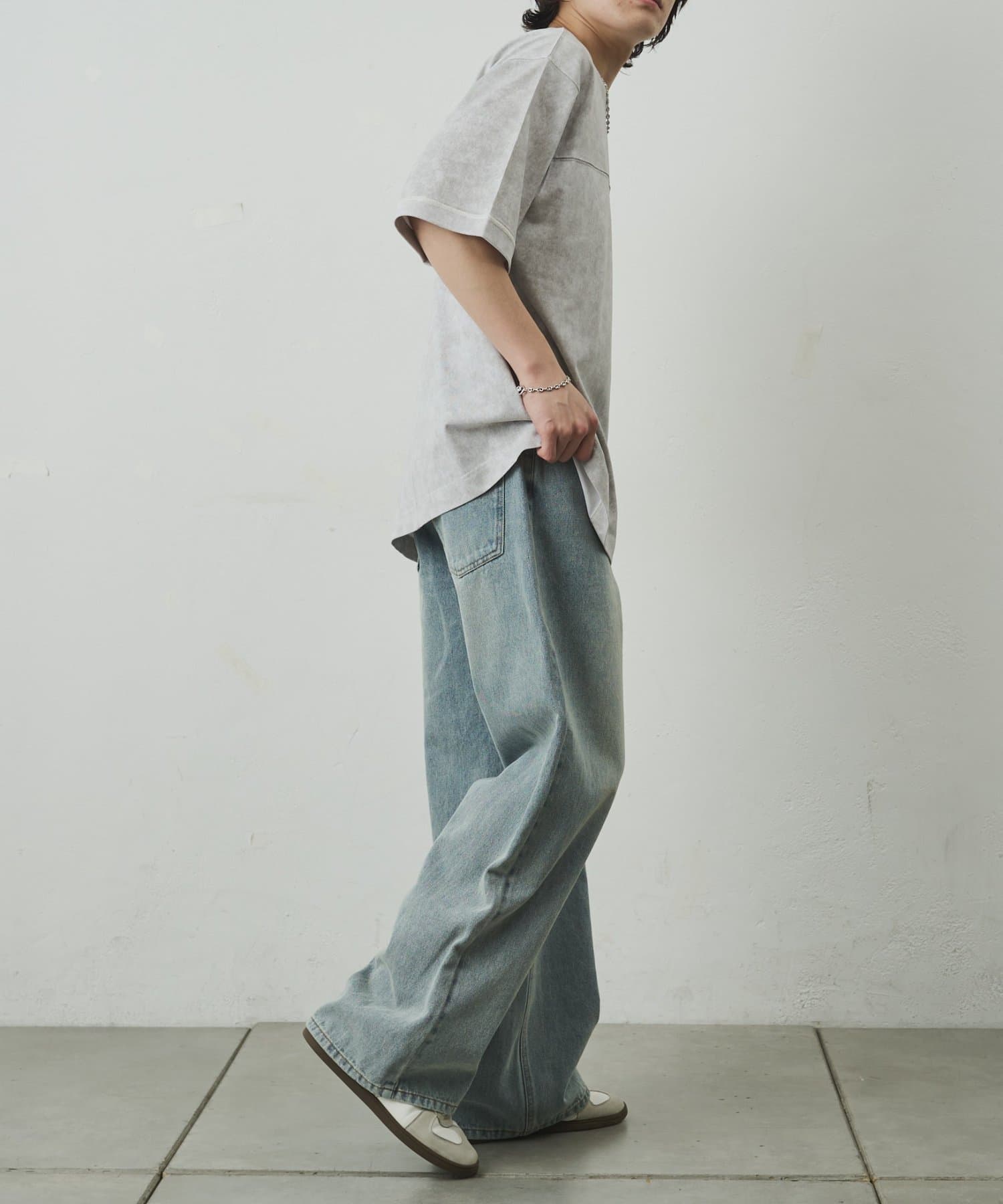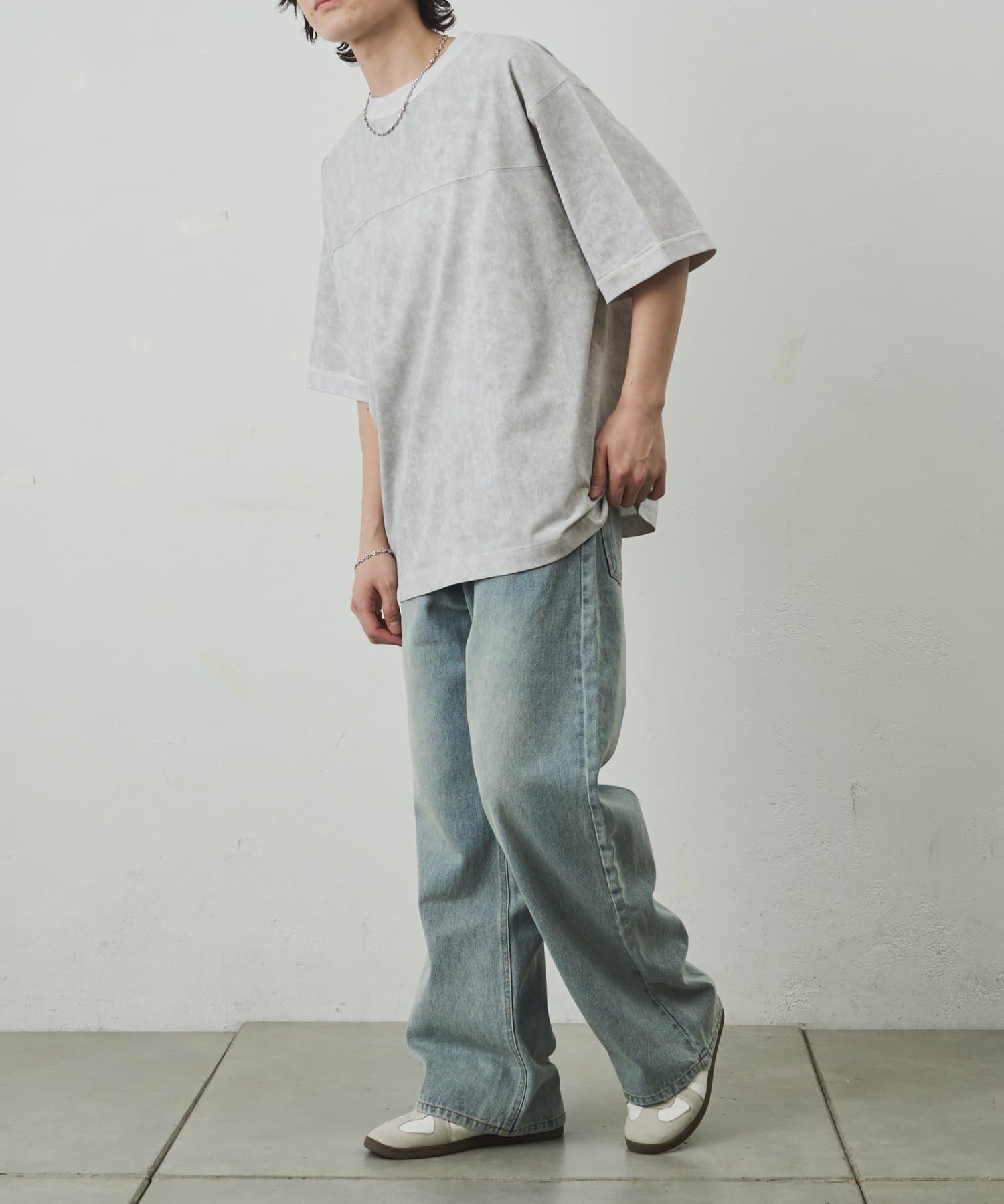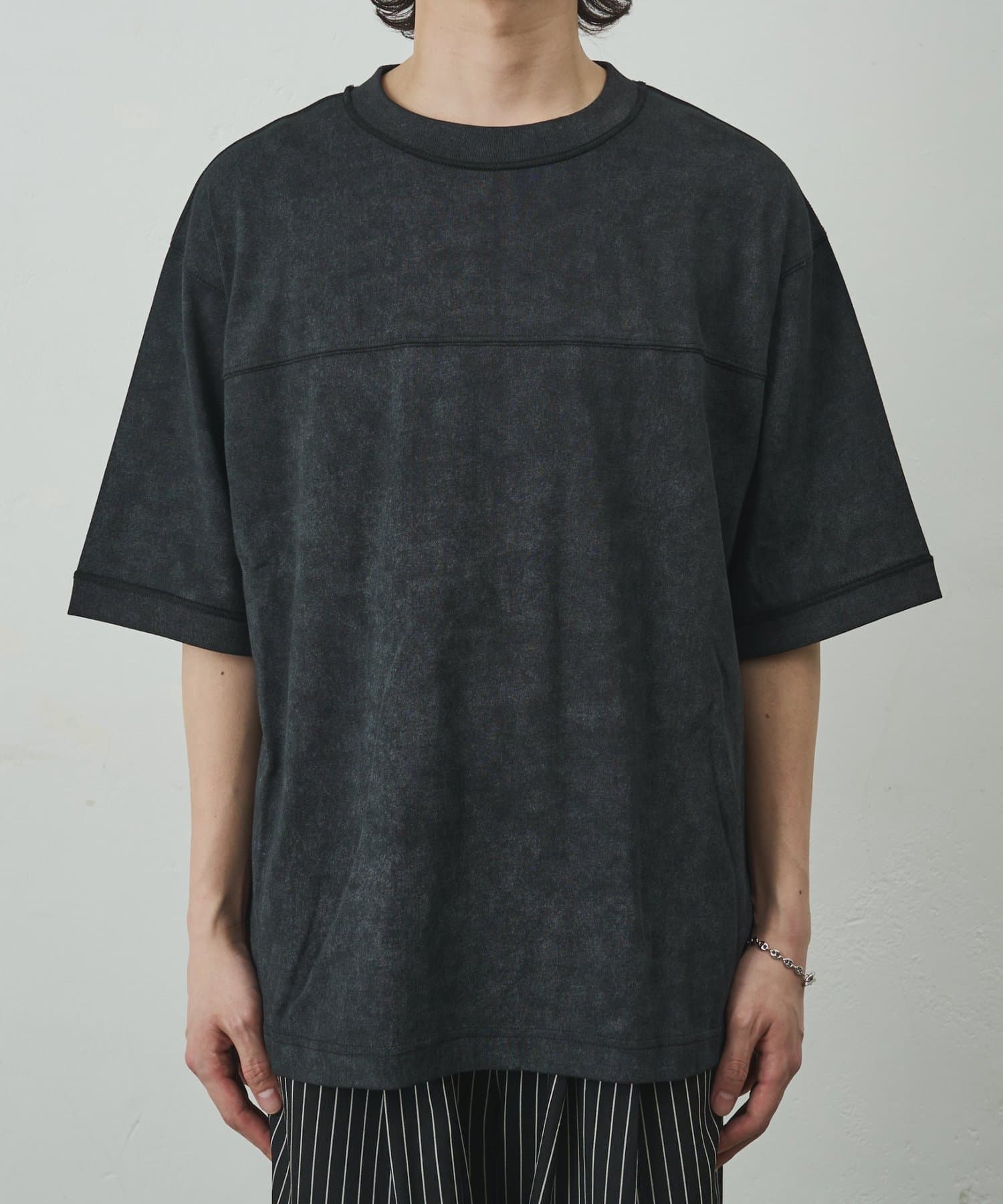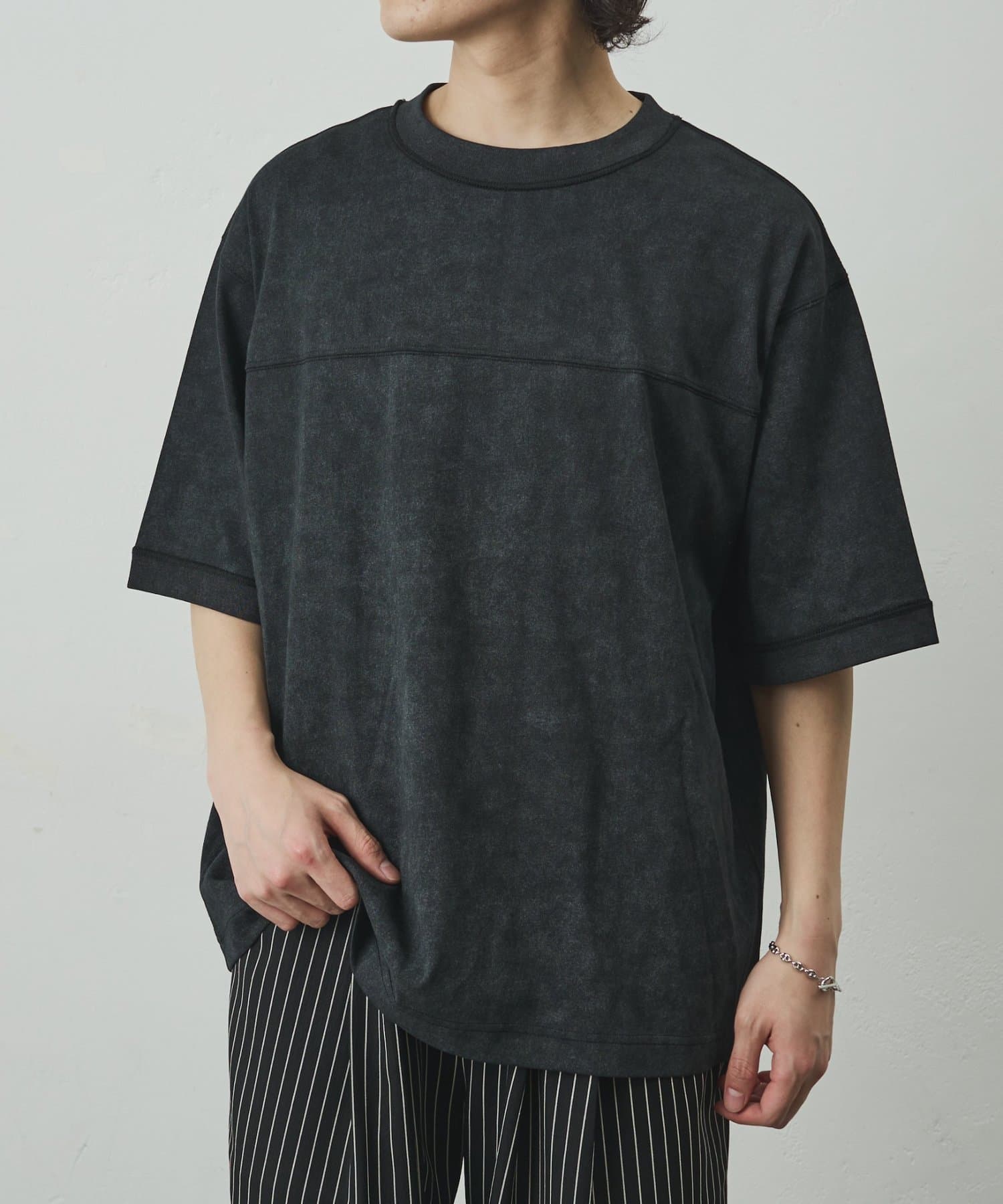ムラ染め加工ならではの奥行きのある色合いが特徴のTシャツ。