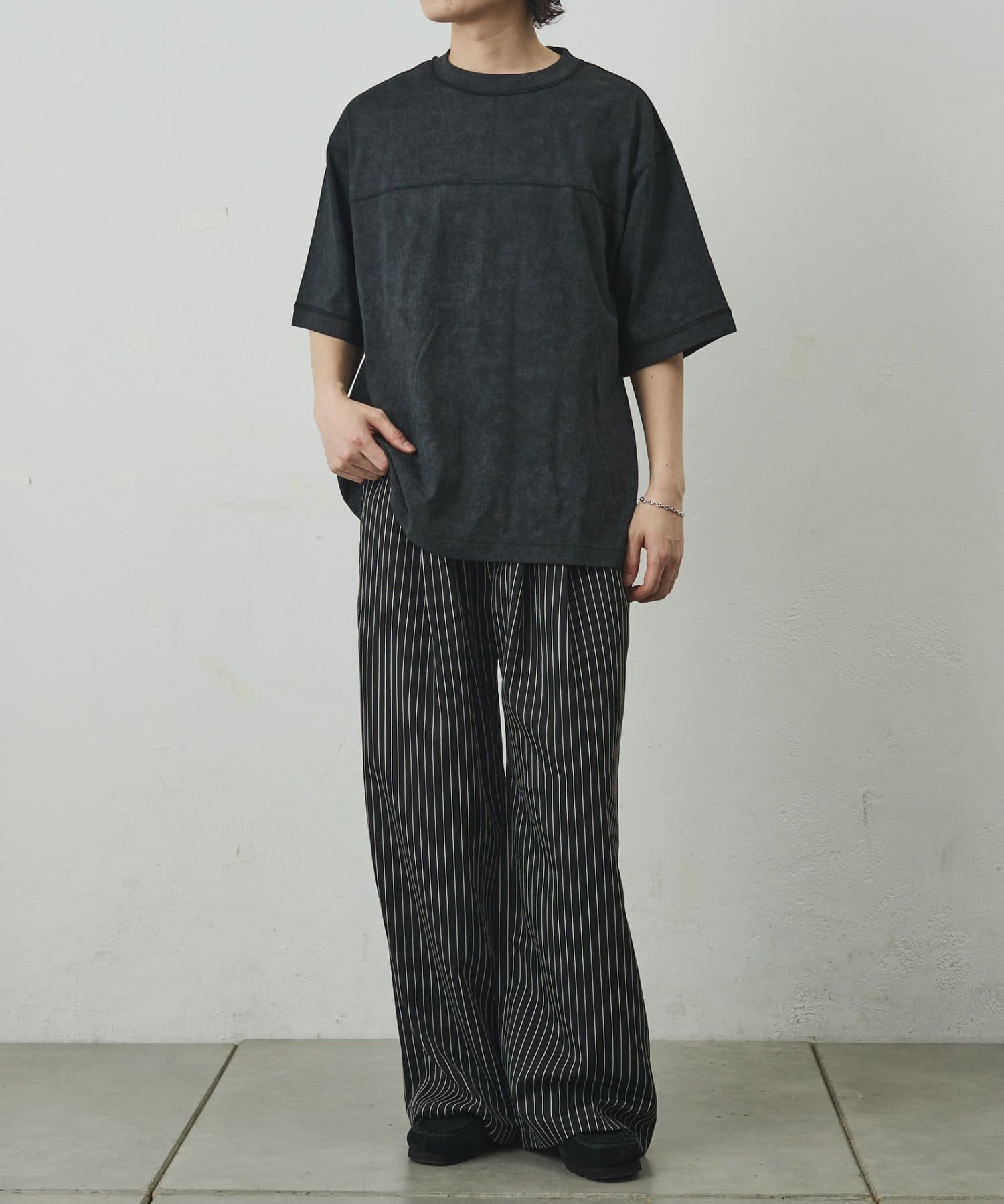 生地には肌触りの良い天竺素材を使用しているので、着心地も抜群。ややゆとりのあるシルエット。